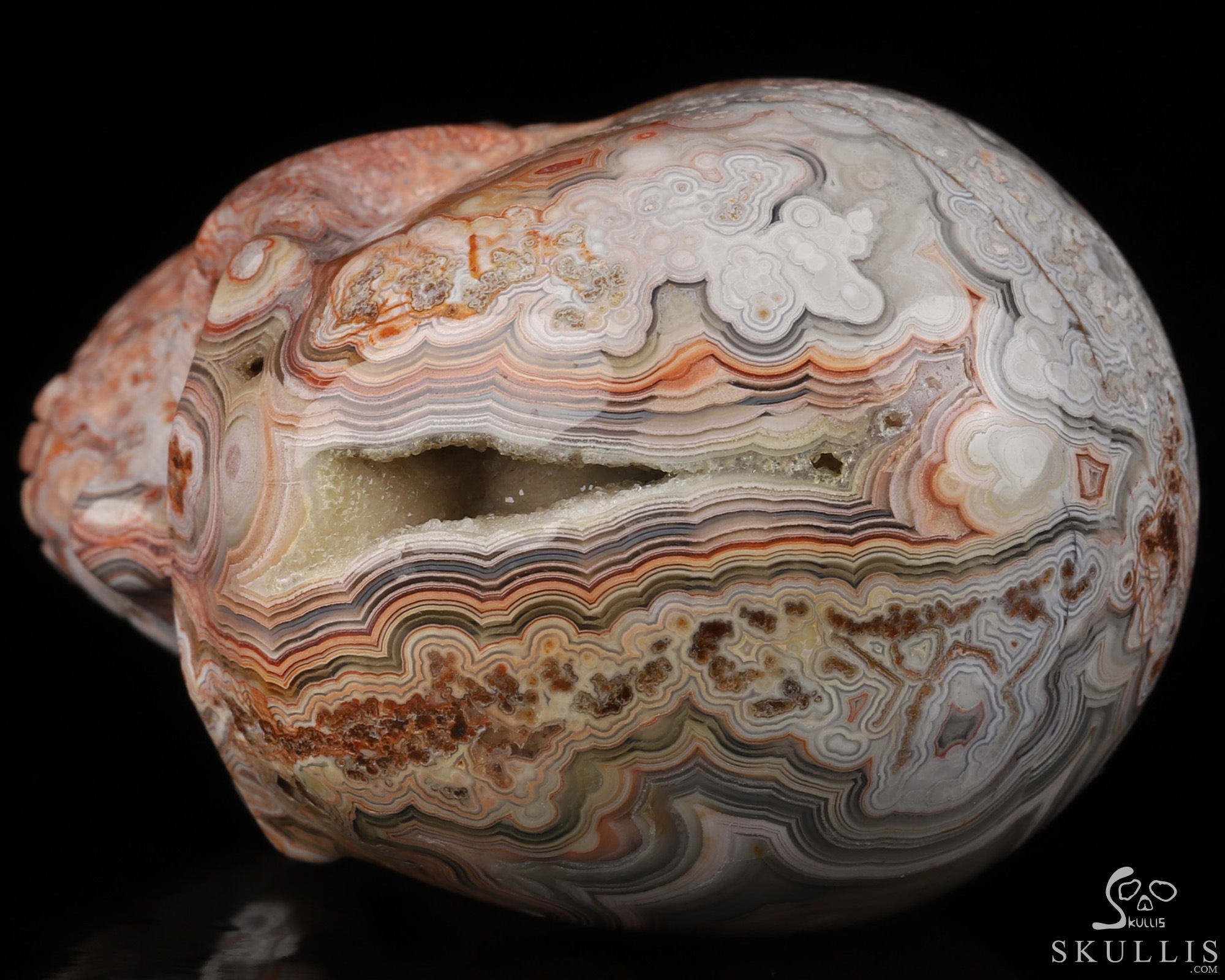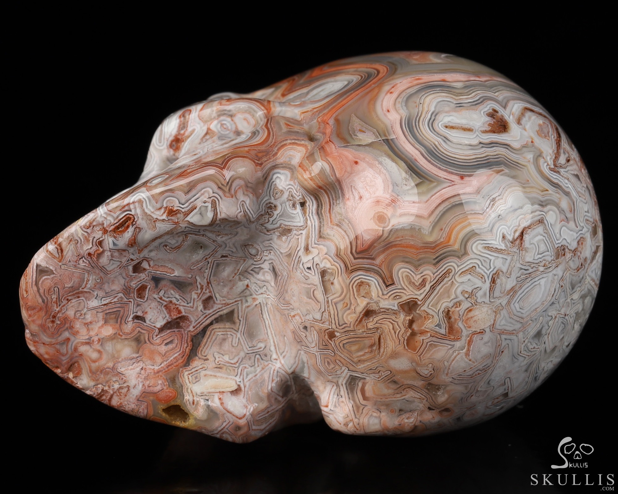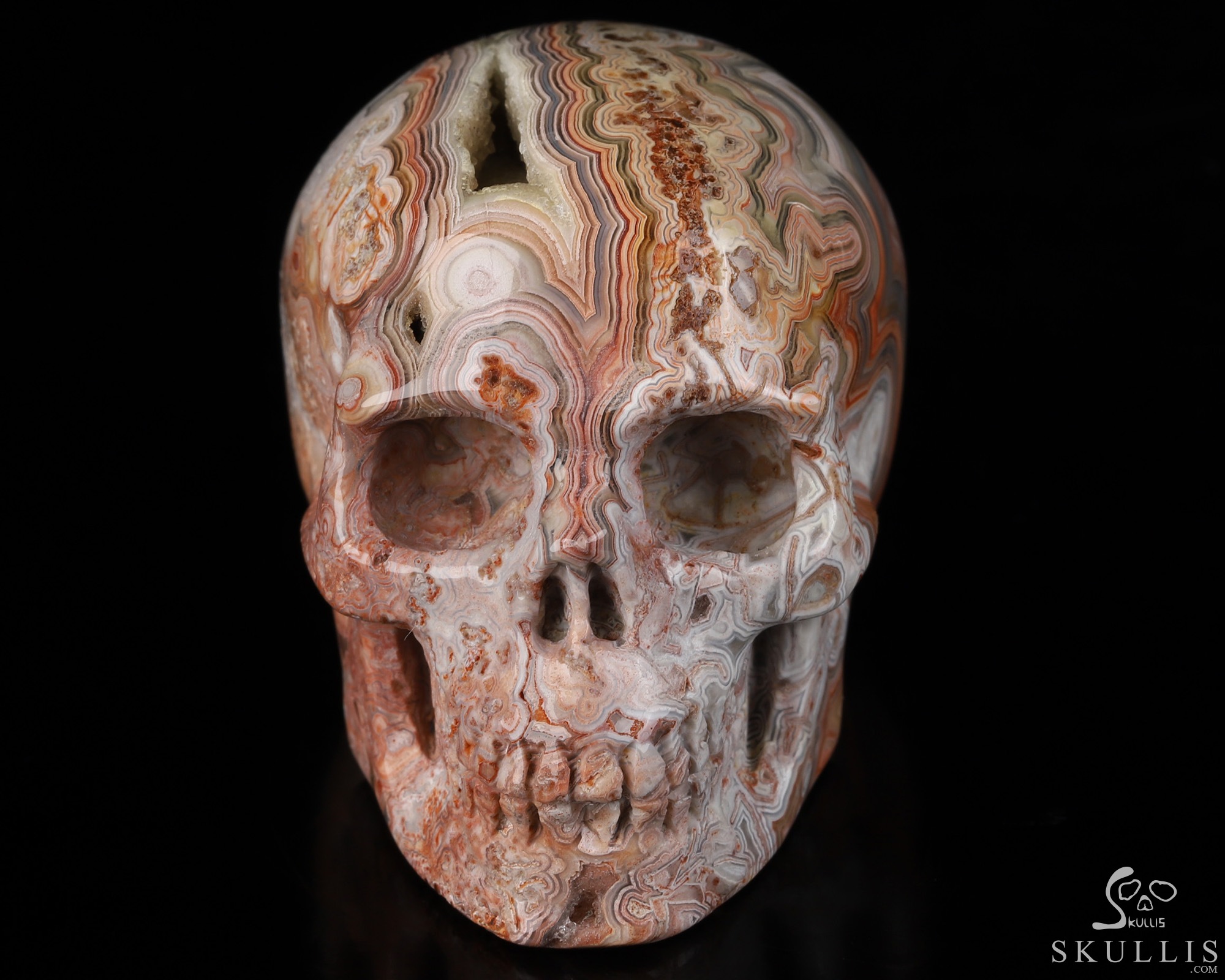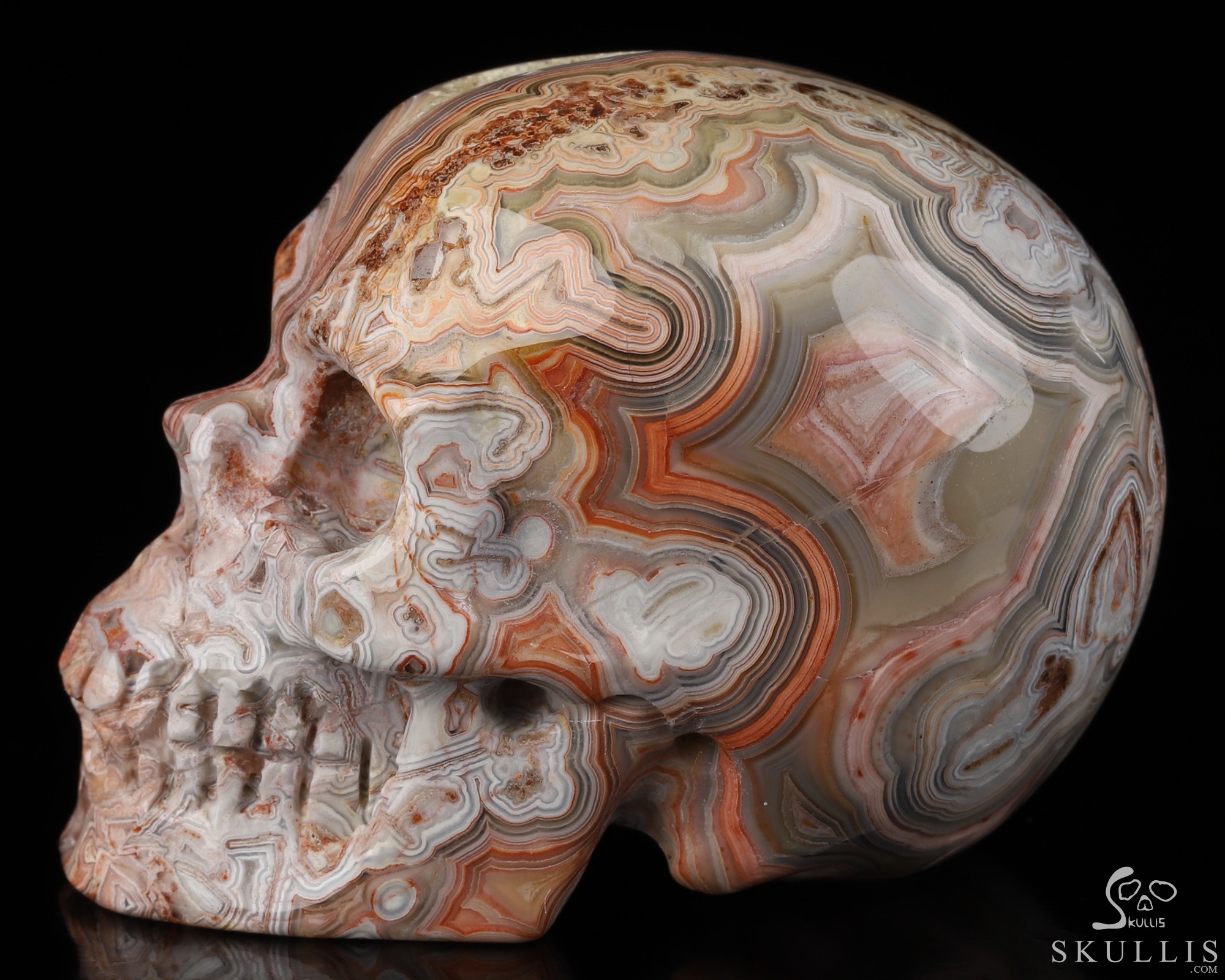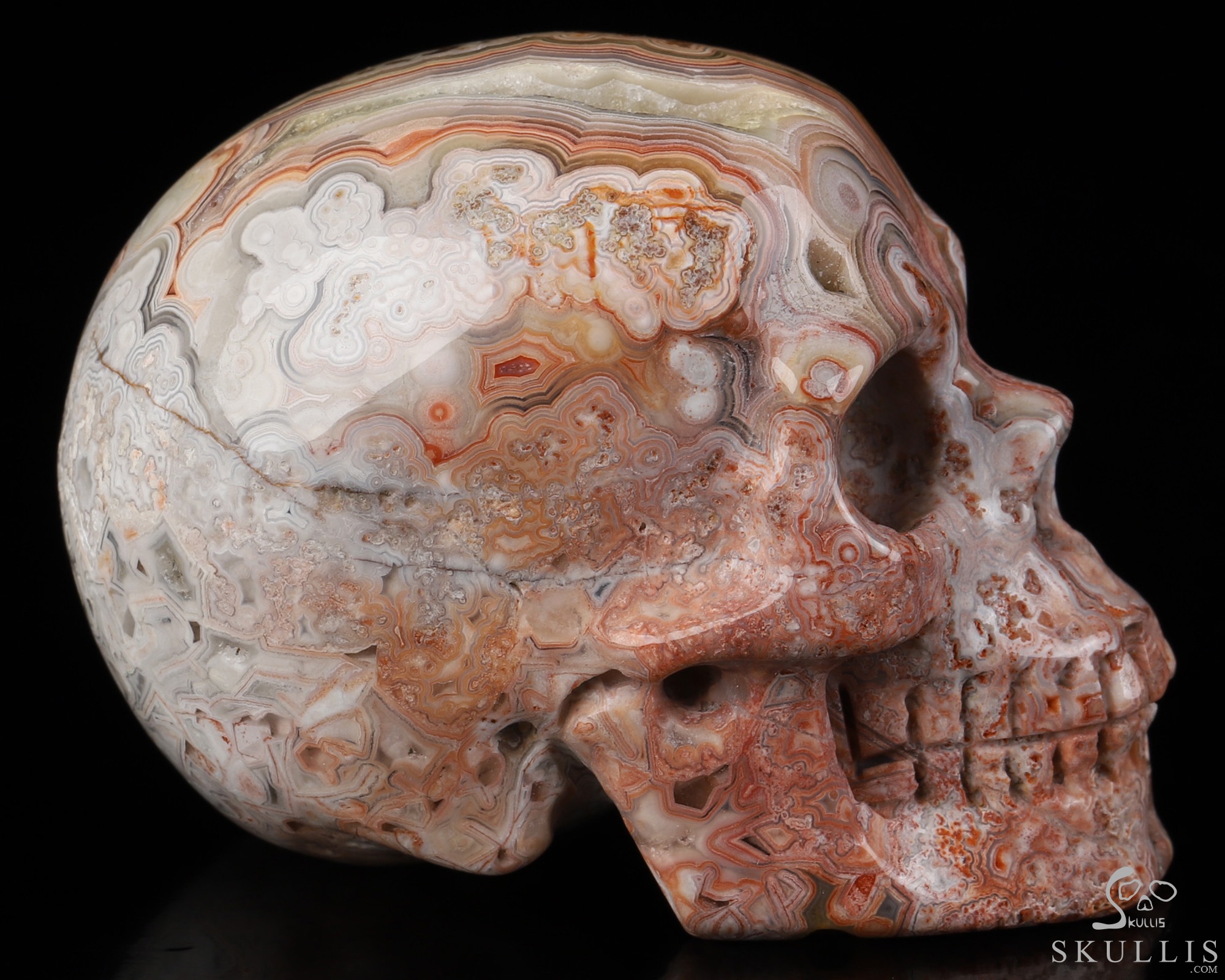 Huge 5.0" Red Crazy Lace Agate Carved Crystal Skull, Realistic