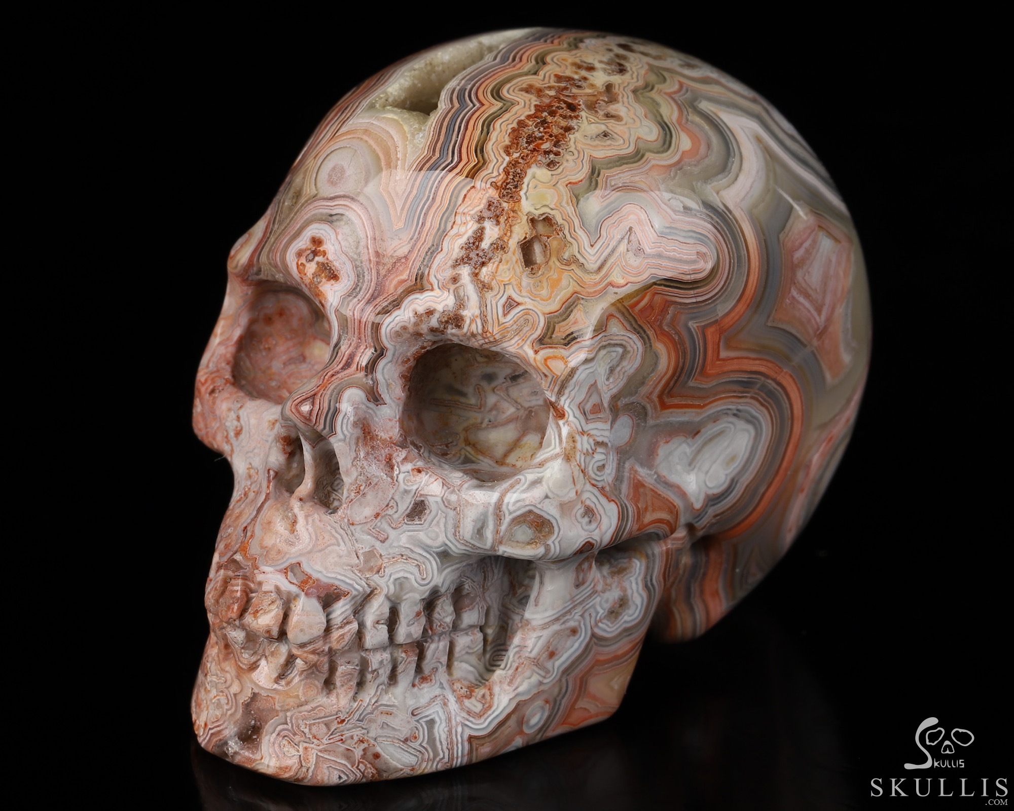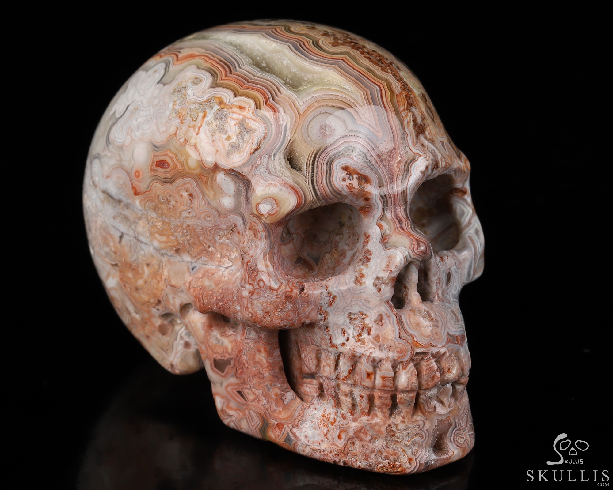 Gemstone 5.1" Red Crazy Lace Agate Hand Carved Crystal Skull, Super Realistic, Crystal Healing