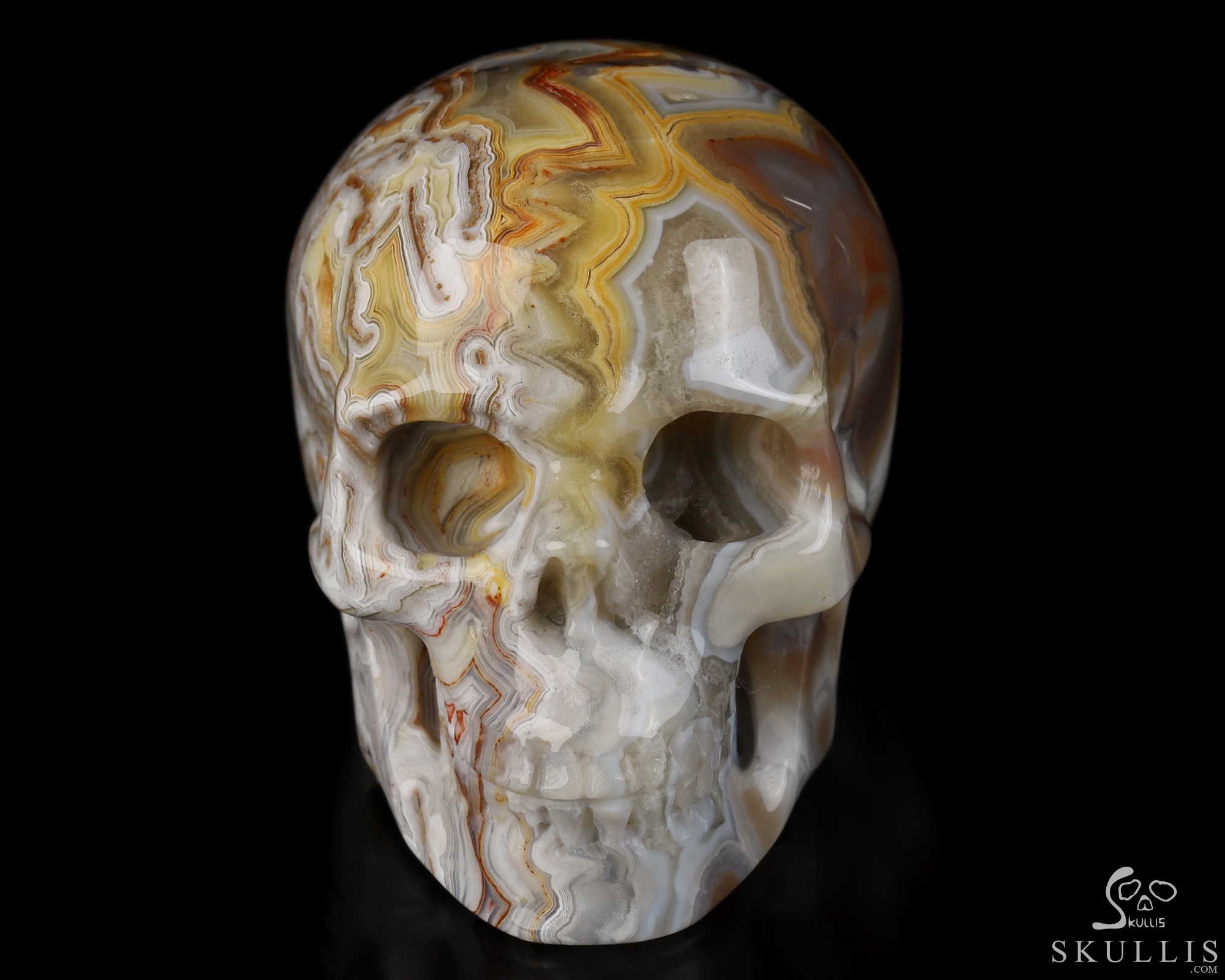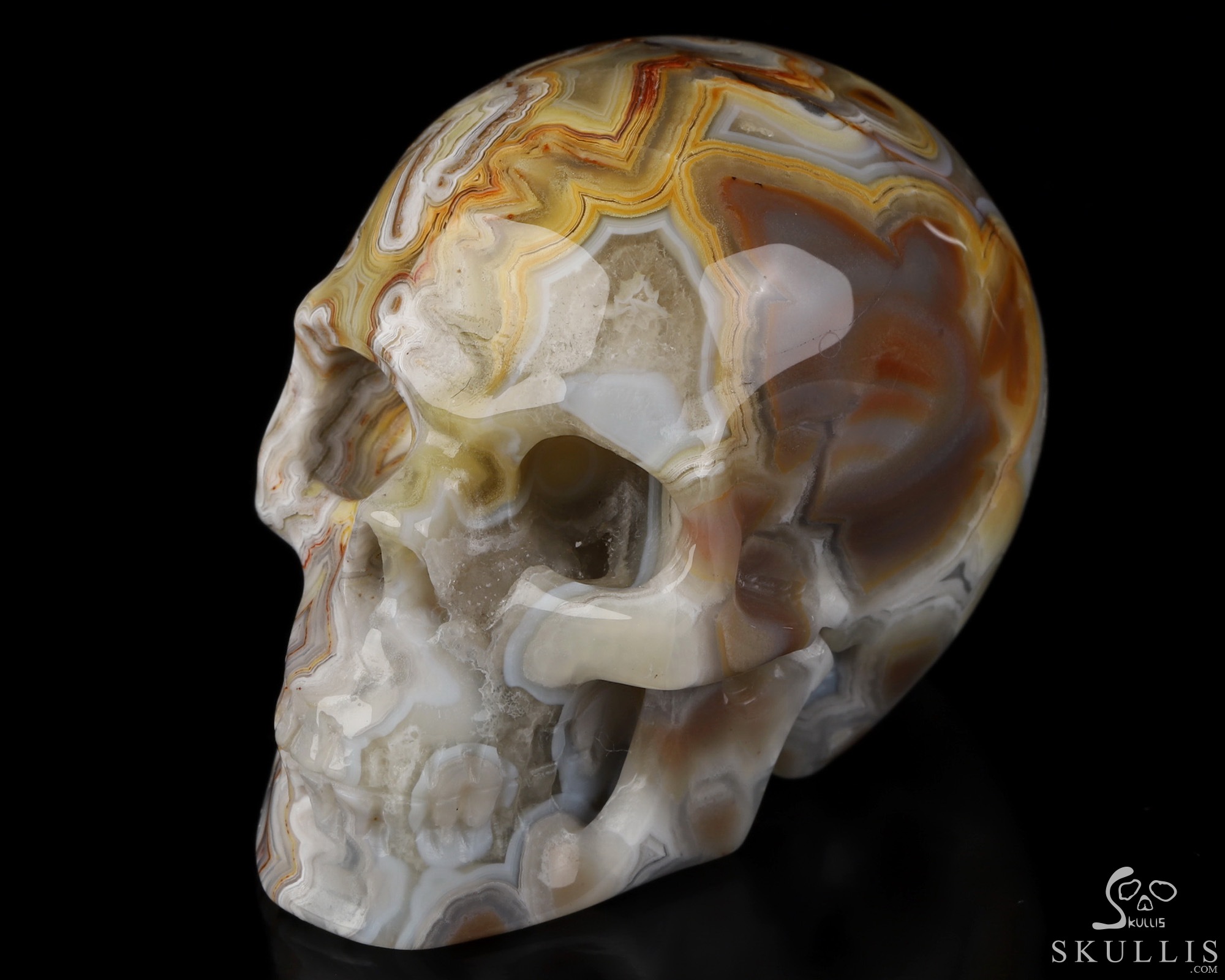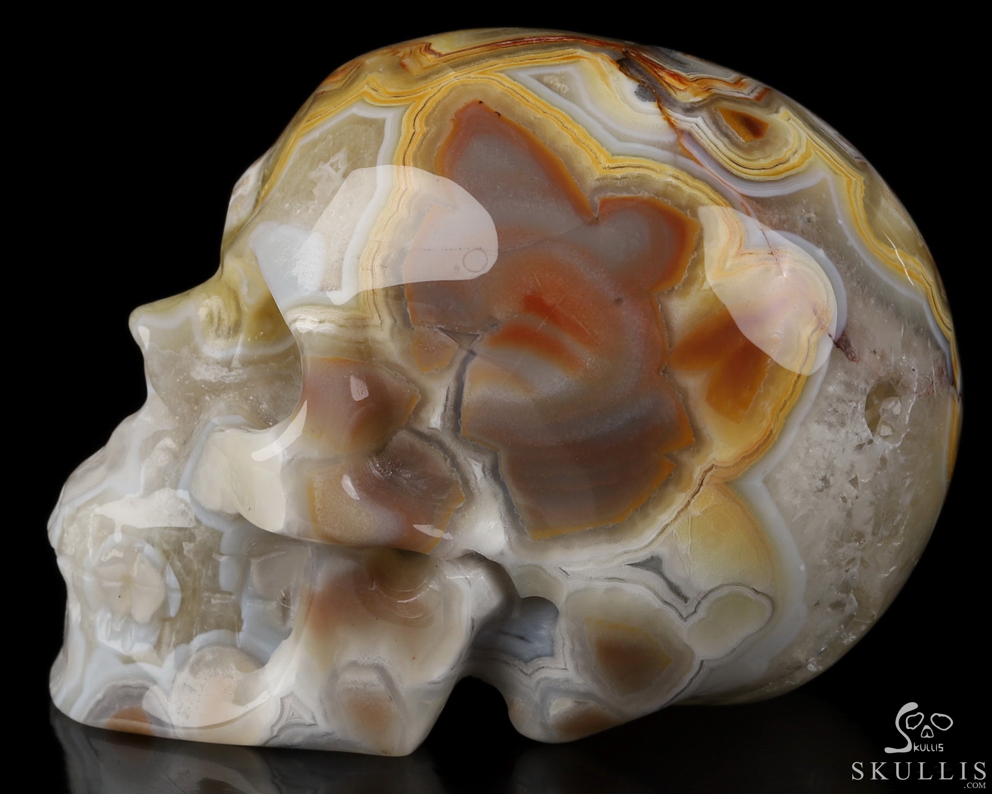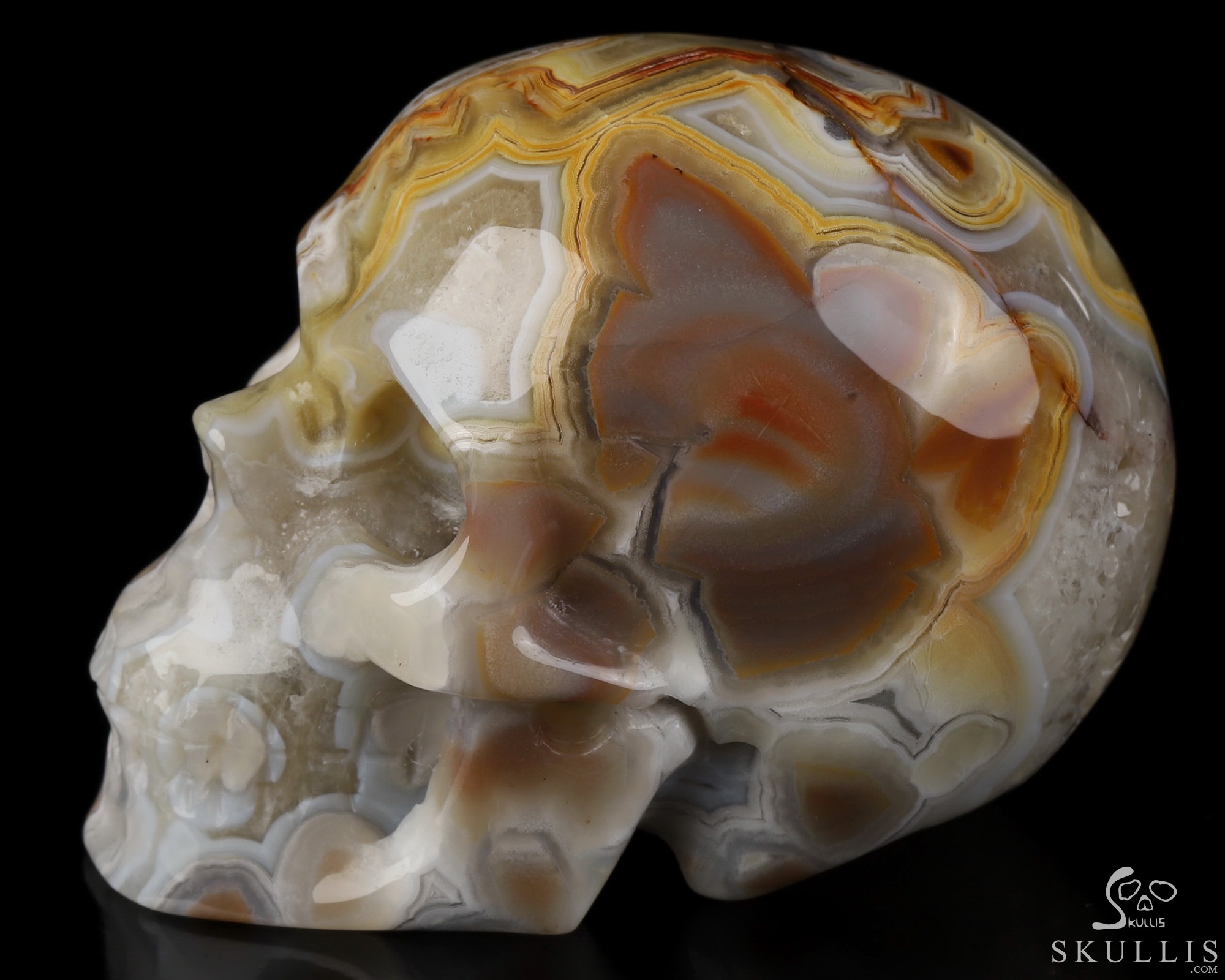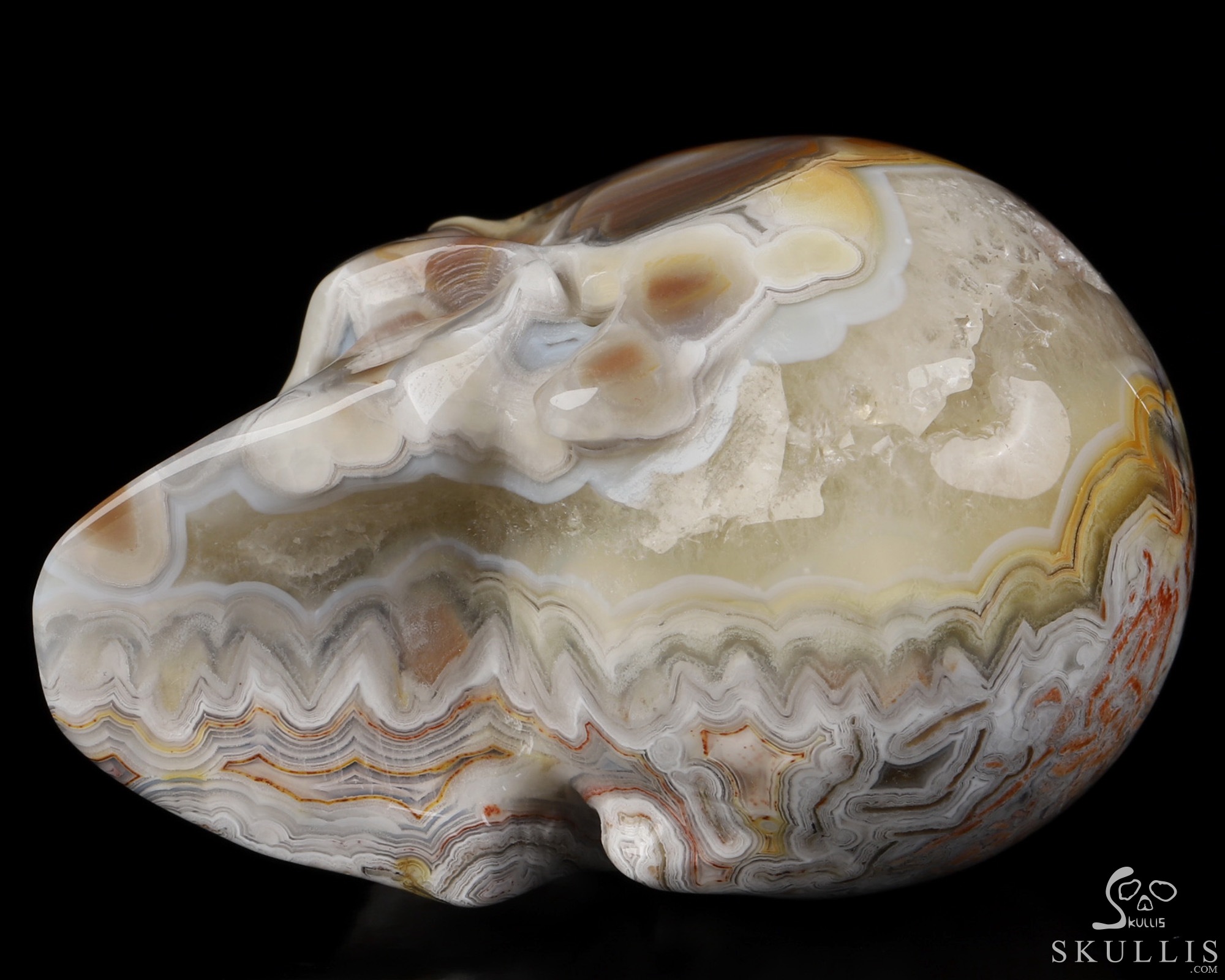 You are looking at a Red Crazy Lace Agate skull. The skull is 2 inches from front to back.