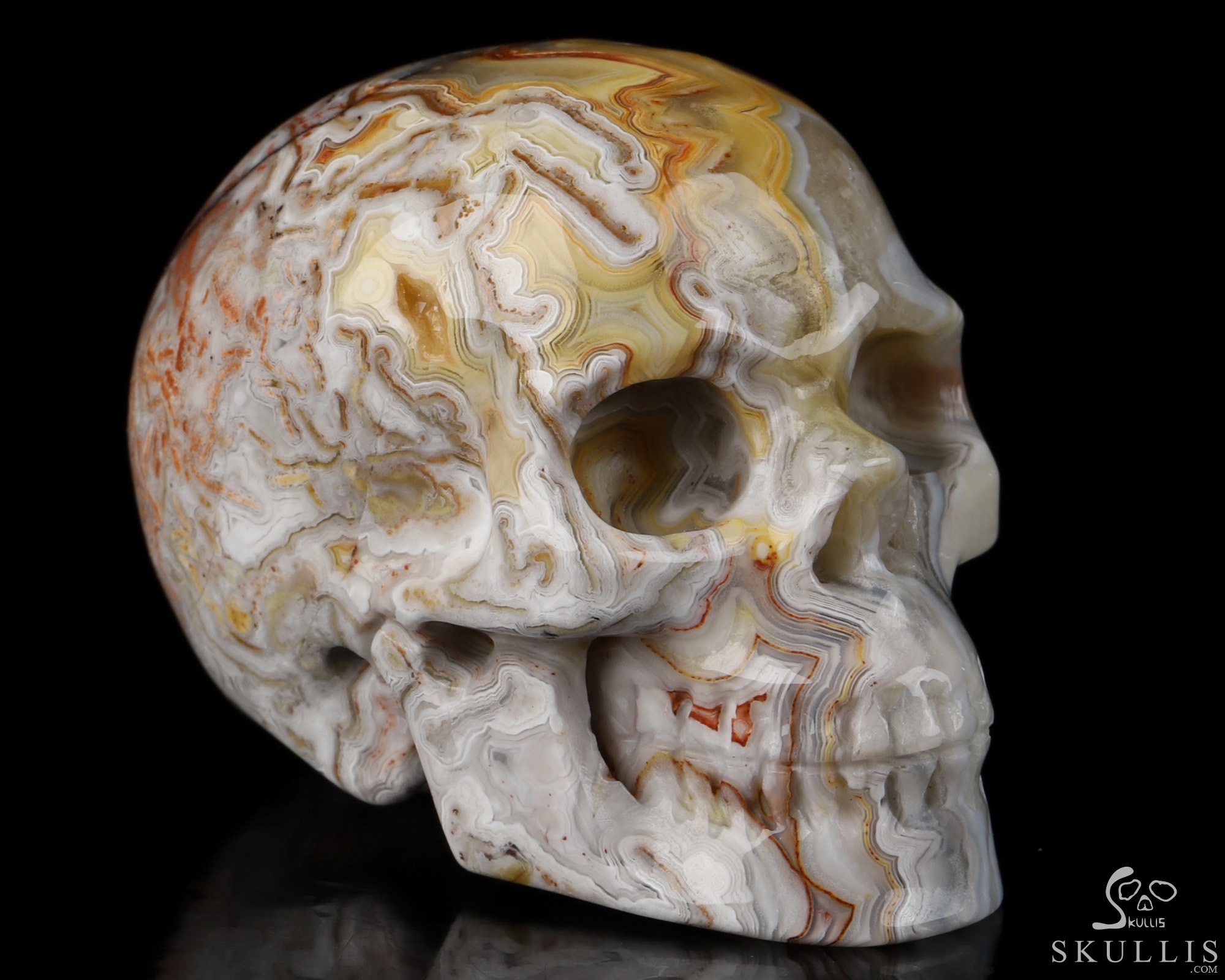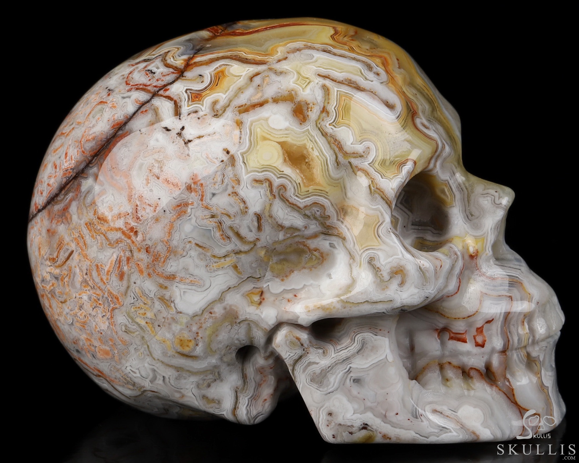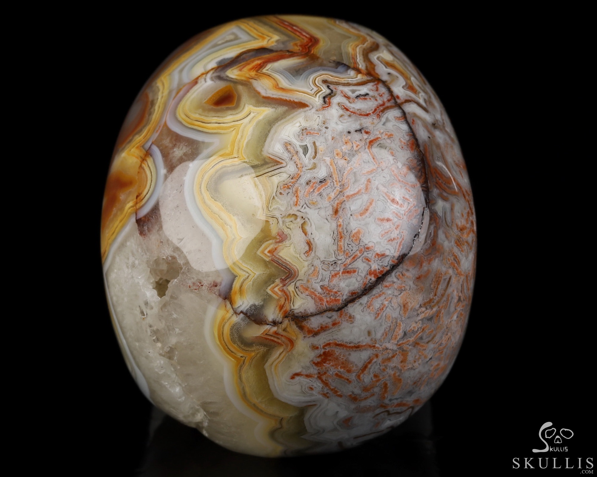 GEMSTONE Geode Huge 4.8 Red Crazy Lace Agate Carved Crystal Skull, Realistic, Crystal Healing