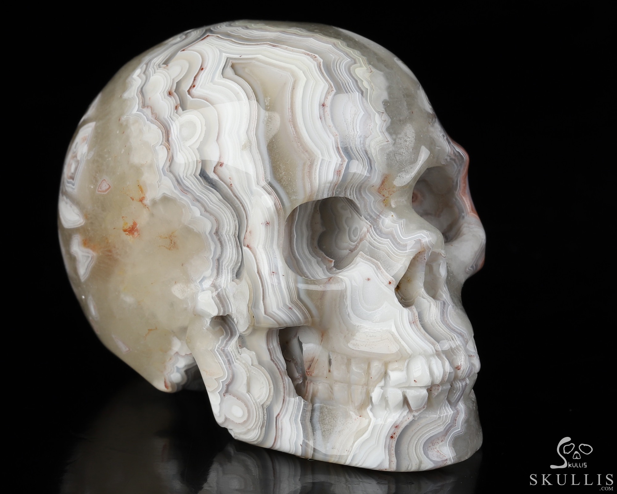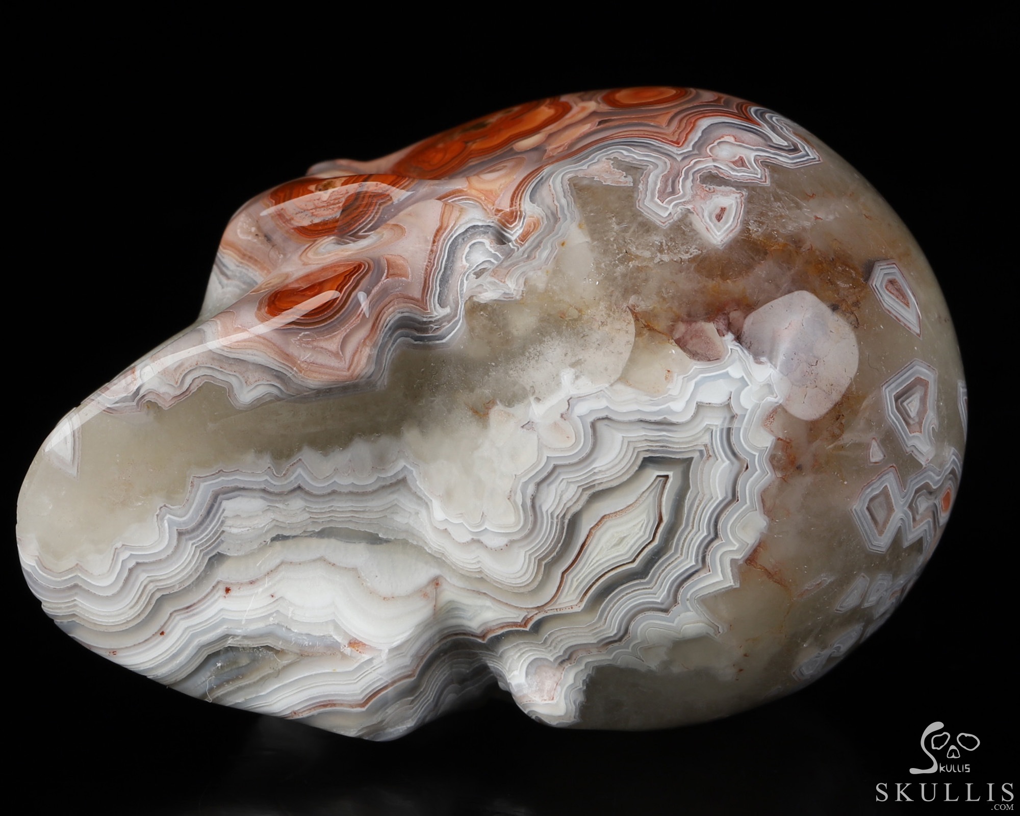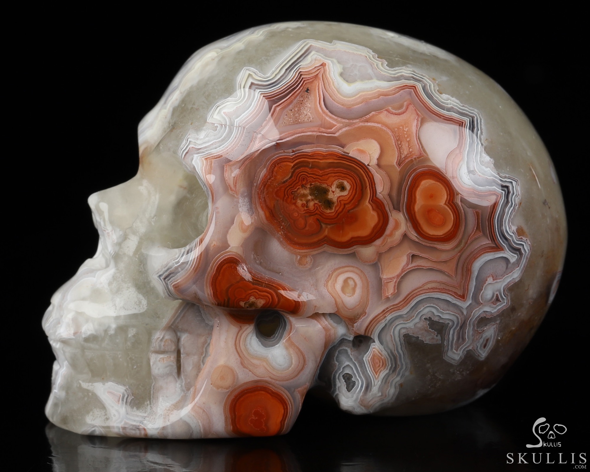 Gemstone 5.1" Red Crazy Lace Agate Hand Carved Crystal Skull, Super Realistic, Crystal Healing