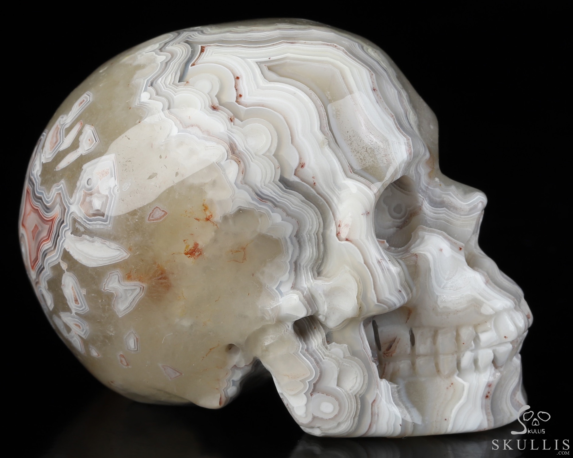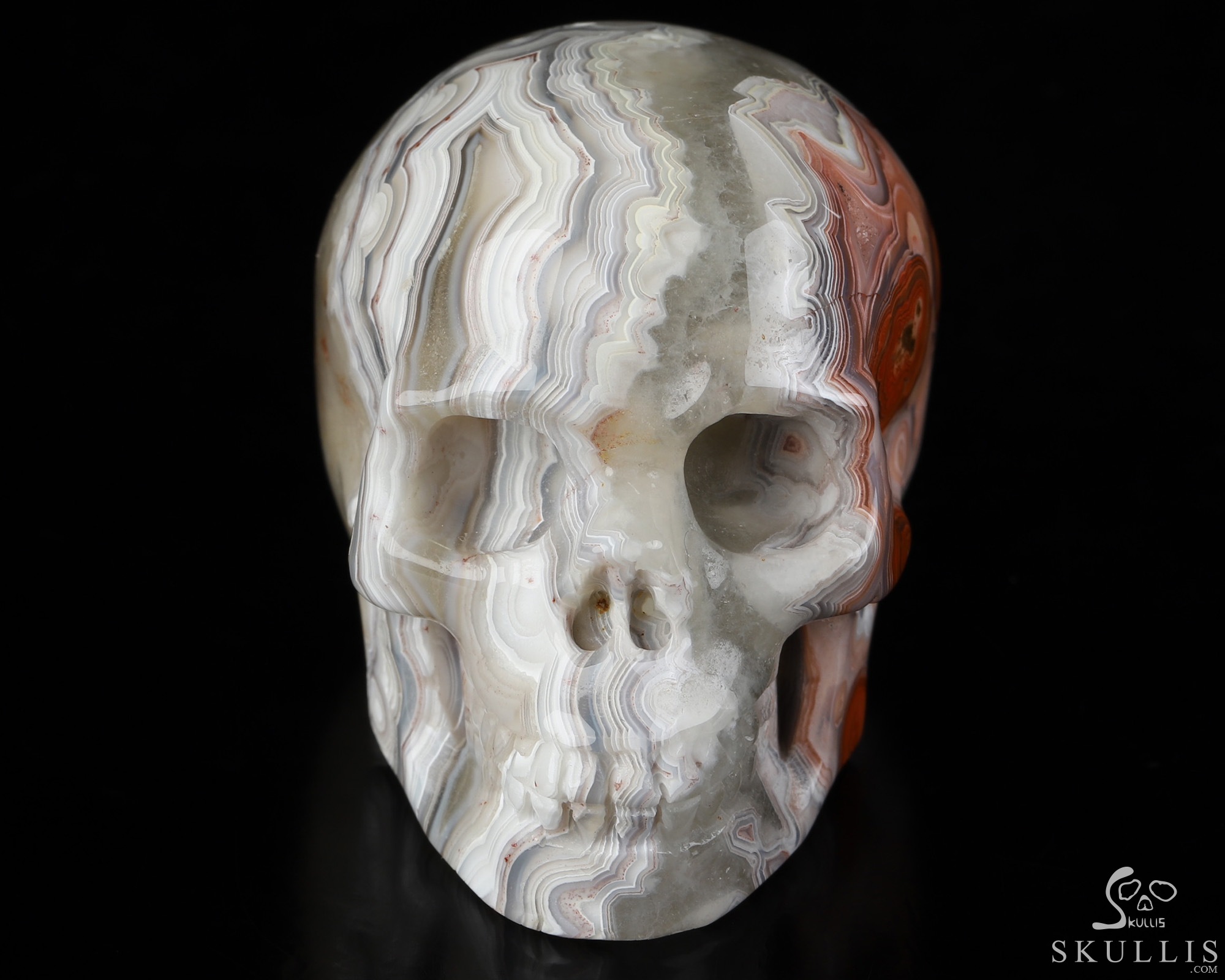 Gemstone Titan 9.4" Red Crazy Lace Agate Hand Carved Crystal Skull, Crystal Healing
