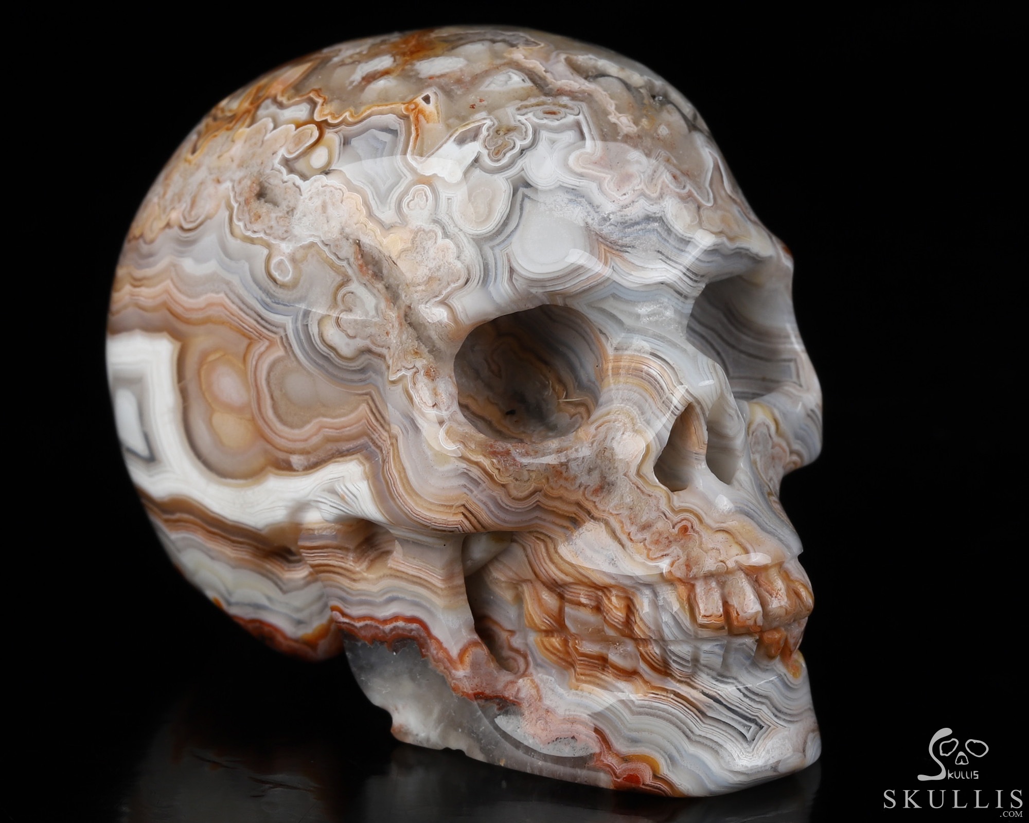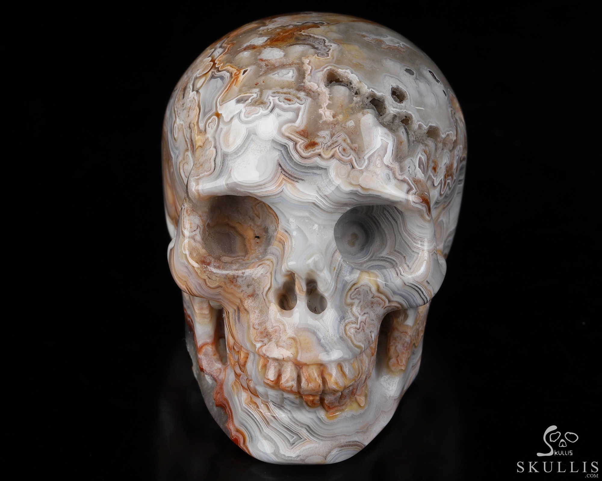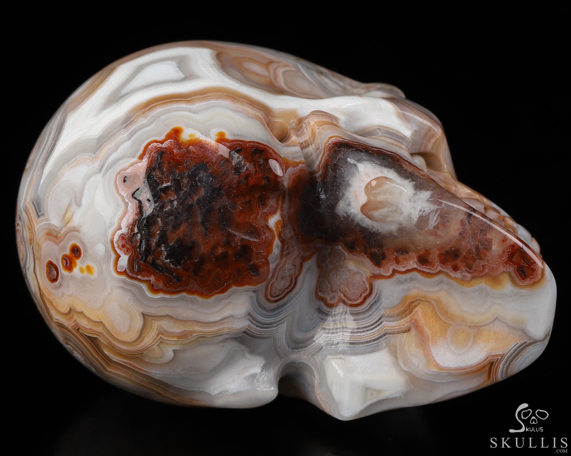 Huge 5.0" Red Crazy Lace Agate Carved Crystal Skull & Spine,Realistic, Crystal Healing