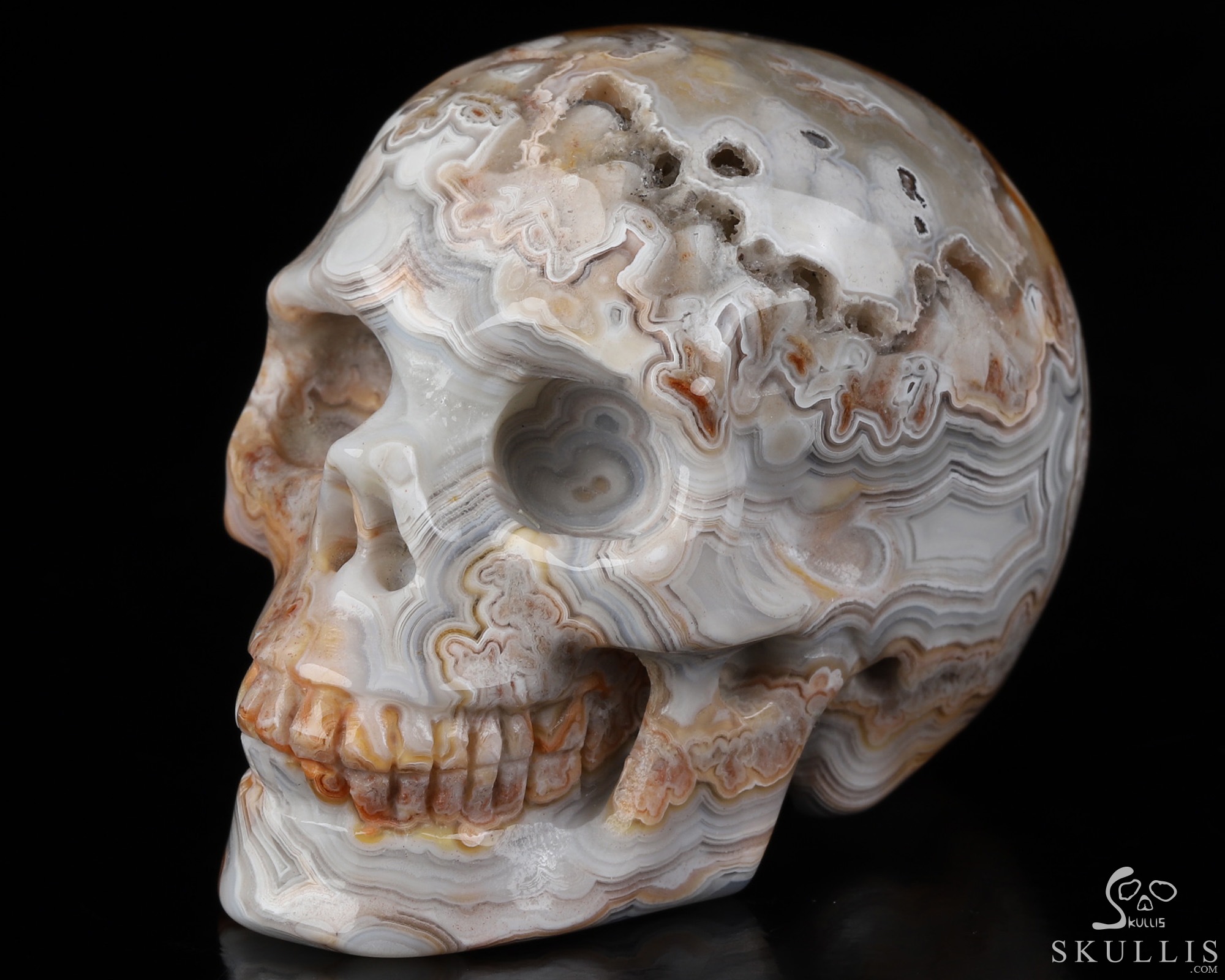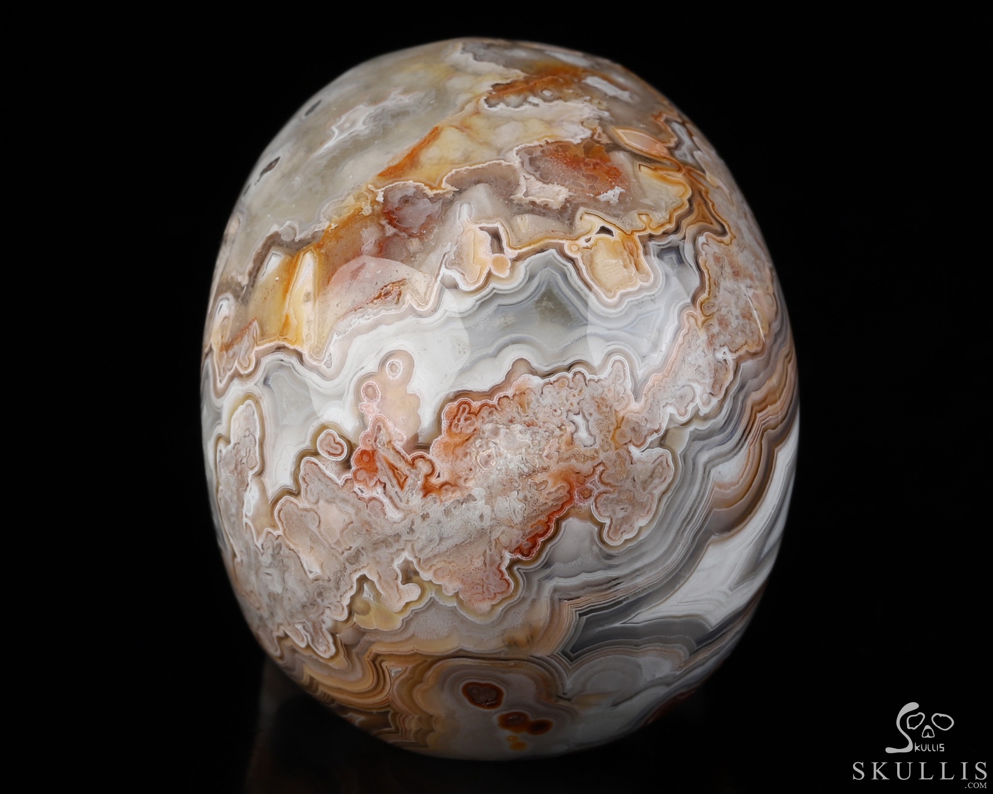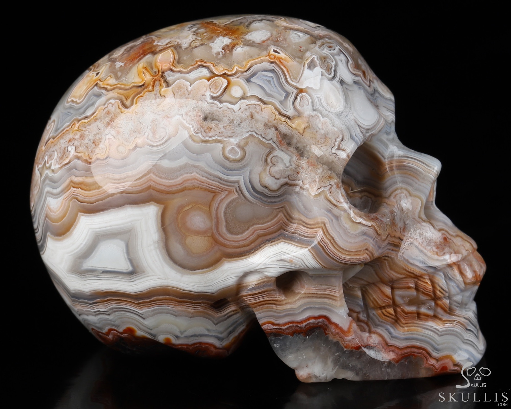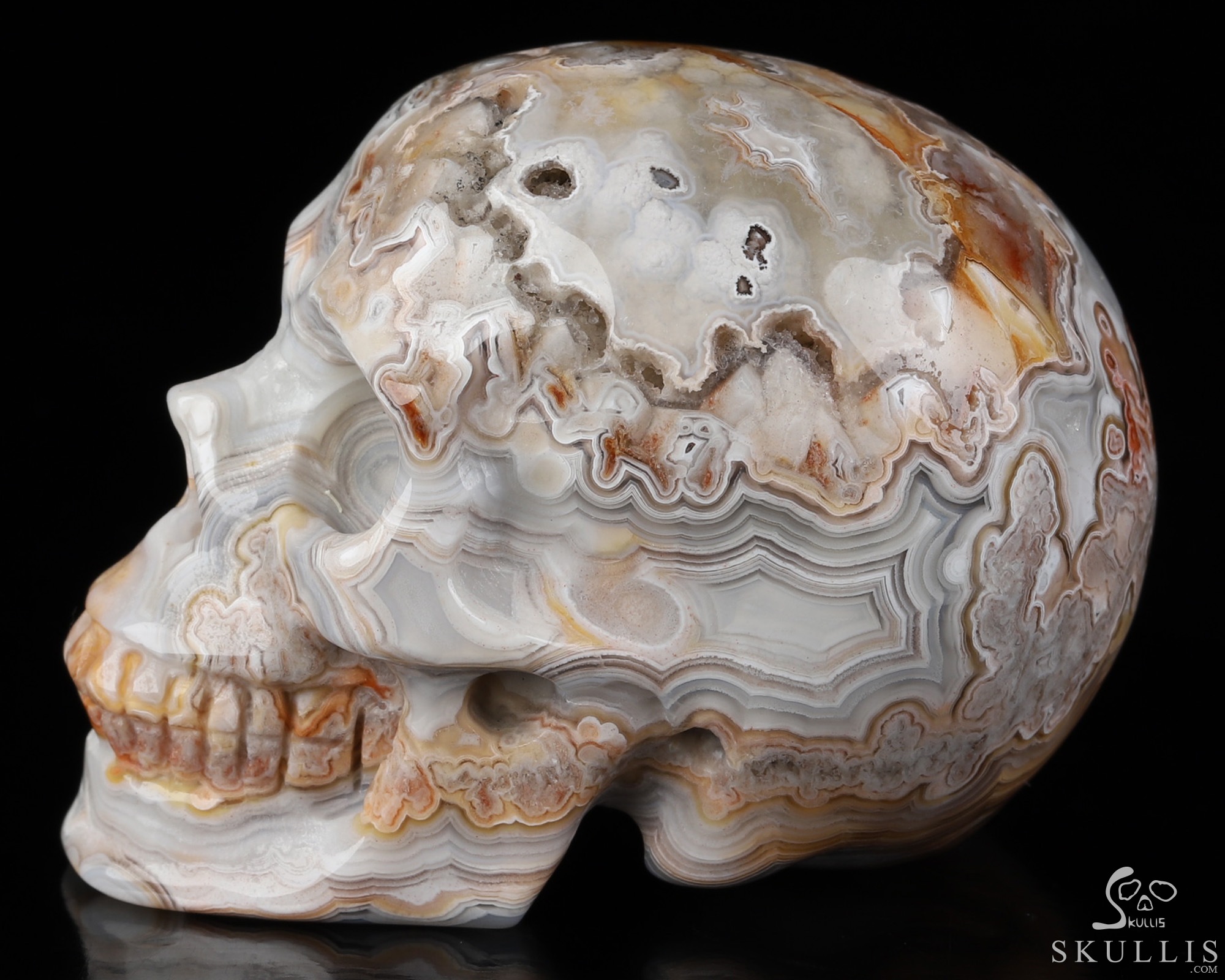 Huge 5.0" Red Crazy Lace Agate Carved Crystal Skull & Spine,Realistic, Crystal Healing