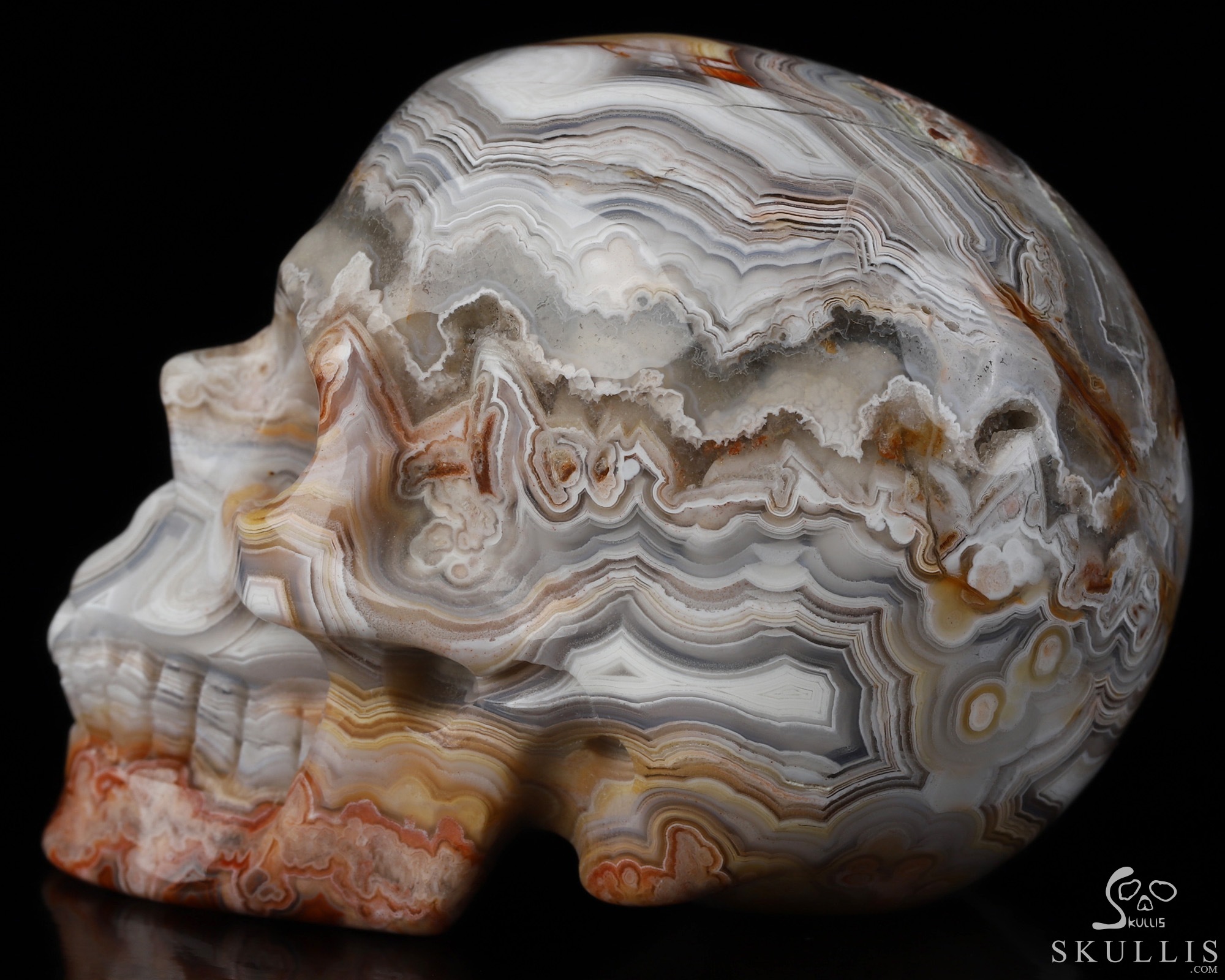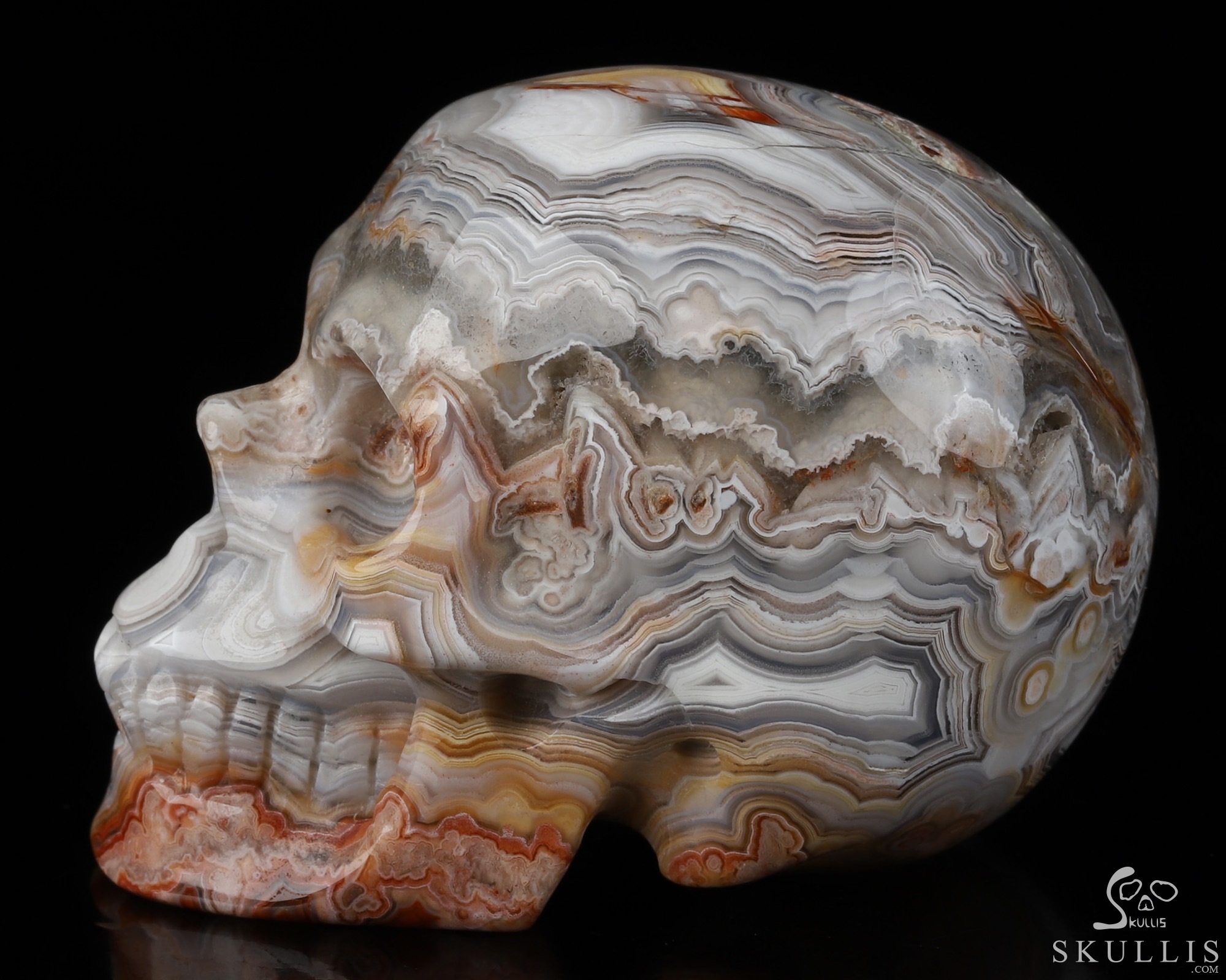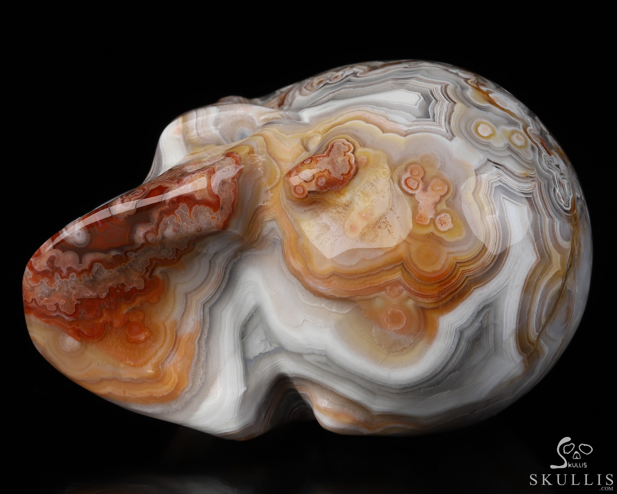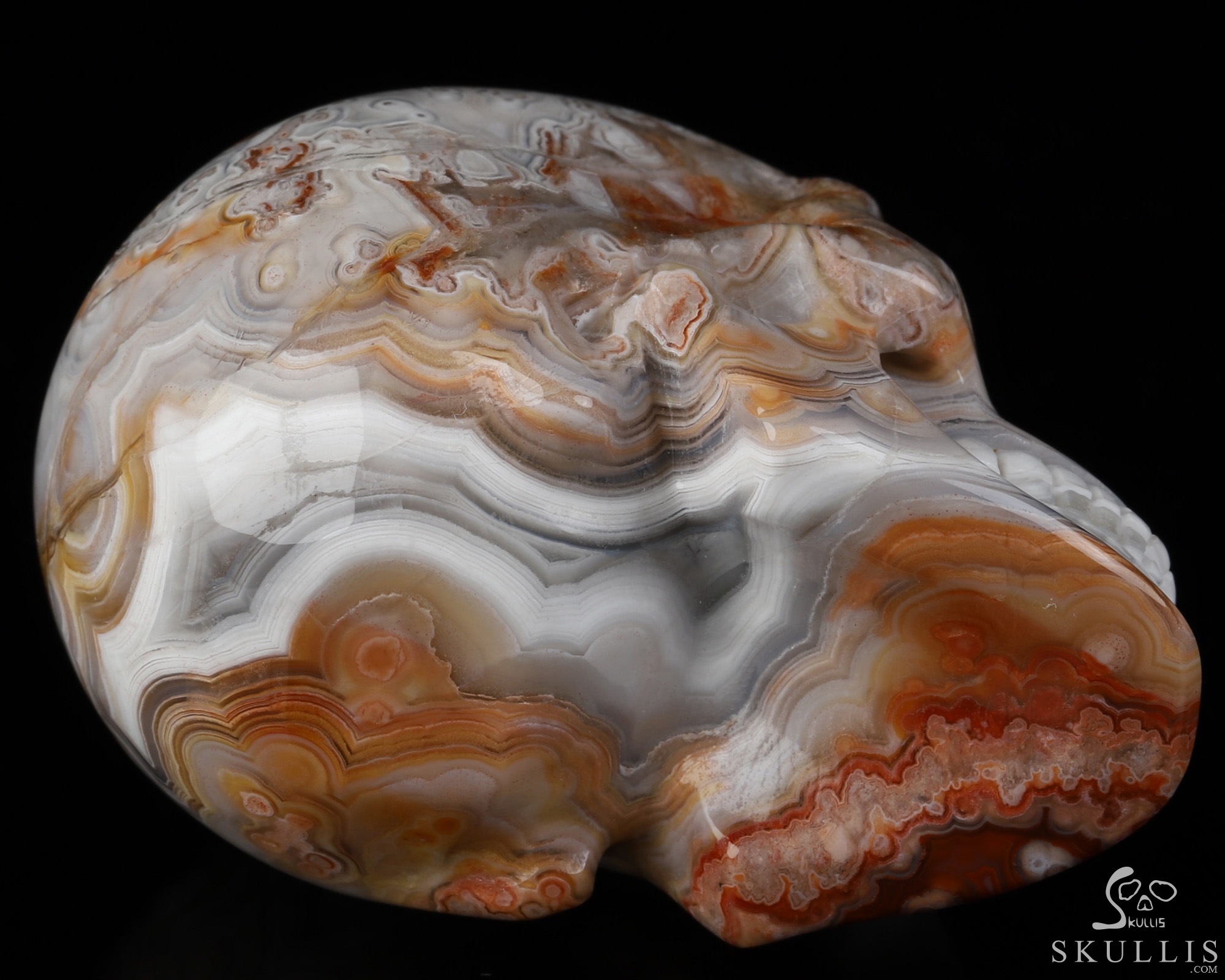 RARE QUALITY Huge 5.1" Red Crazy Lace Agate Carved Crystal Skull, Super Realistic