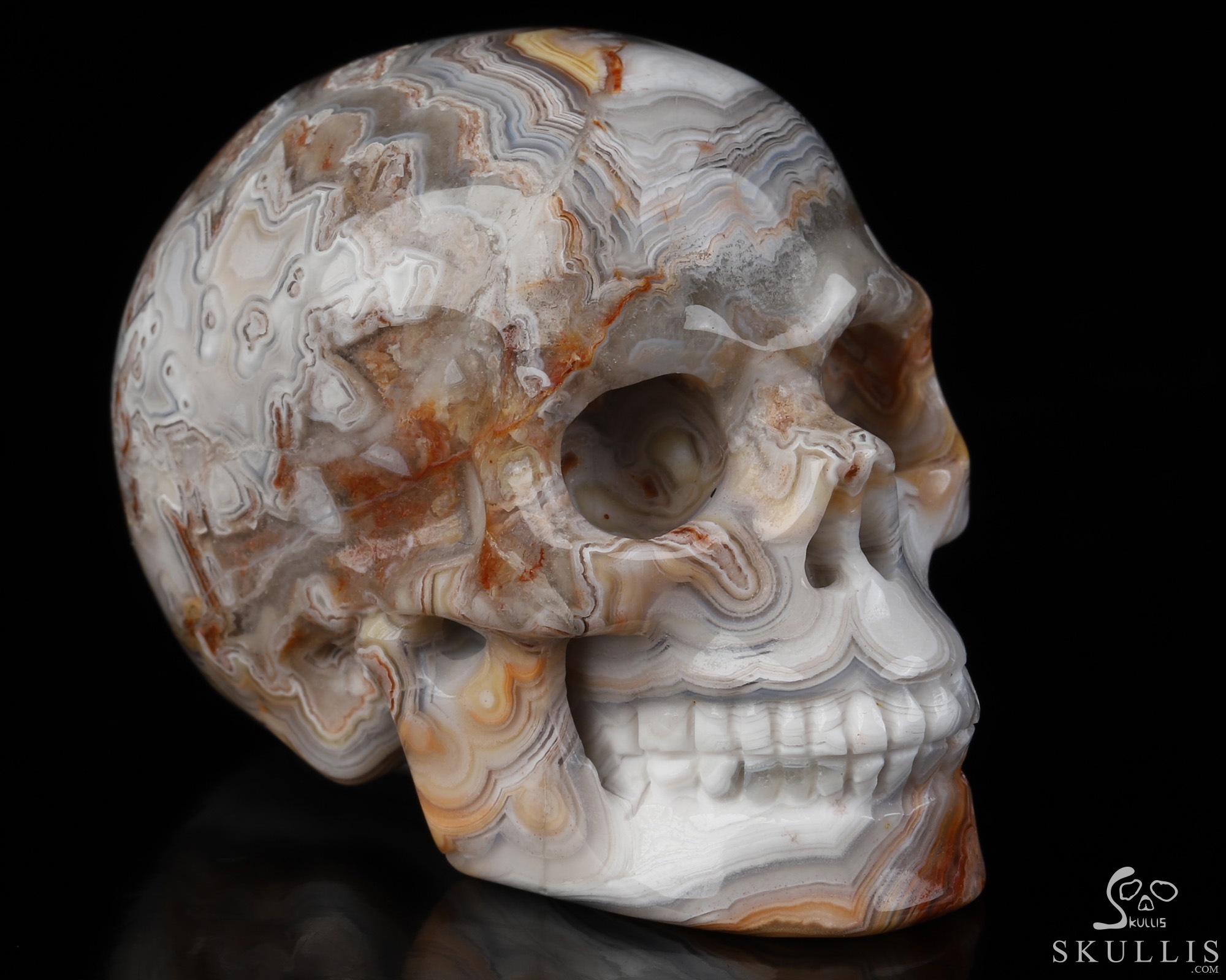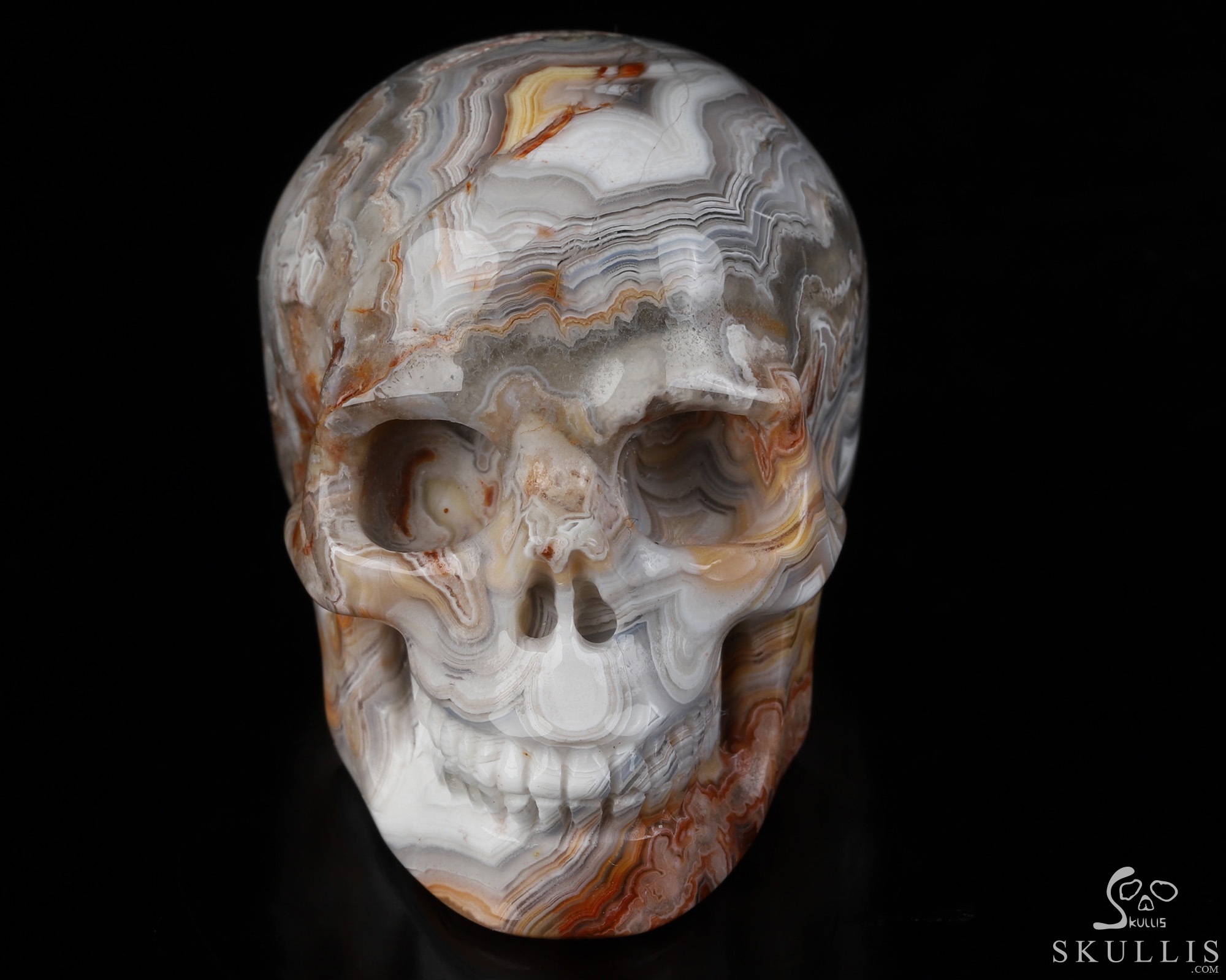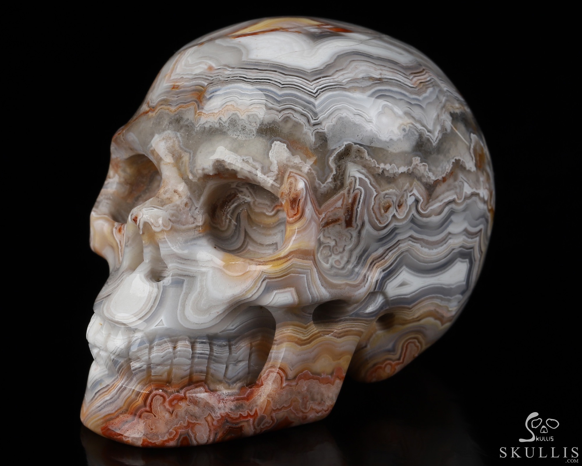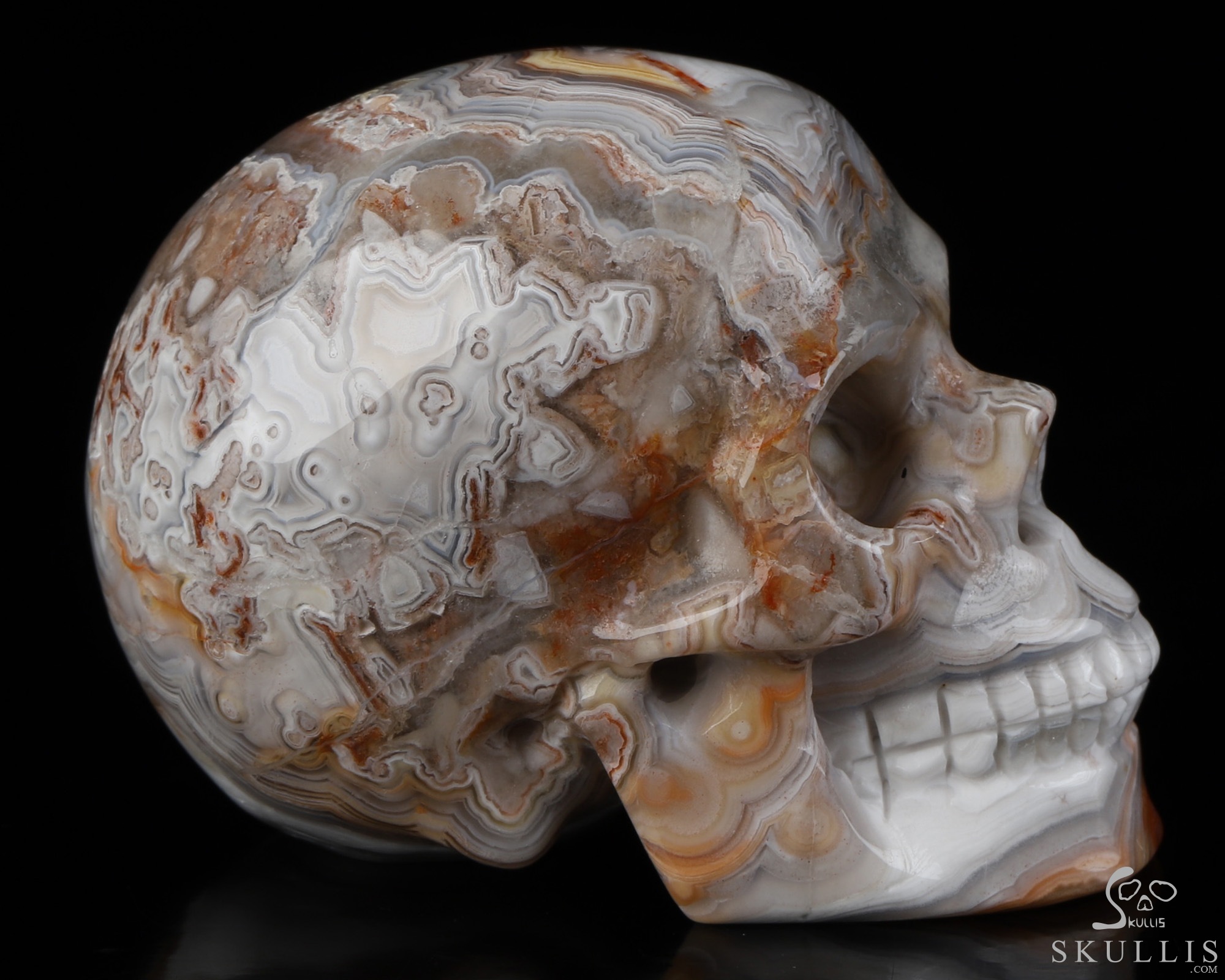 RARE QUALITY Huge 5.1" Red Crazy Lace Agate Carved Crystal Skull, Super Realistic
