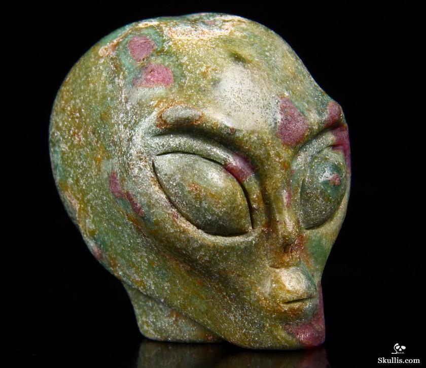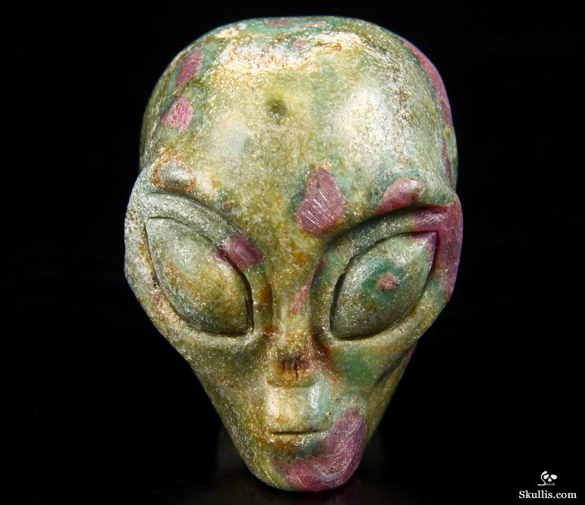 Gemstone 2.0" Ruby Fuchsite Carved Crystal Star Being, Female Alien Skull