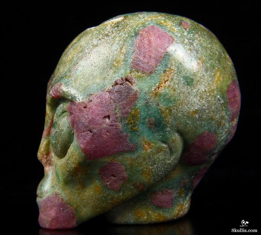 Gemstone Huge 5.1" Ruby Fuchsite Carved Crystal Skull, Super Realistic