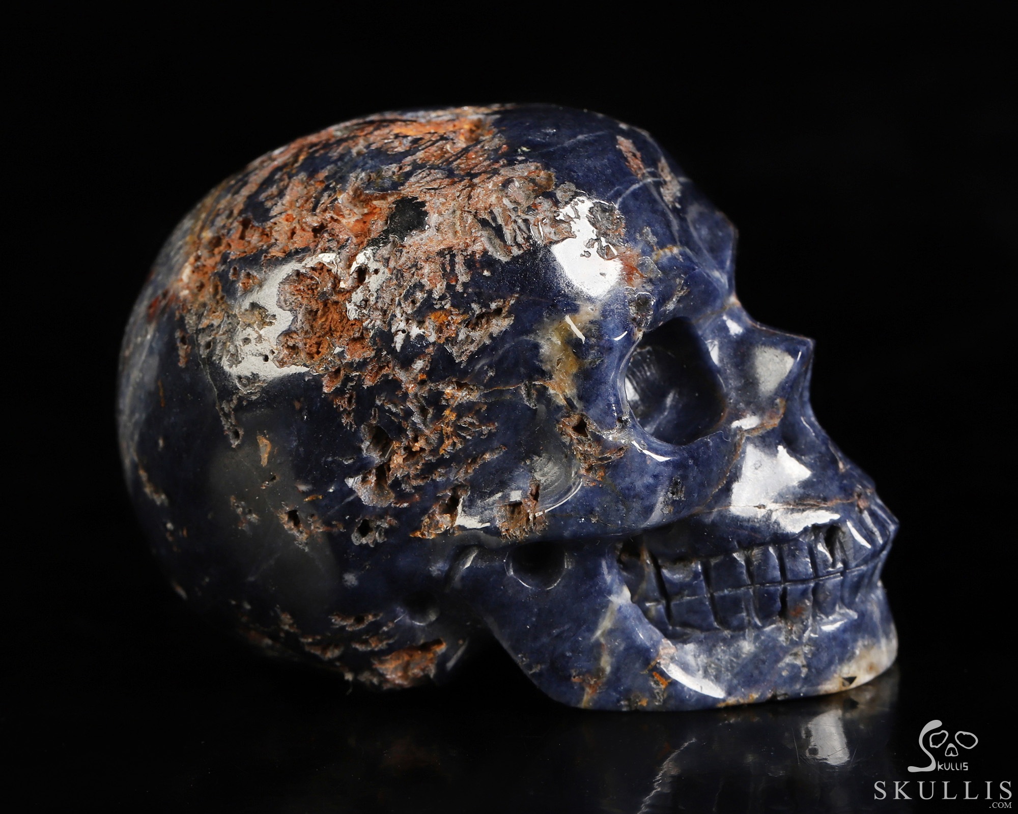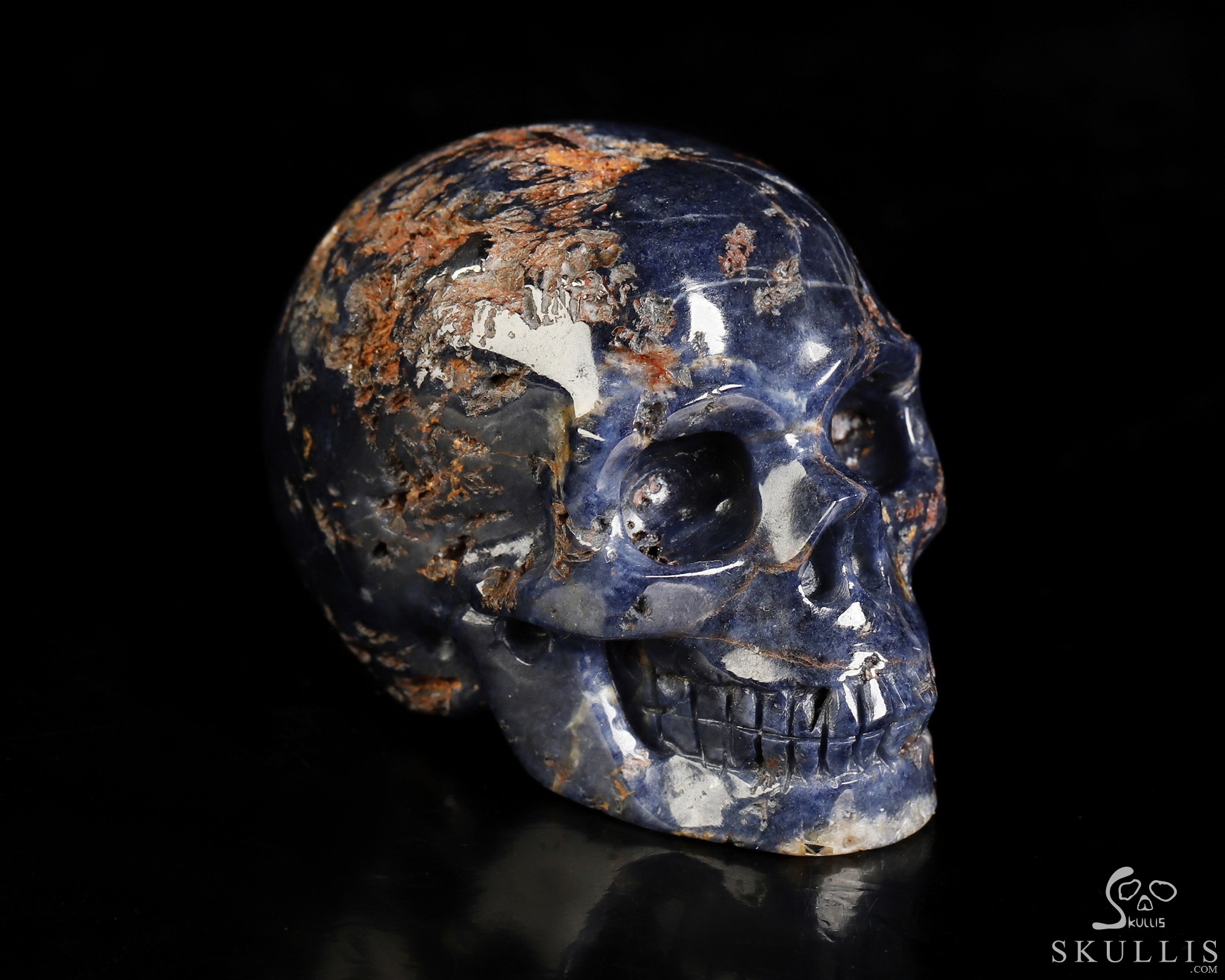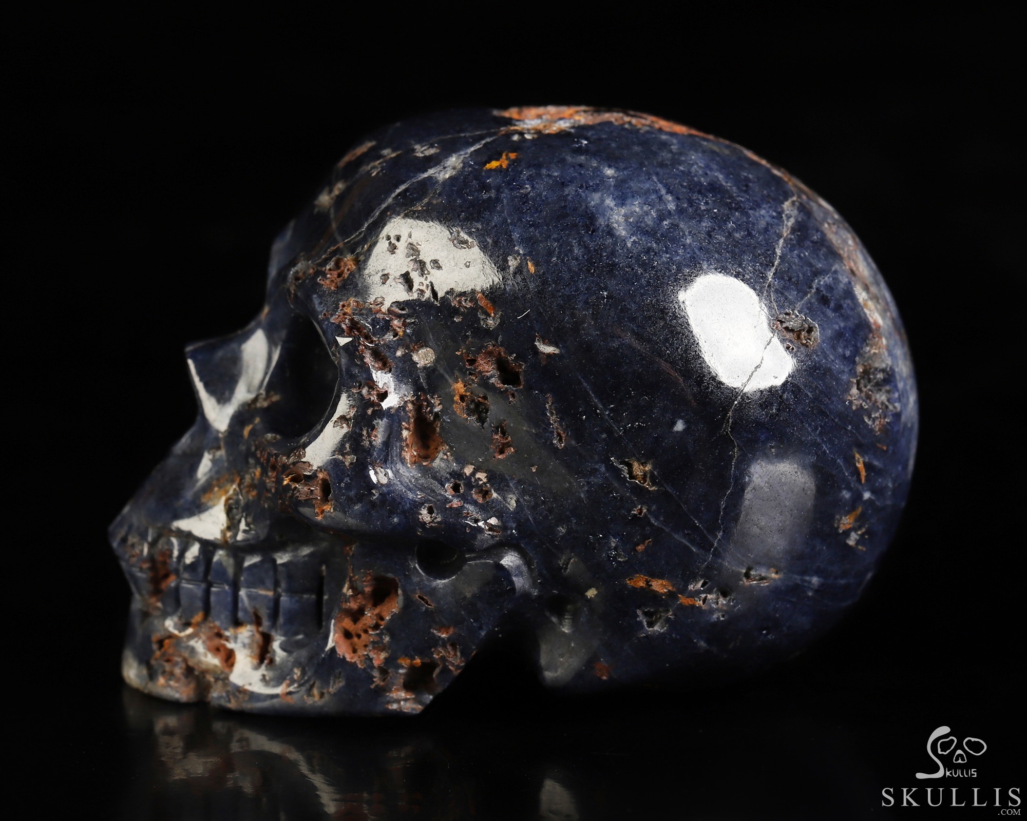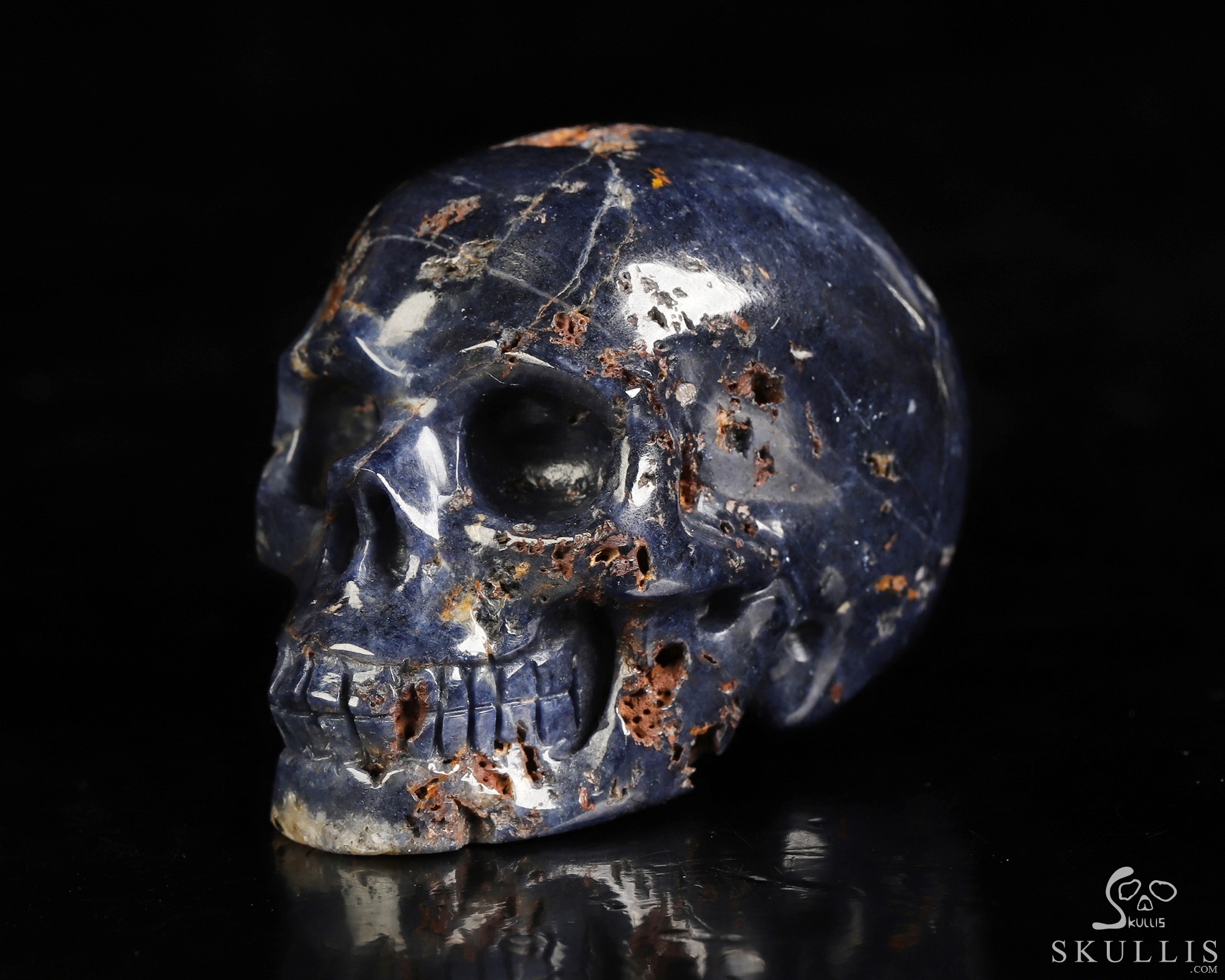 Gemstone 1.6" Sapphire Corundum Hand Carved Crystal Skull, Realistic, Crystal Healing