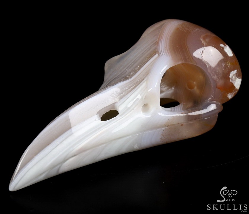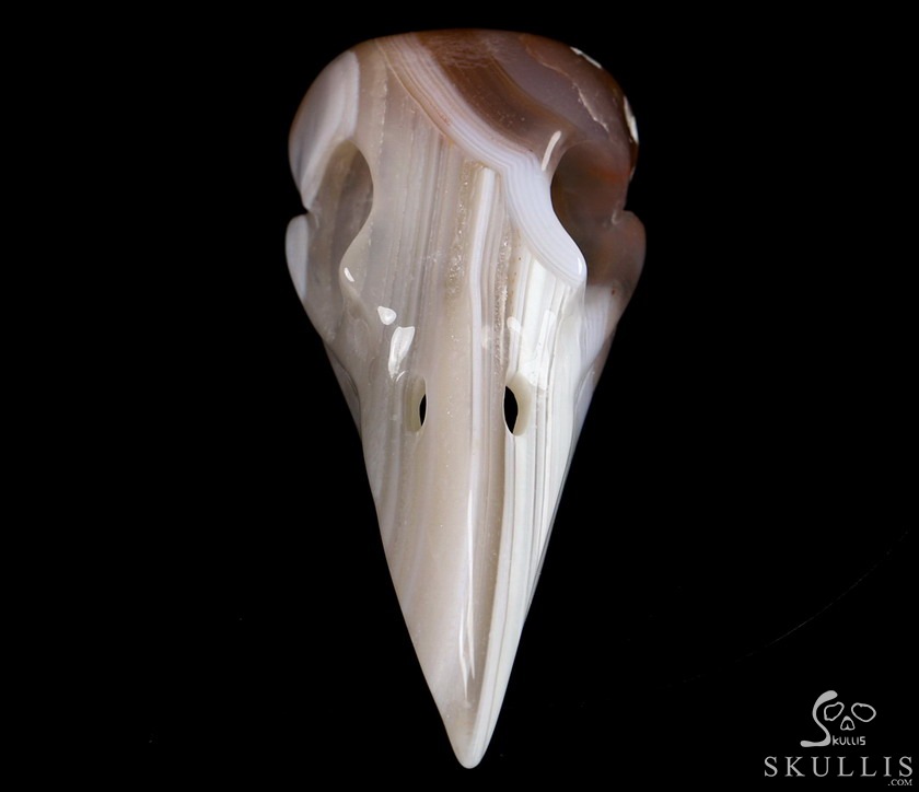 Gemstone 2.2" Mozambique Agate Carved Crystal Raven Skull Pendant, Crystal Healing
