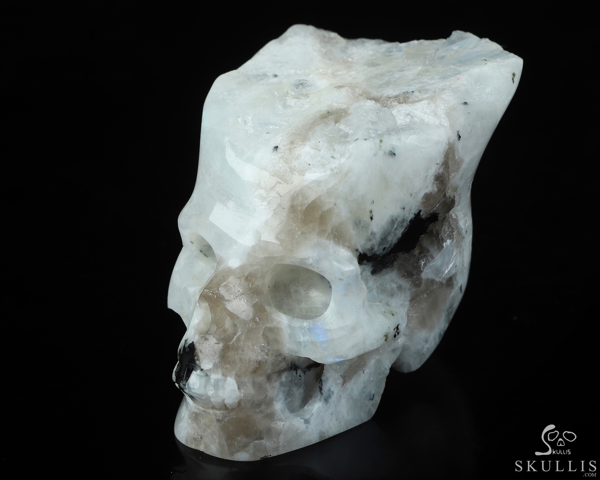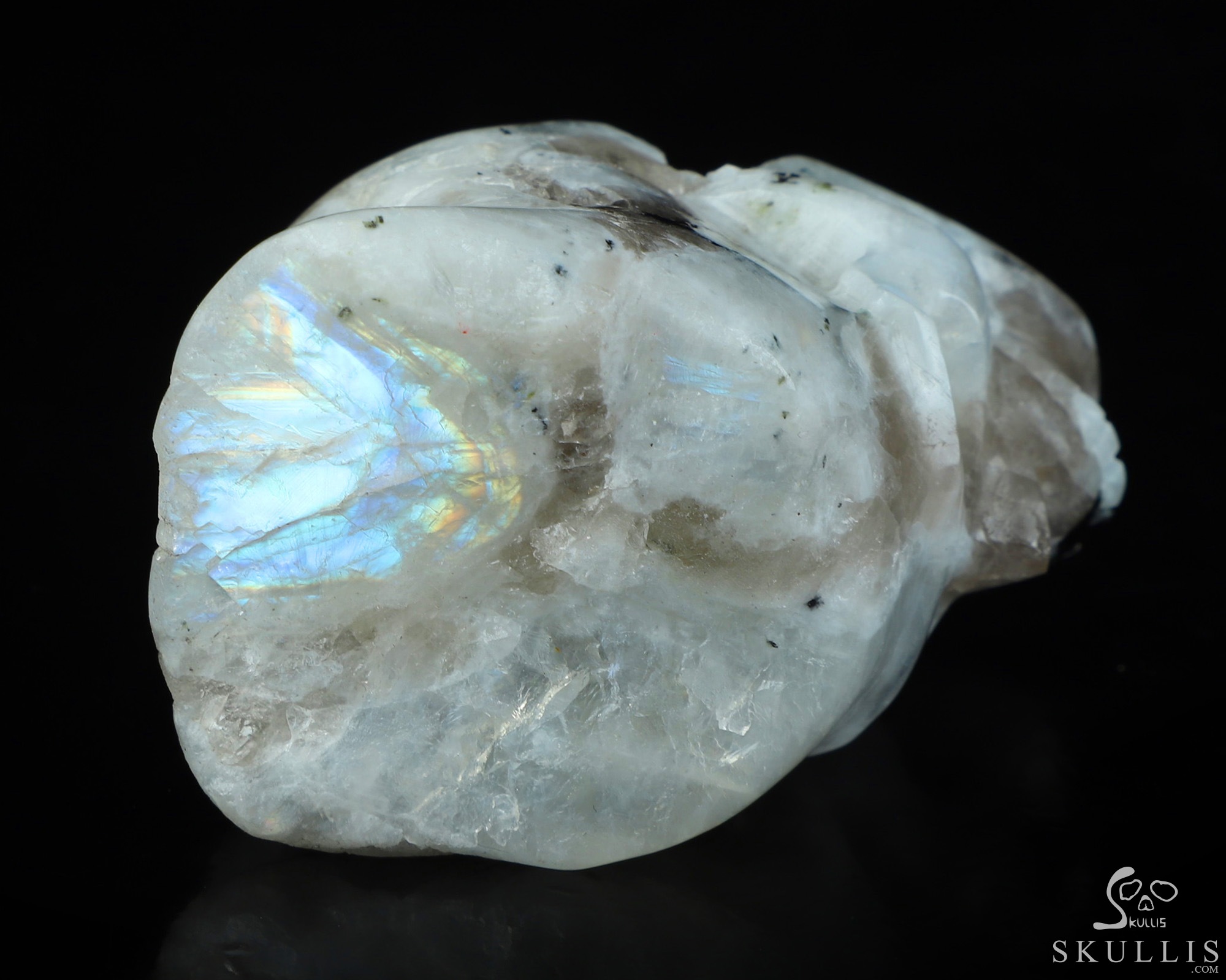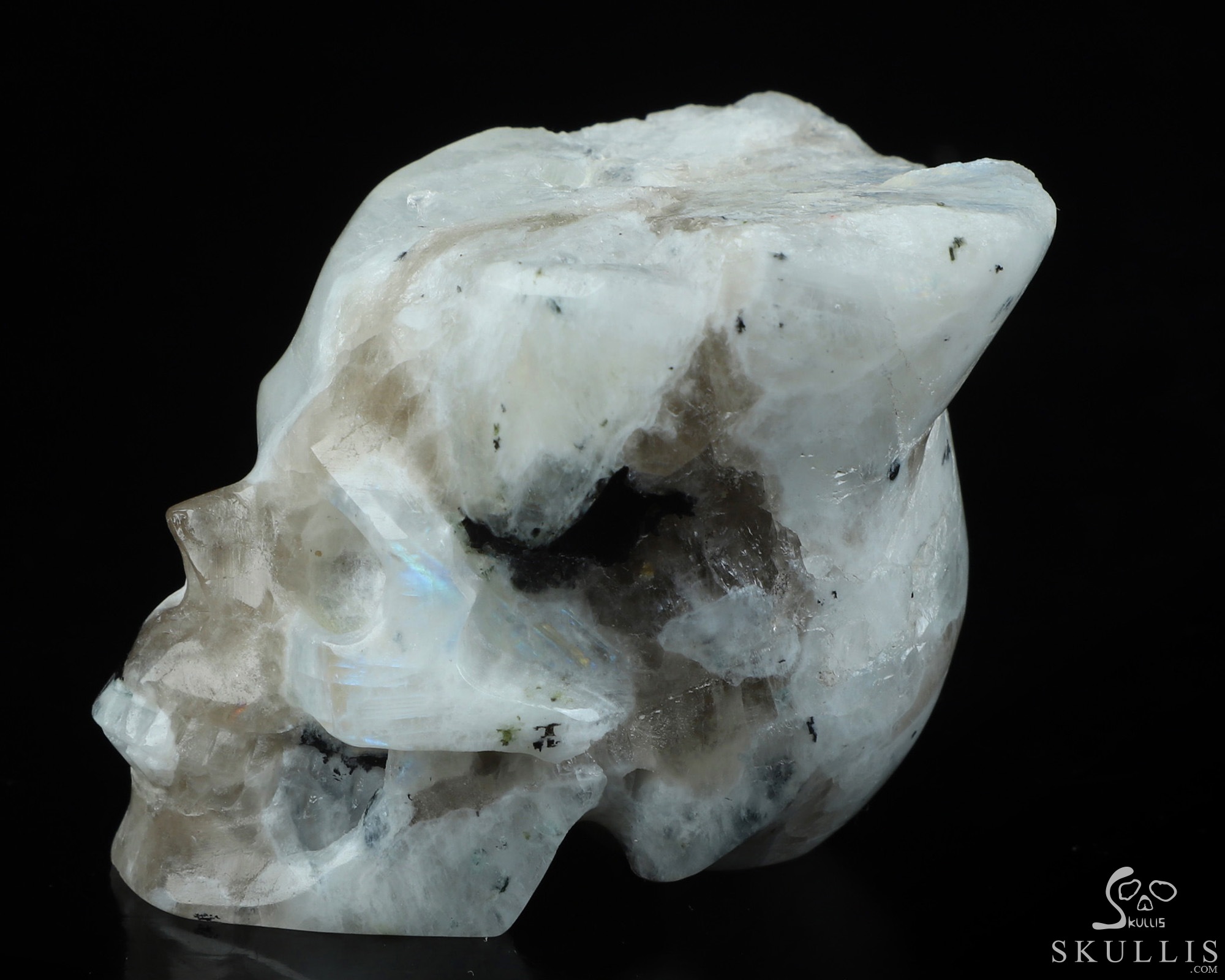 Gemstone 2.3" Moonstone Hand Carved Crystal Skull Fine Art Sculpture, Crystal Healing