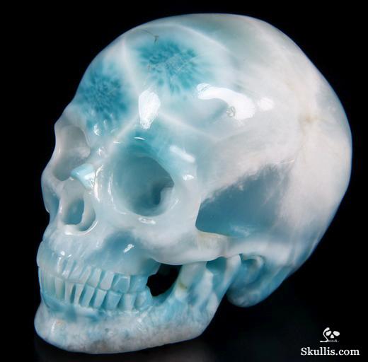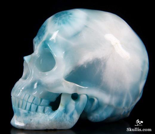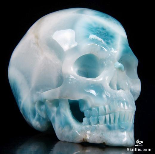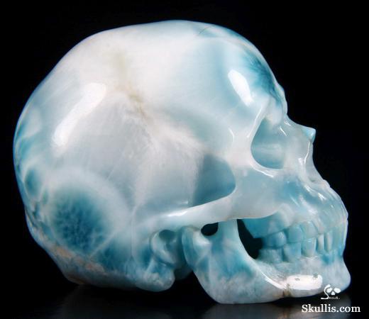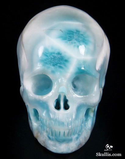 Gemstone Huge 5.3" Larimar Carved Crystal Skull,Super Realistic, Crystal Healing