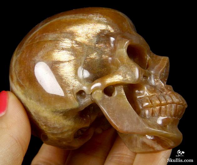 Flash 0.8" Moonstone Carved Gem Skull, Skullis Realistic