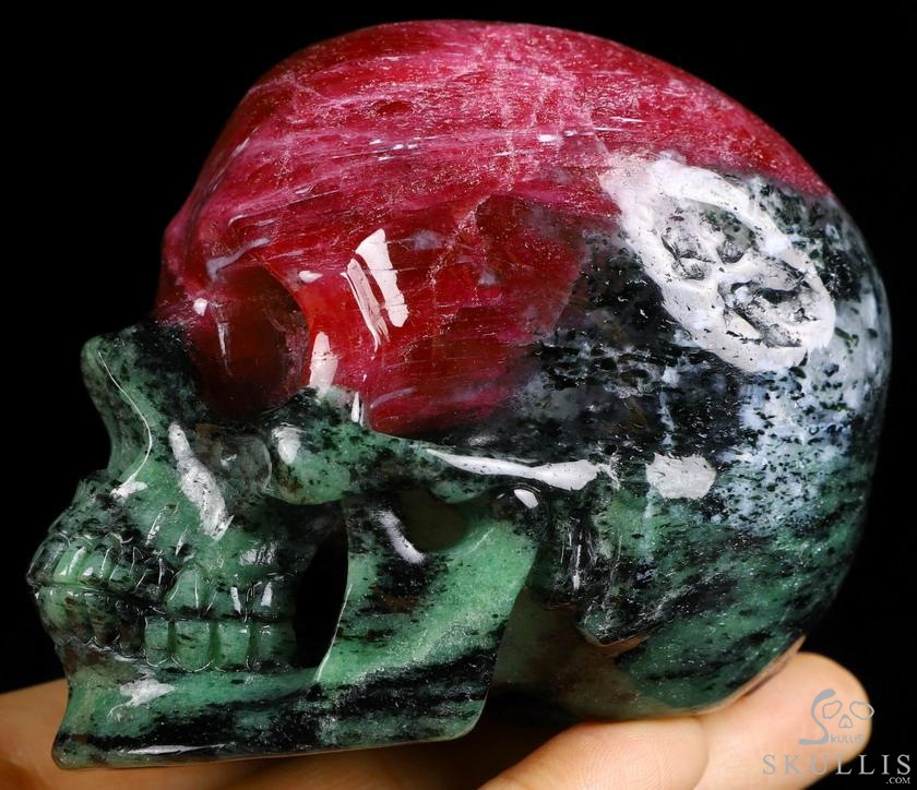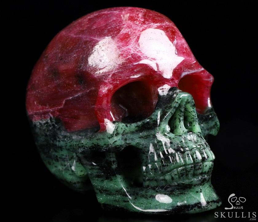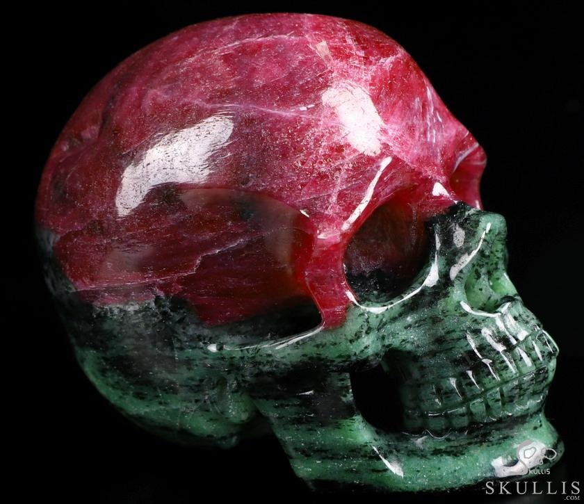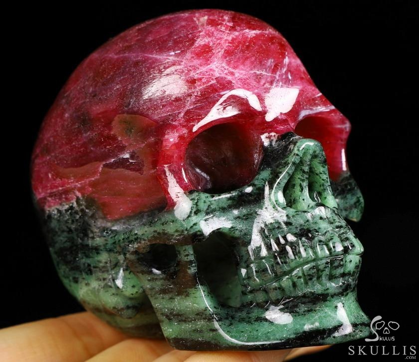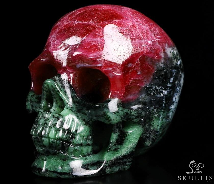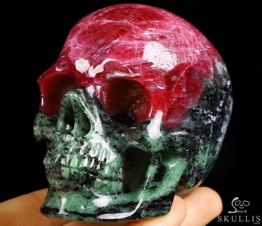 GEMSTONE 3.4" Ruby Zoisite Carved Crystal Skull,Super Realistic, Crystal Healing
