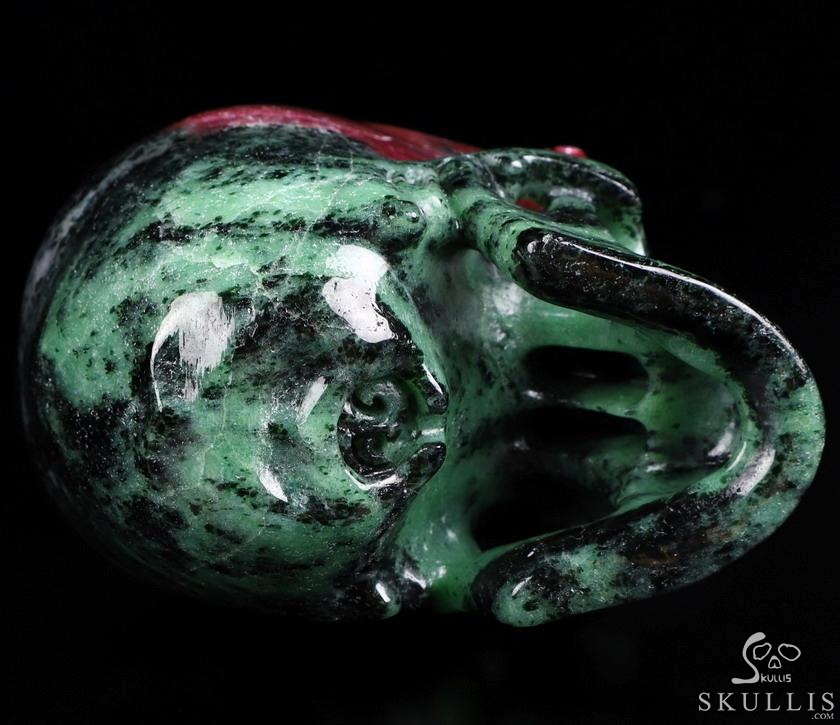 1.9" Ruby Zoisite Hand Carved Crystal Skull Fine Art Sculpture, Crystal Healing