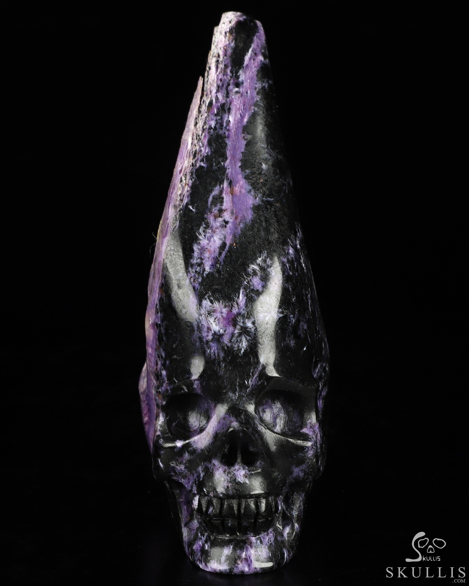 GEMSTONE Huge 5.3" Russian Charoite Carved Crystal Dragon Skull, Crystal Healing