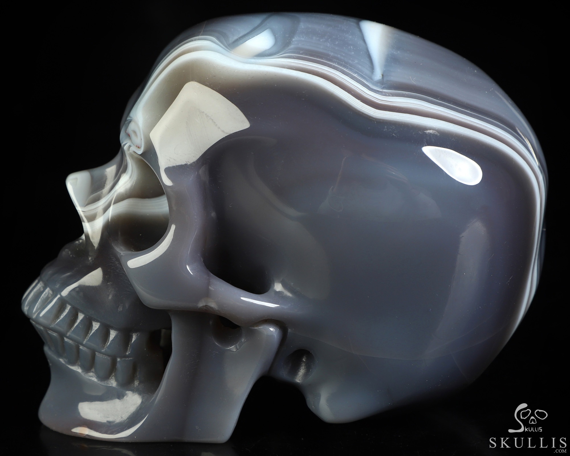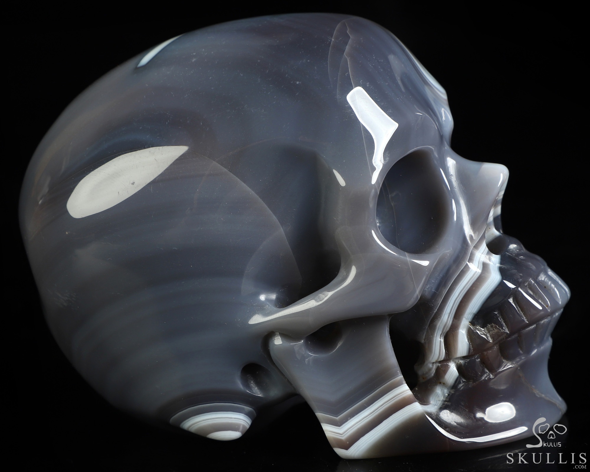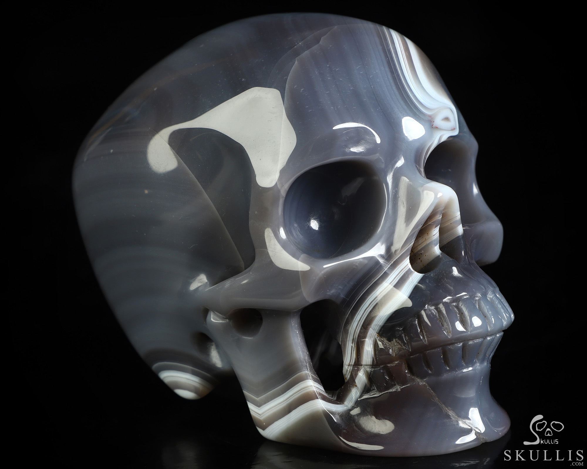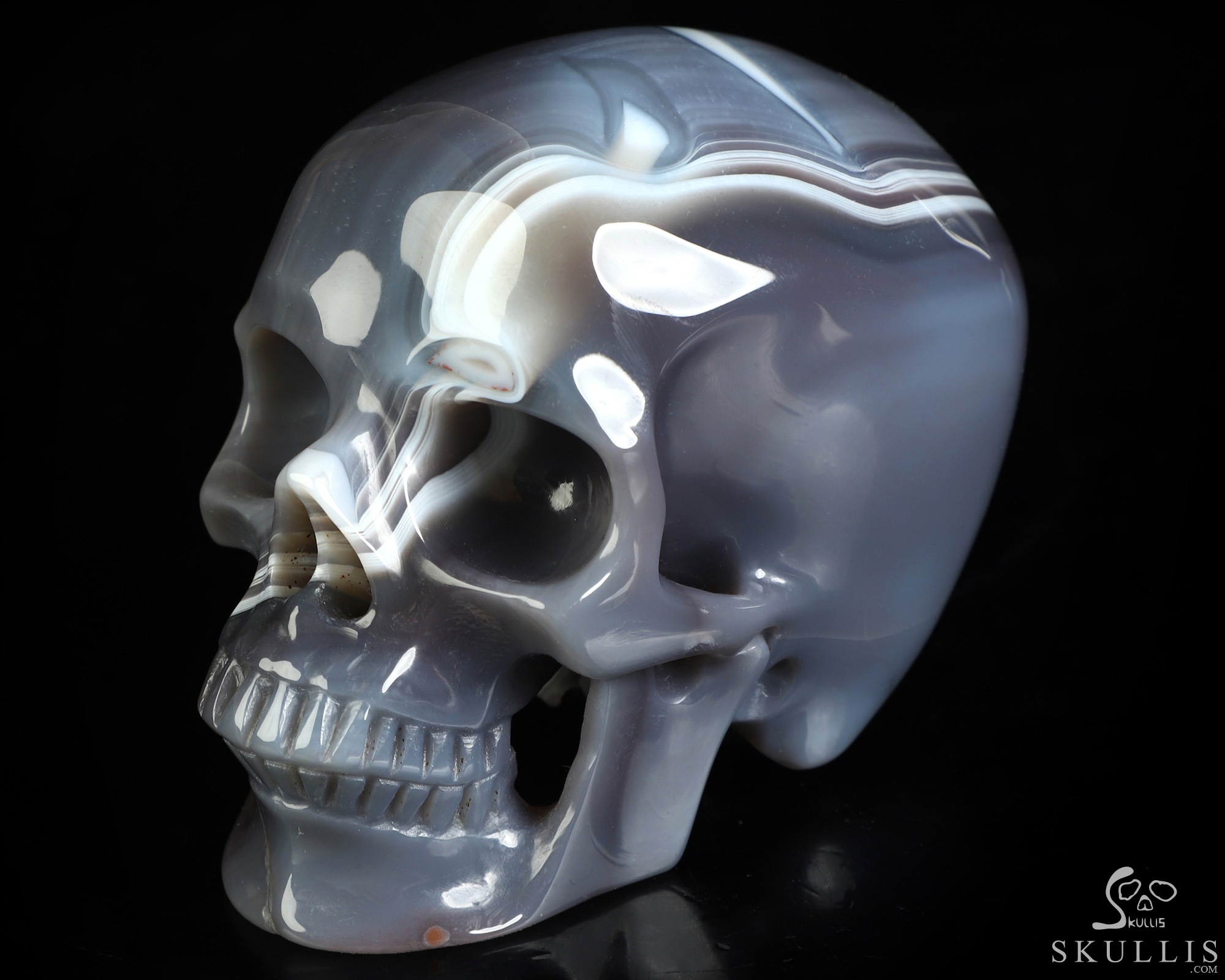 Gemstone 3.6" Mozambique Agate Hand Carved Crystal Skull, Super Realistic, Crystal Healing