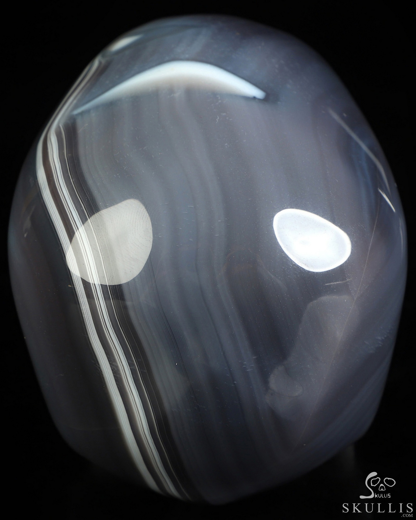 You are looking at a Mozambique Agate skull. The skull is 3.6 inches from front to back.