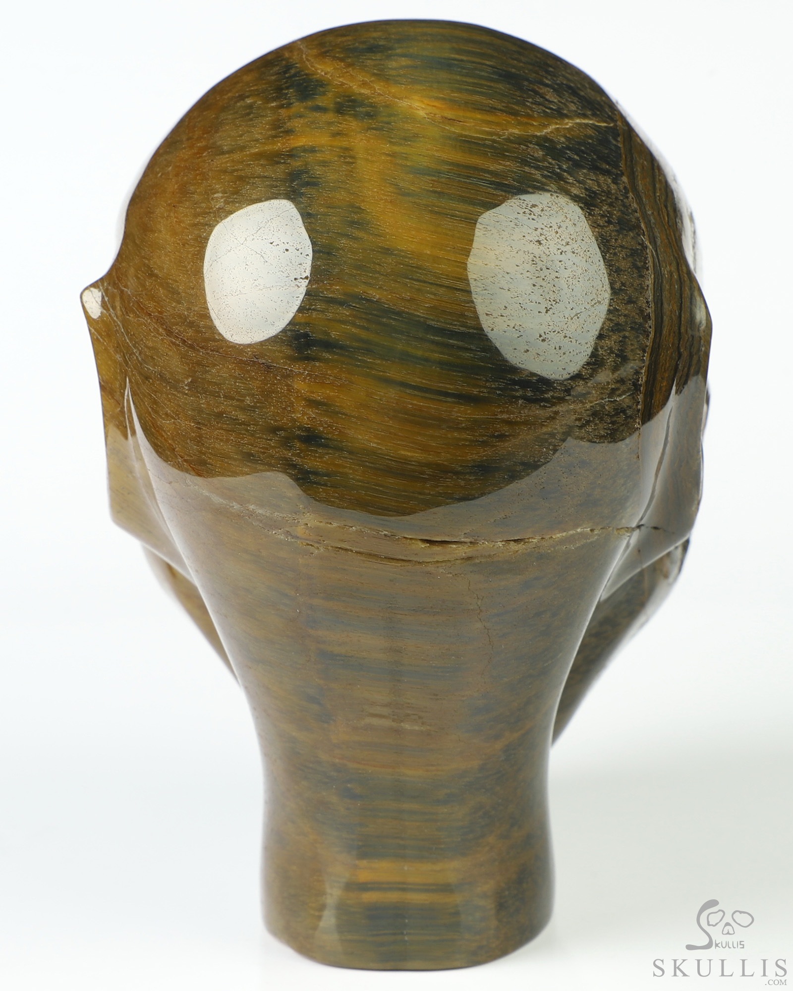 You are looking at a Blue & Gold Tiger's Eye skull. The skull is 4.1 inches from top to bottom.