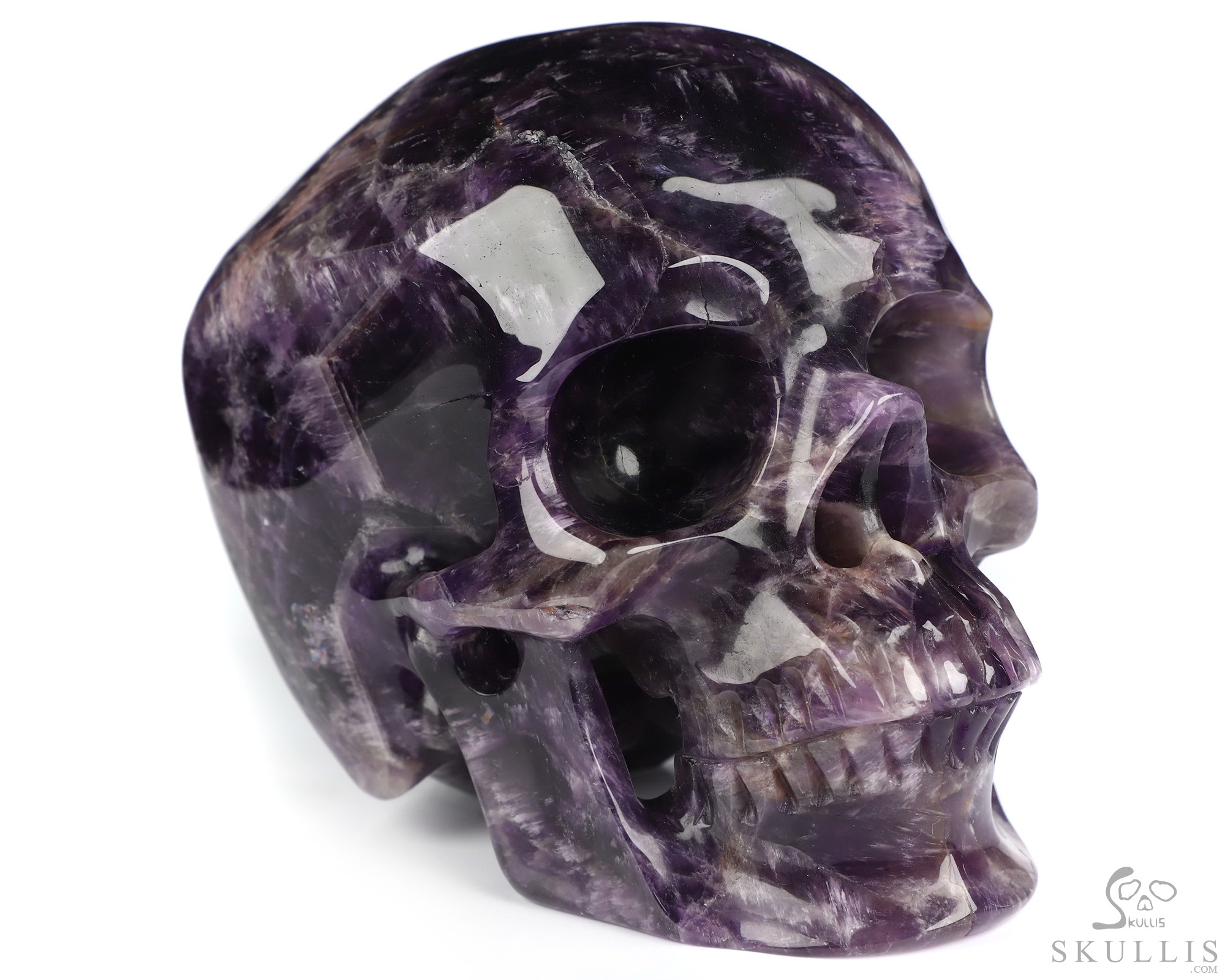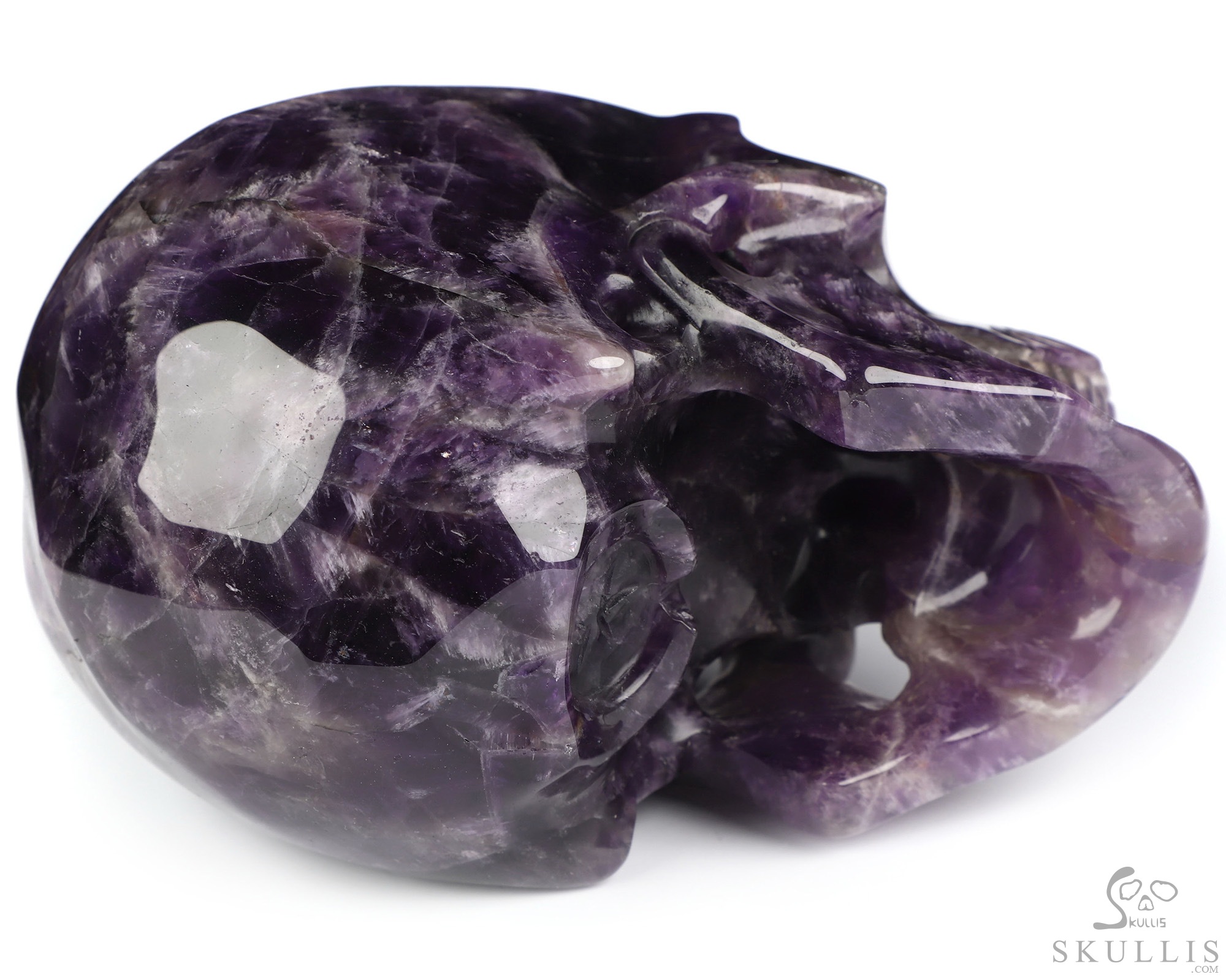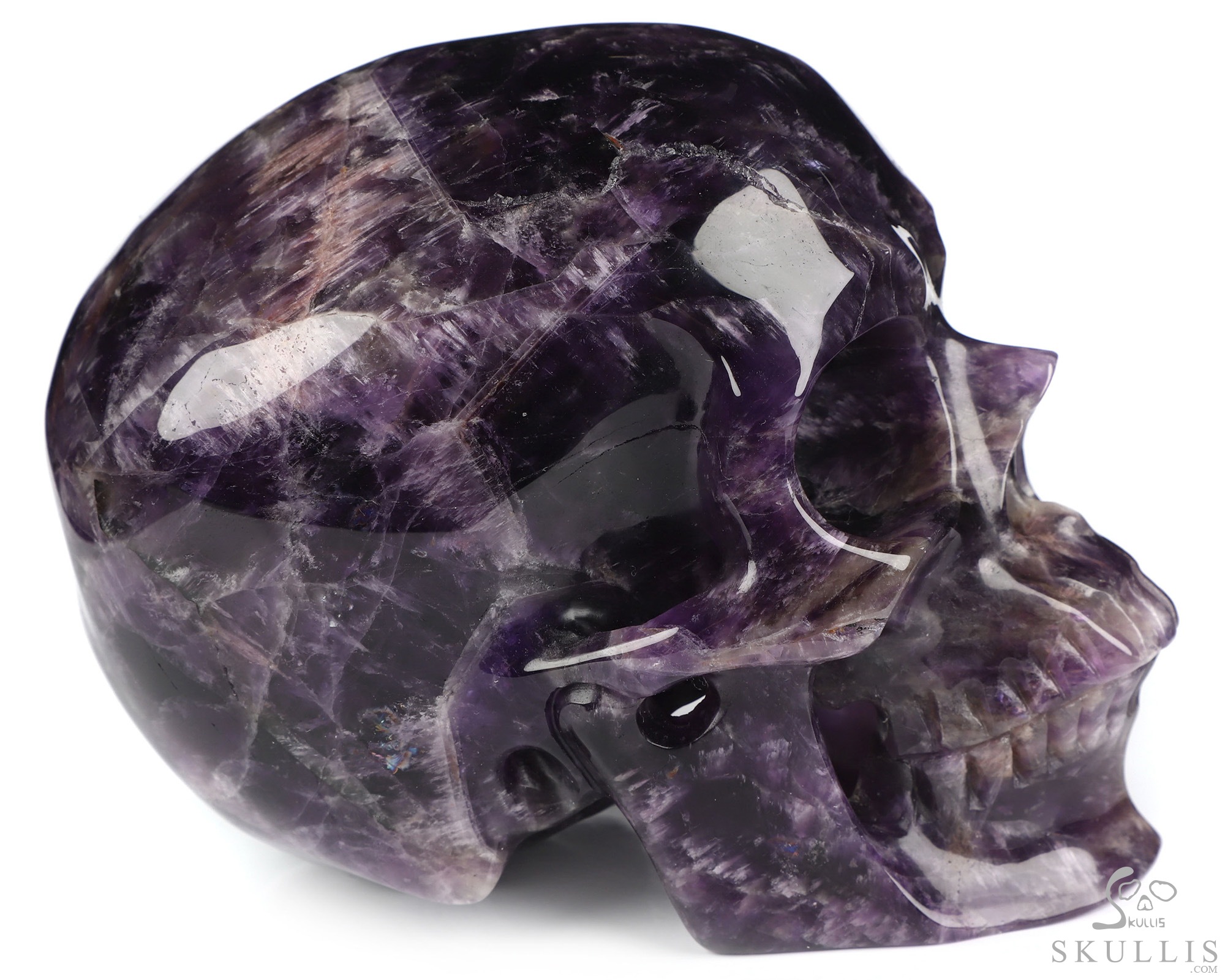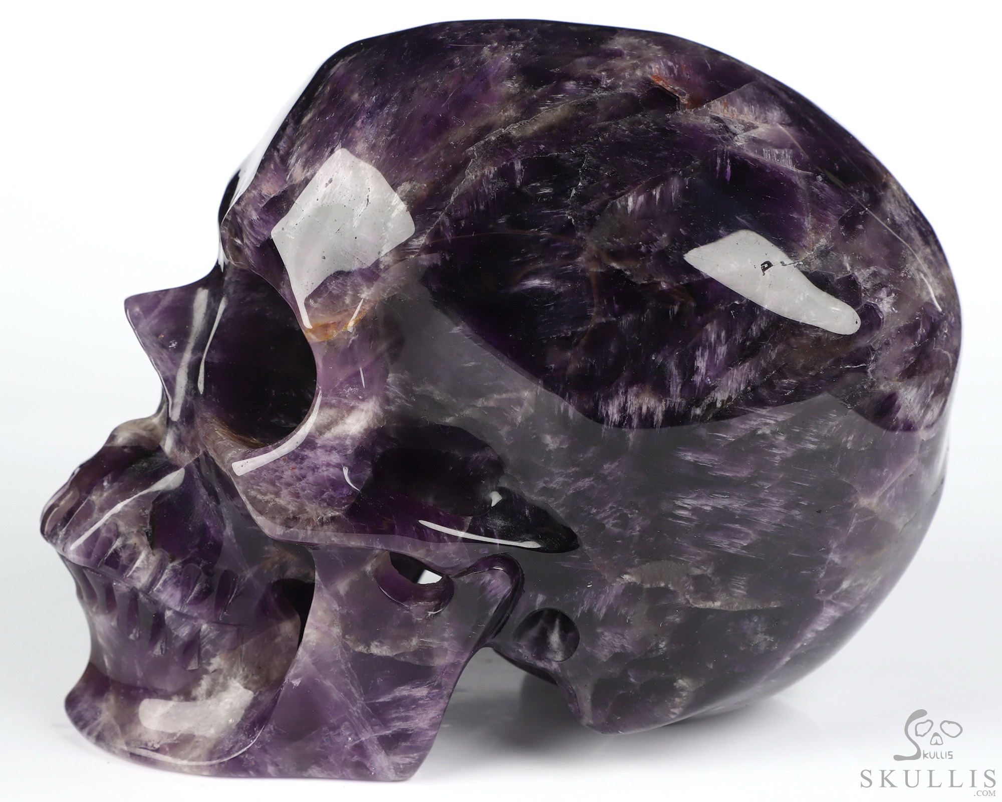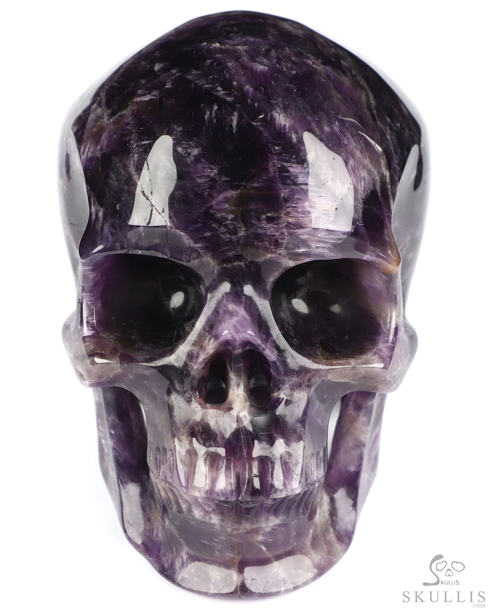 You are looking at an Amethyst skull. The skull is 5 inches from front to back.