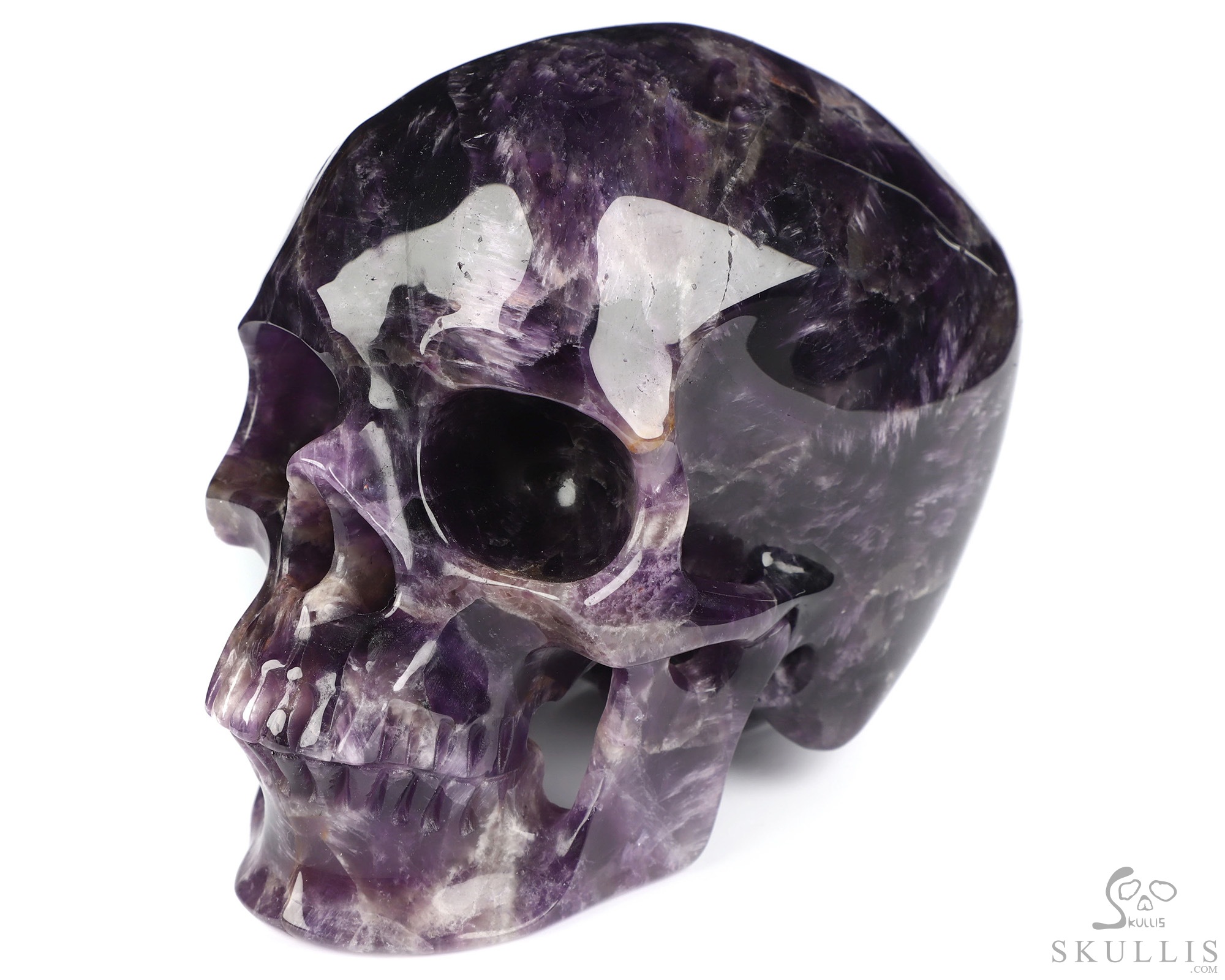 Gemstone 4.5" Amethyst Hand Carved Crystal Skull, Super Realistic, Crystal Healing
