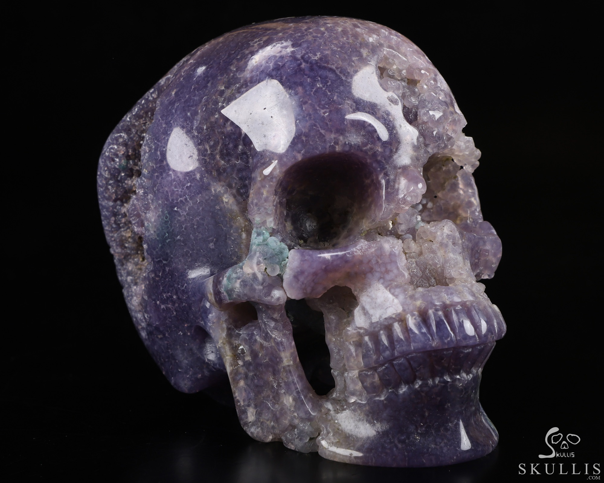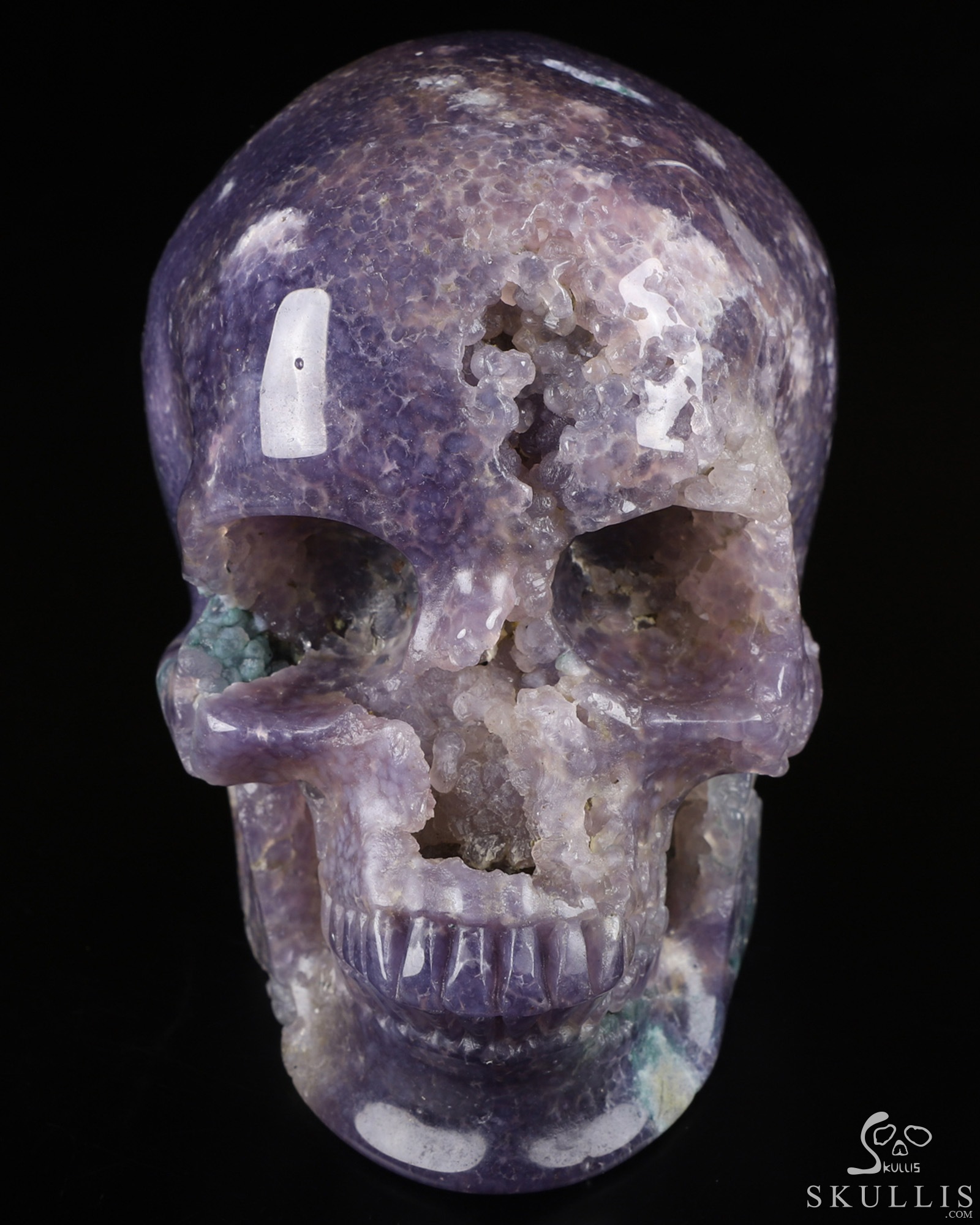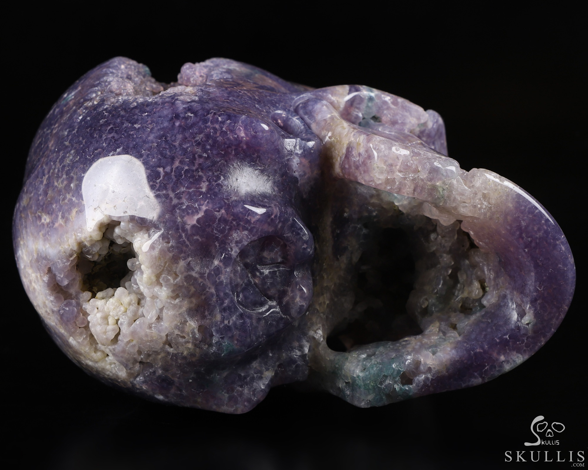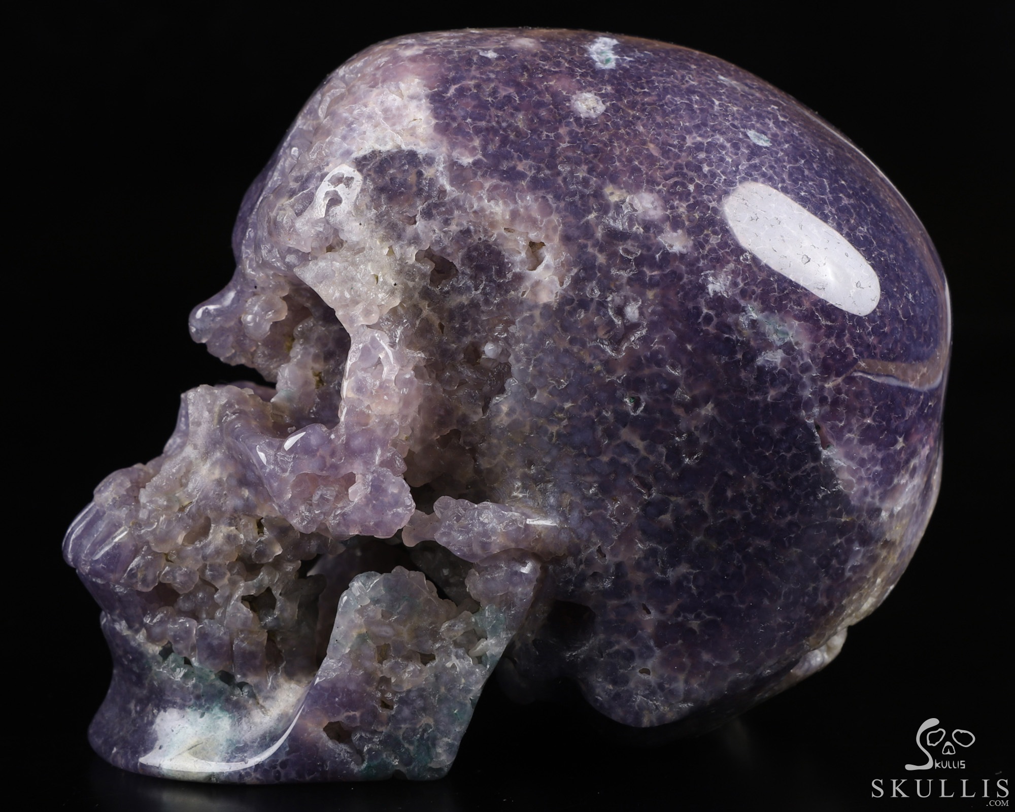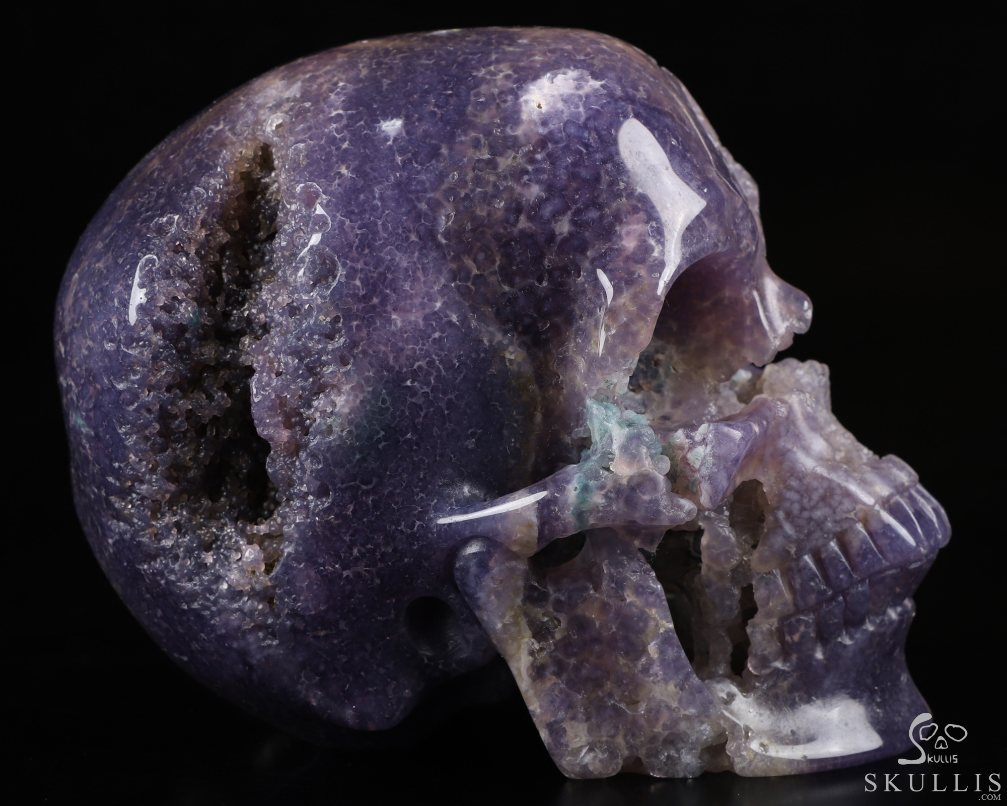 Gemstone 5.0" Purple Grape Agate Geode Carved Crystal Skull,Super Realistic, Crystal Healing