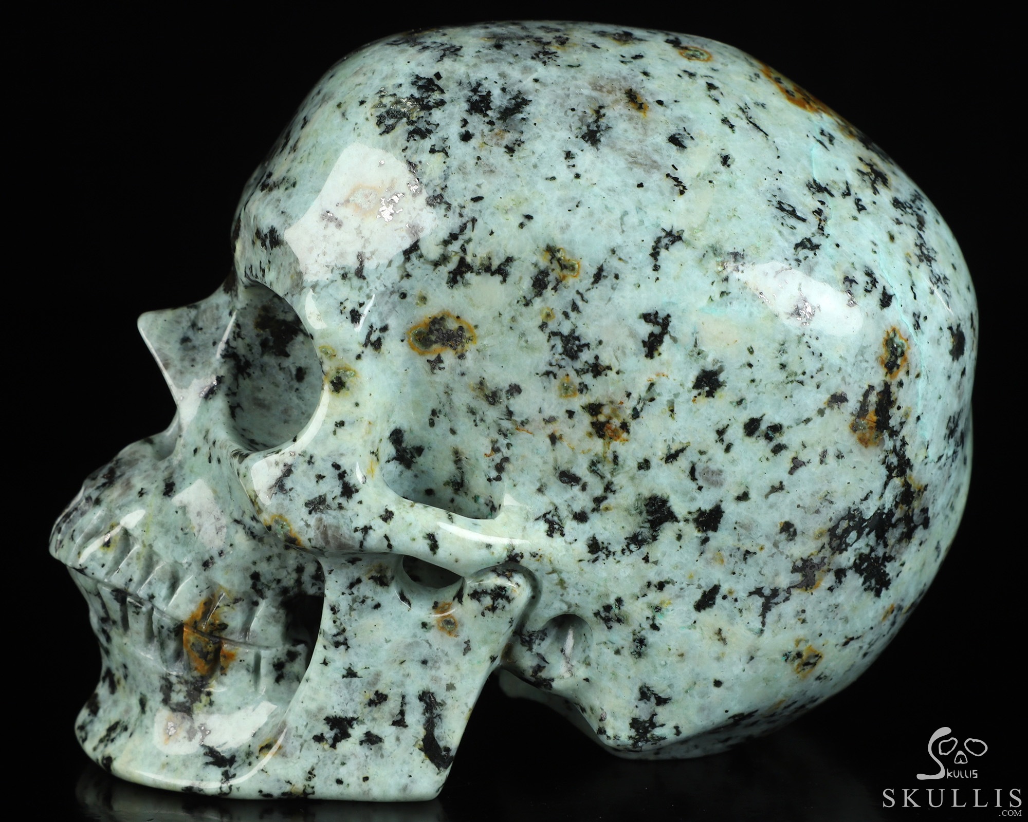 4.9" African Turquoise Hand Carved Crystal Skull, Realistic, Crystal Healing