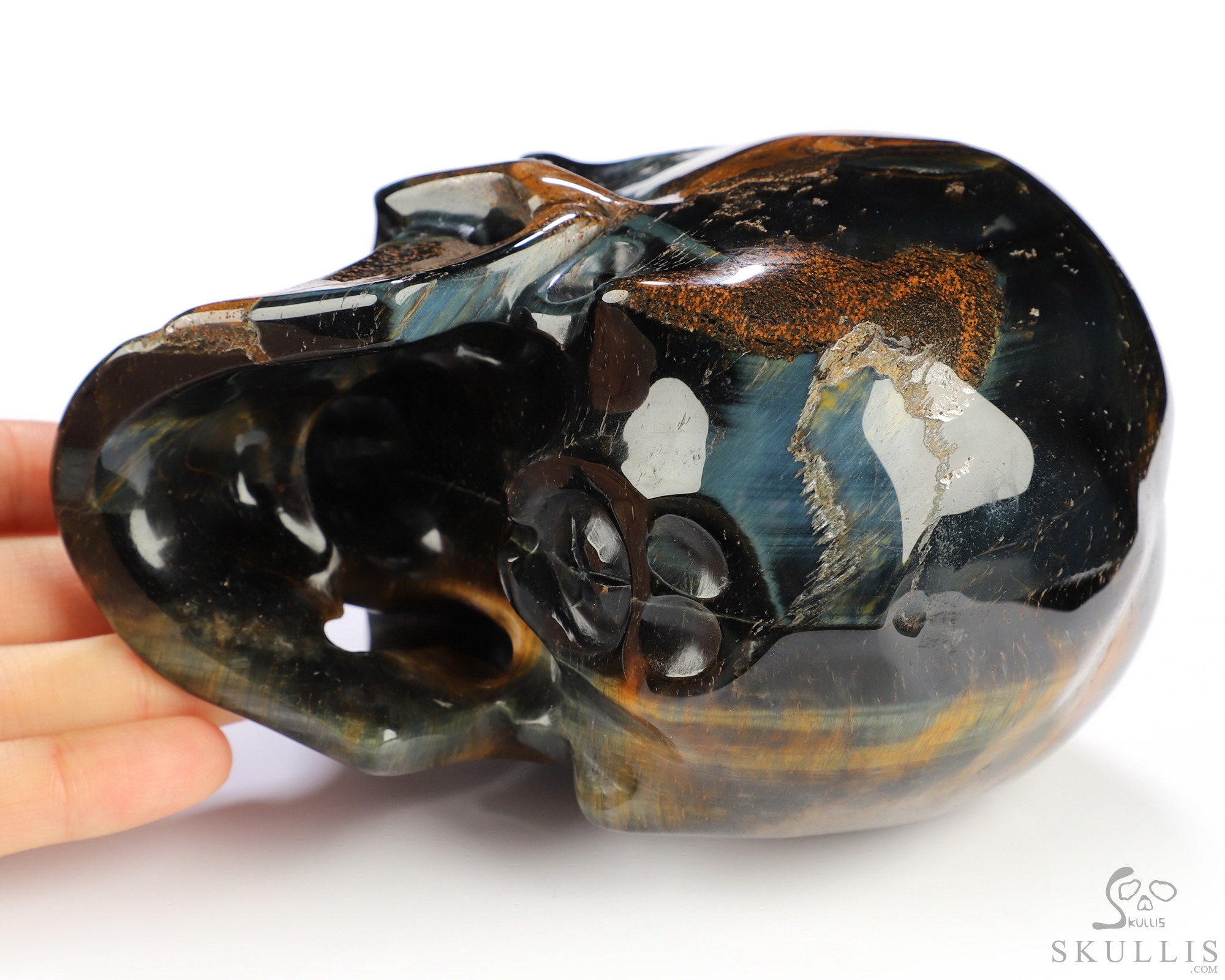 Gemstone 5.1" Blue & Gold Tiger's Eye Hand Carved Crystal Skull, Super Realistic, Crystal Healing