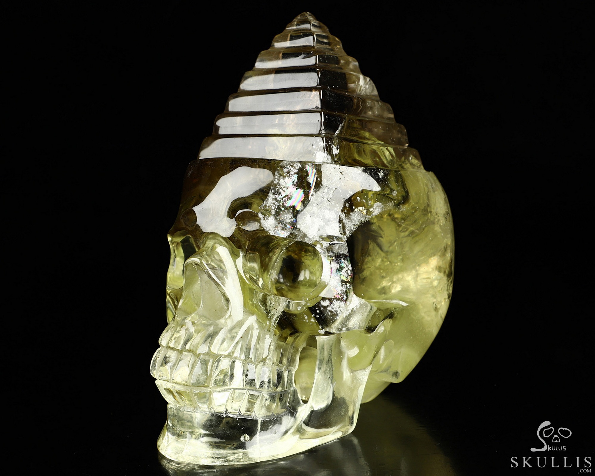 Gemstone 6.9" Citrine Hand Carved Pharaoh Crystal Skull Sculpture,Crystal Healing