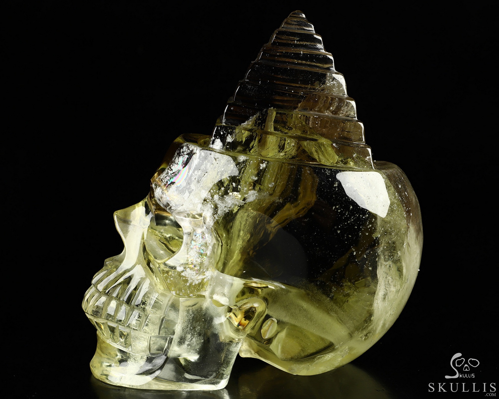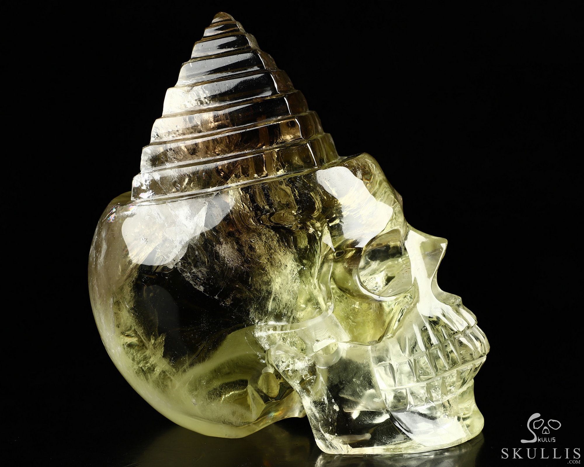 Gemstone 5.1" Citrine Hand Carved Crystal Skull Fine Art Sculpture, Crystal Healing