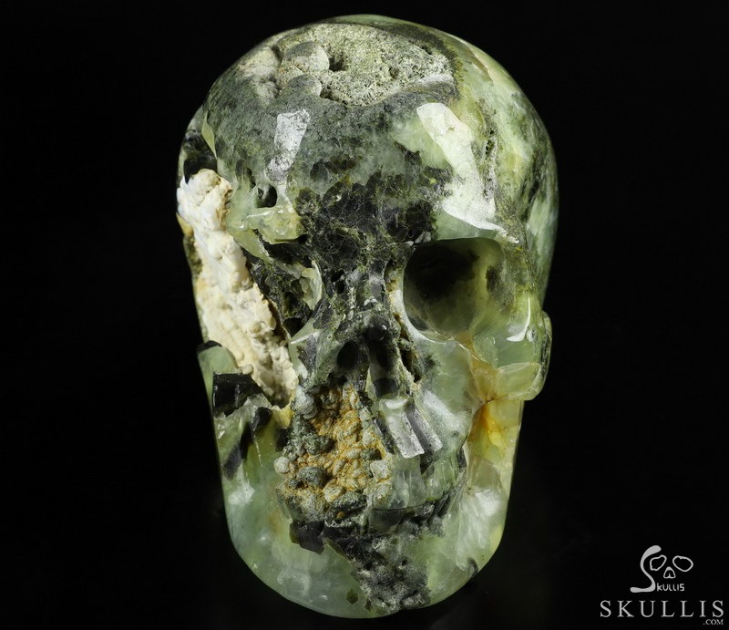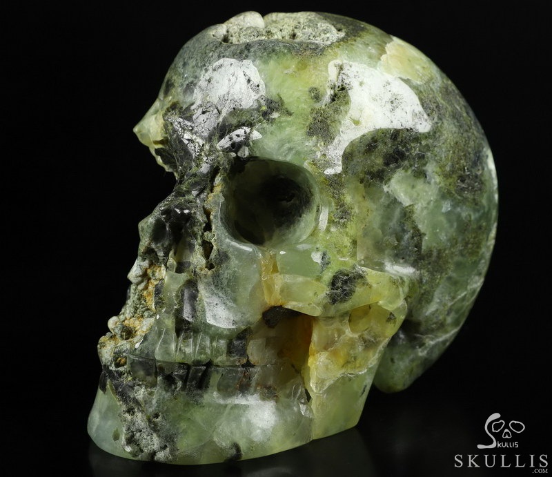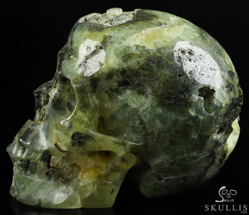 GEODE 5.0" Prehnite Carved Crystal Skull,Super Realistic, Crystal Healing