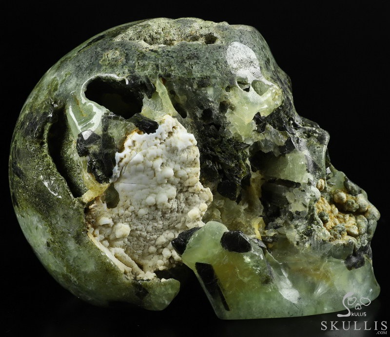 Gemstone 5.0" Prehnite Carved Crystal Skull geode, Realistic