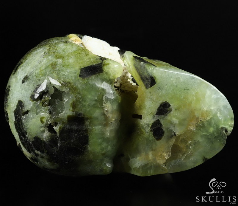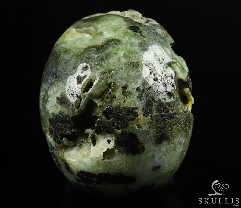 5.1" Prehnite Carved Crystal Skull,Realistic, Crystal Healing