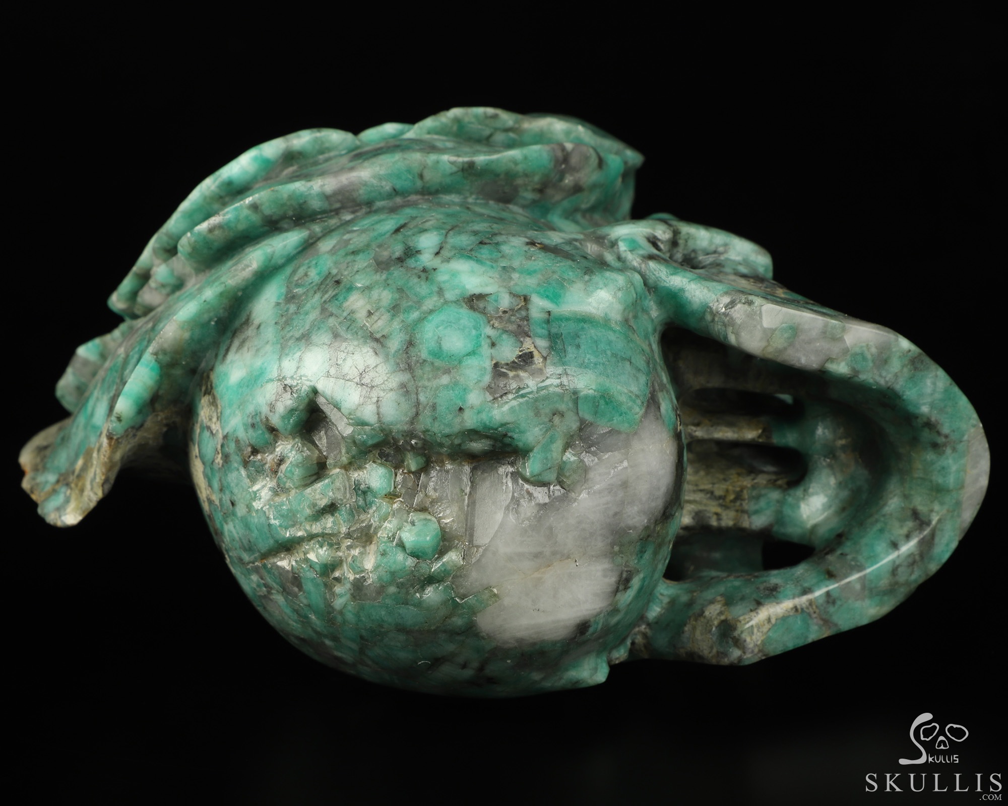 Gemstone 5.2" Emerald Carved Crystal Skull & Flower, Crystal Healing