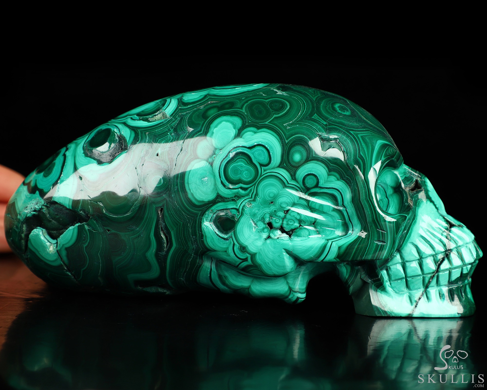 5.1" Malachite Carved Crystal Skull,Super Realistic, Crystal Healing