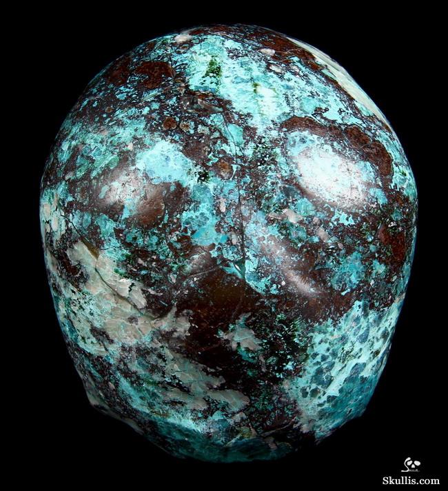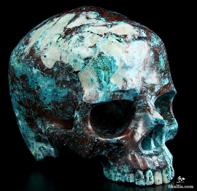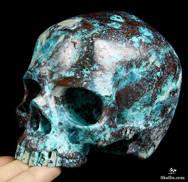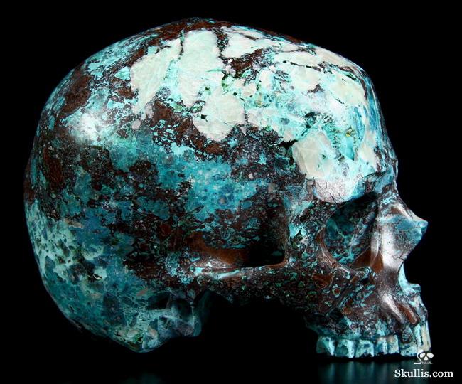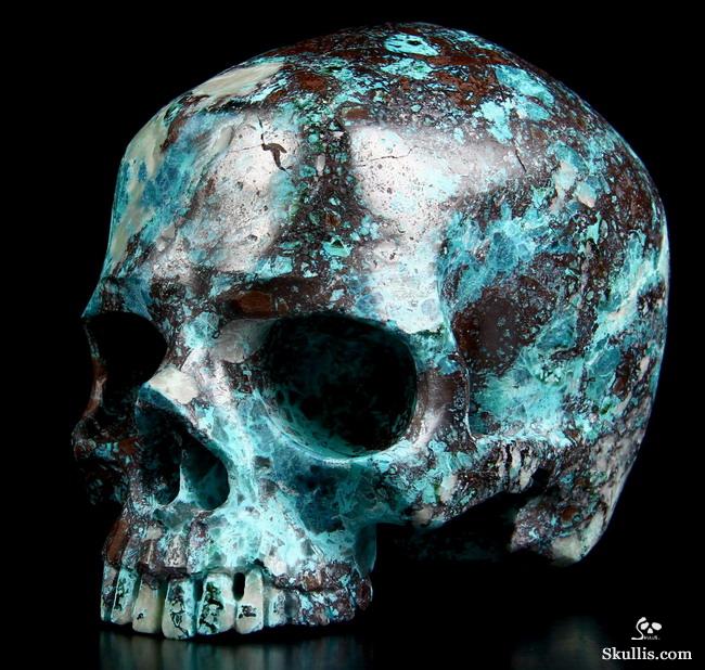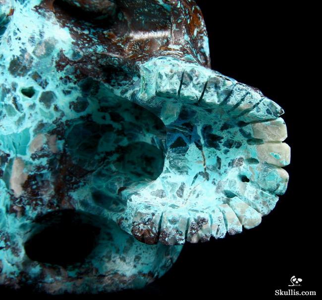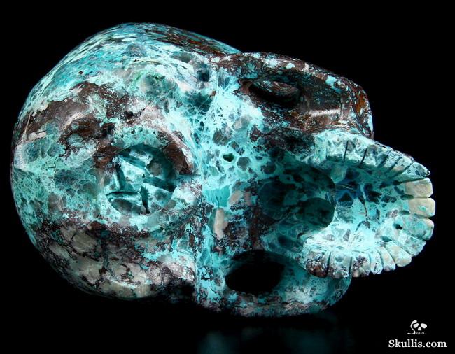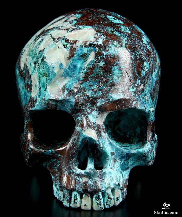 Gemstone Huge 4.9" American Chrysocolla Carved Crystal Skull, Super Realistic