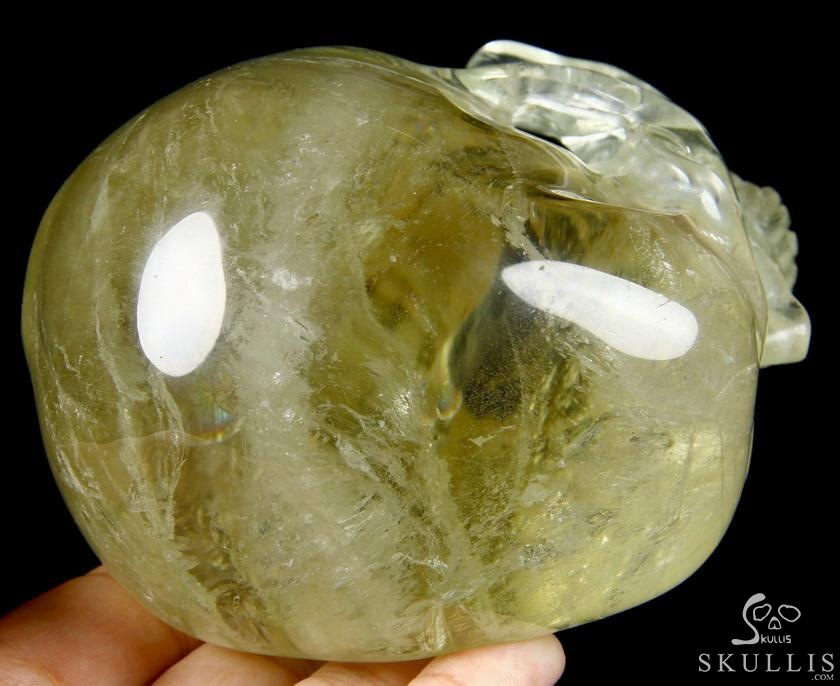 Gemstone 7.8" Citrine Hand Carved Crystal Skull Fine Art Sculpture, Crystal Healing