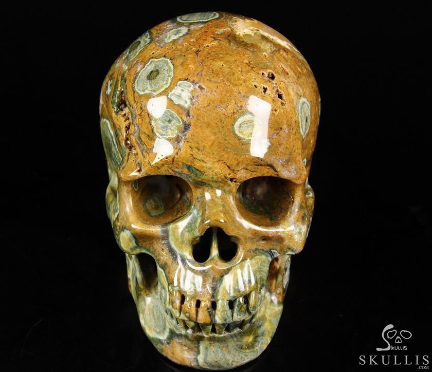 5.1" Ocean Jasper Hand Carved Crystal Skull, Super Realistic, Crystal Healing