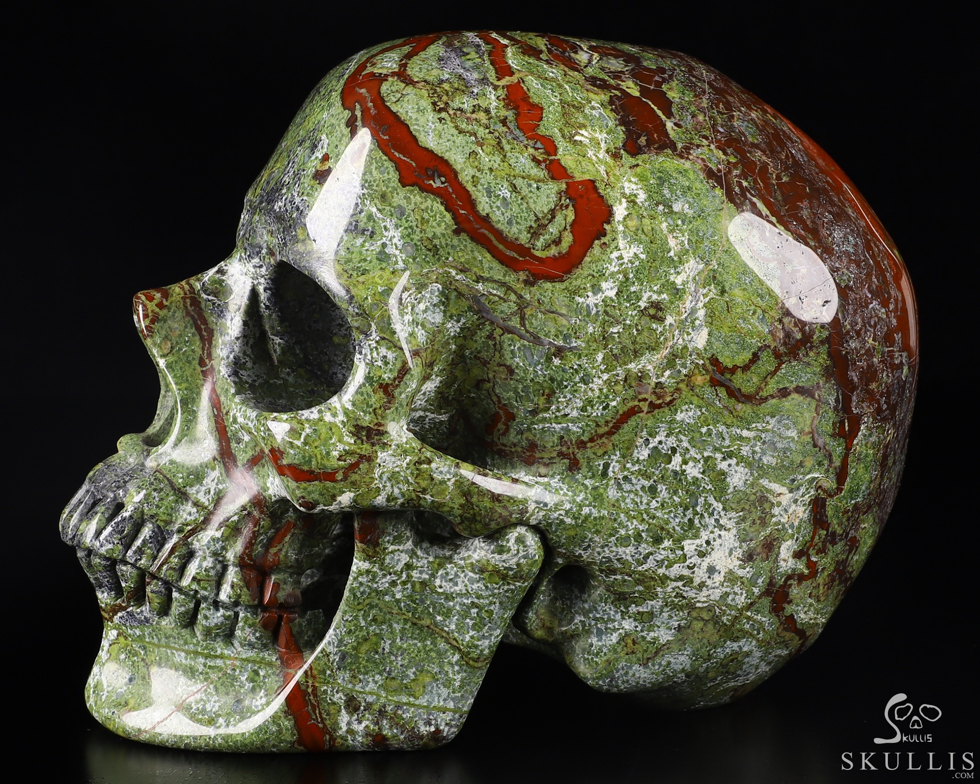 5.1" Dragon Blood Jasper Hand Carved Crystal Skull, Super Realistic, Crystal Healing