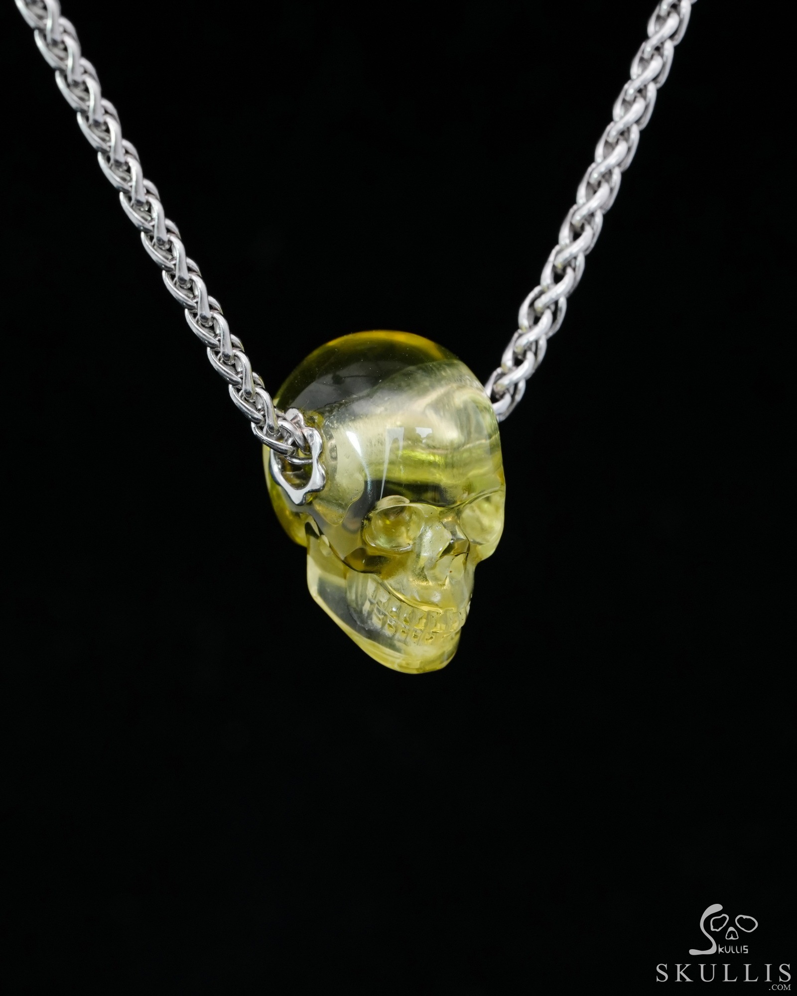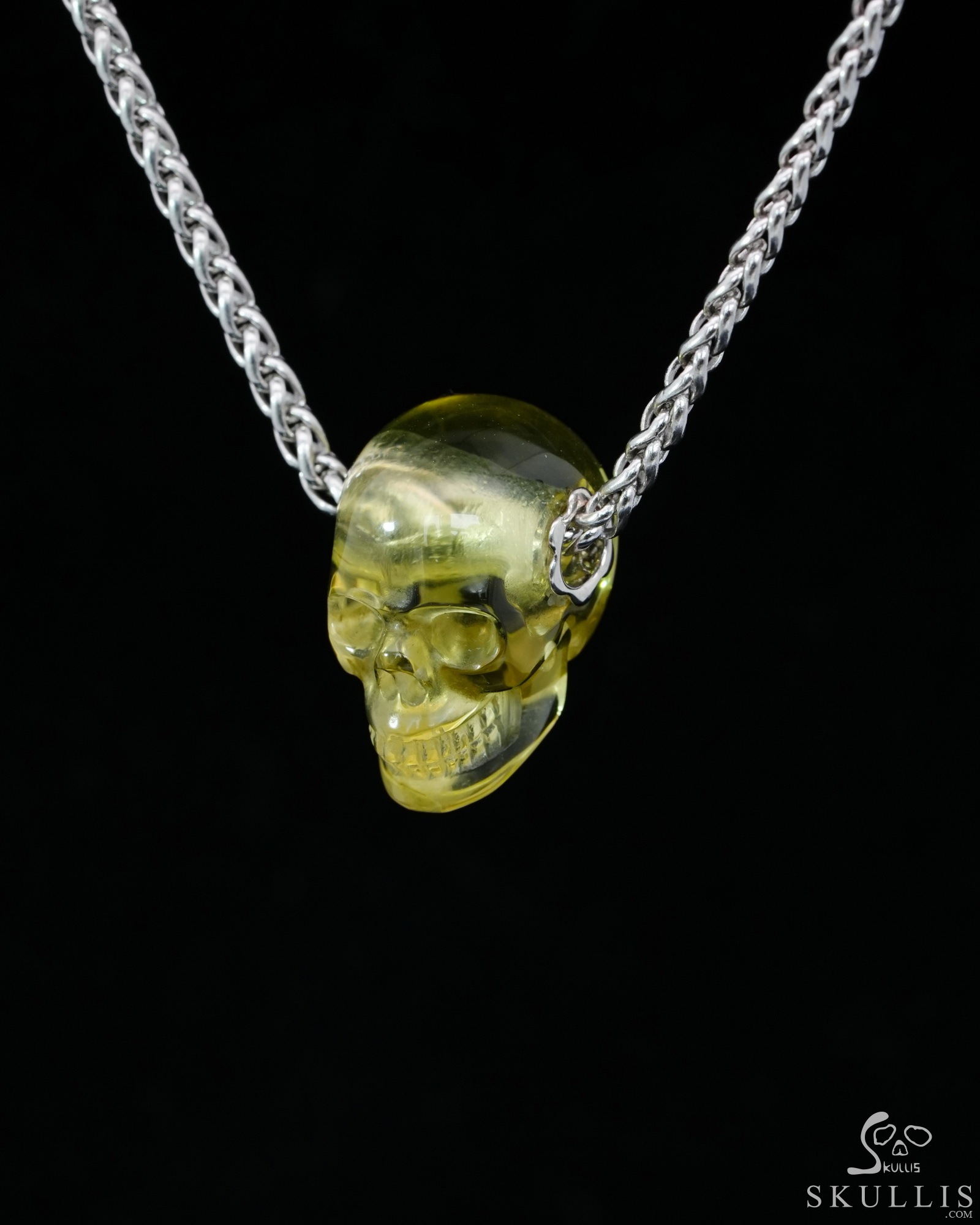 Gemstone Necklace of 0.7" Citrine Hand Carved Crystal Skull Pendant, Skull Jewelry