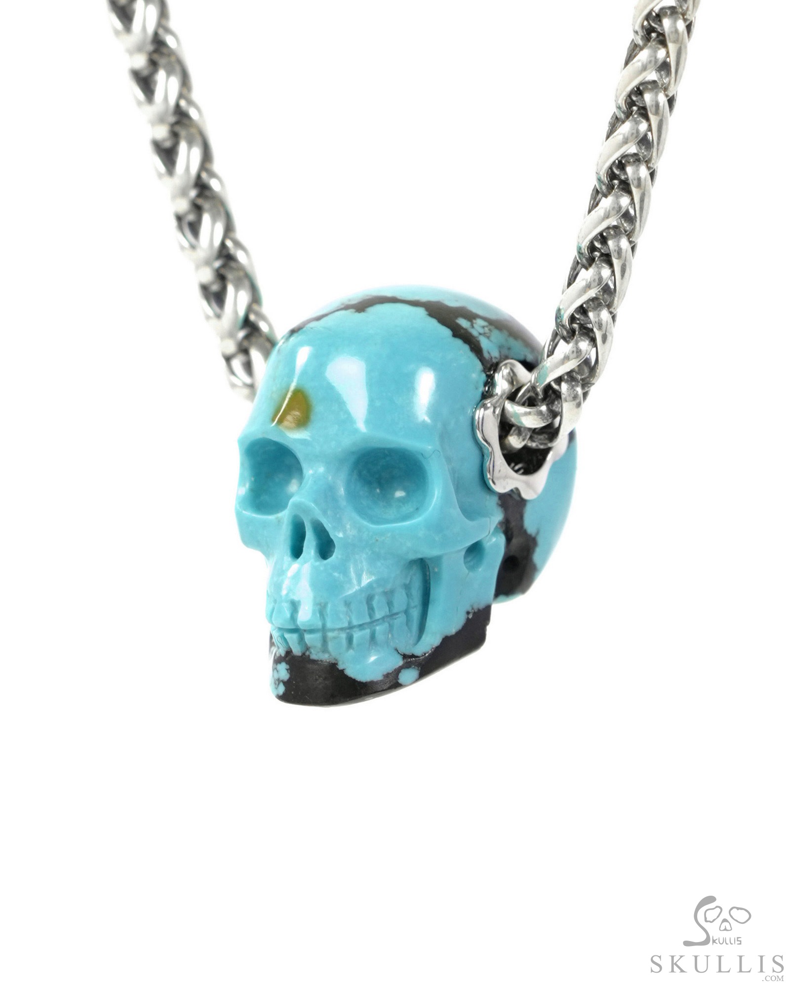 Gemstone Necklace of 0.7" Turquoise Hand Carved Crystal Skull Pendant, Skull Jewelry