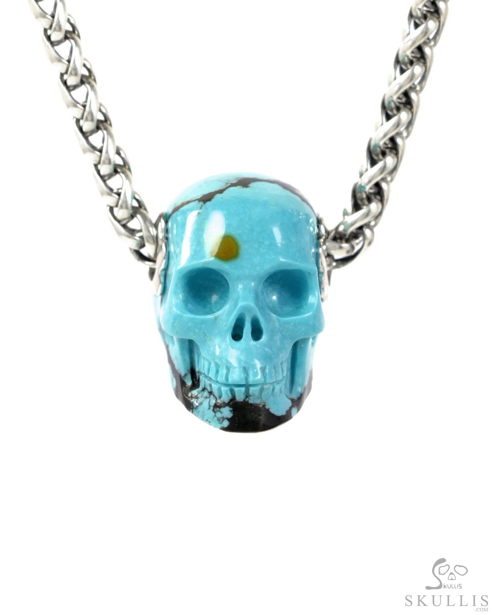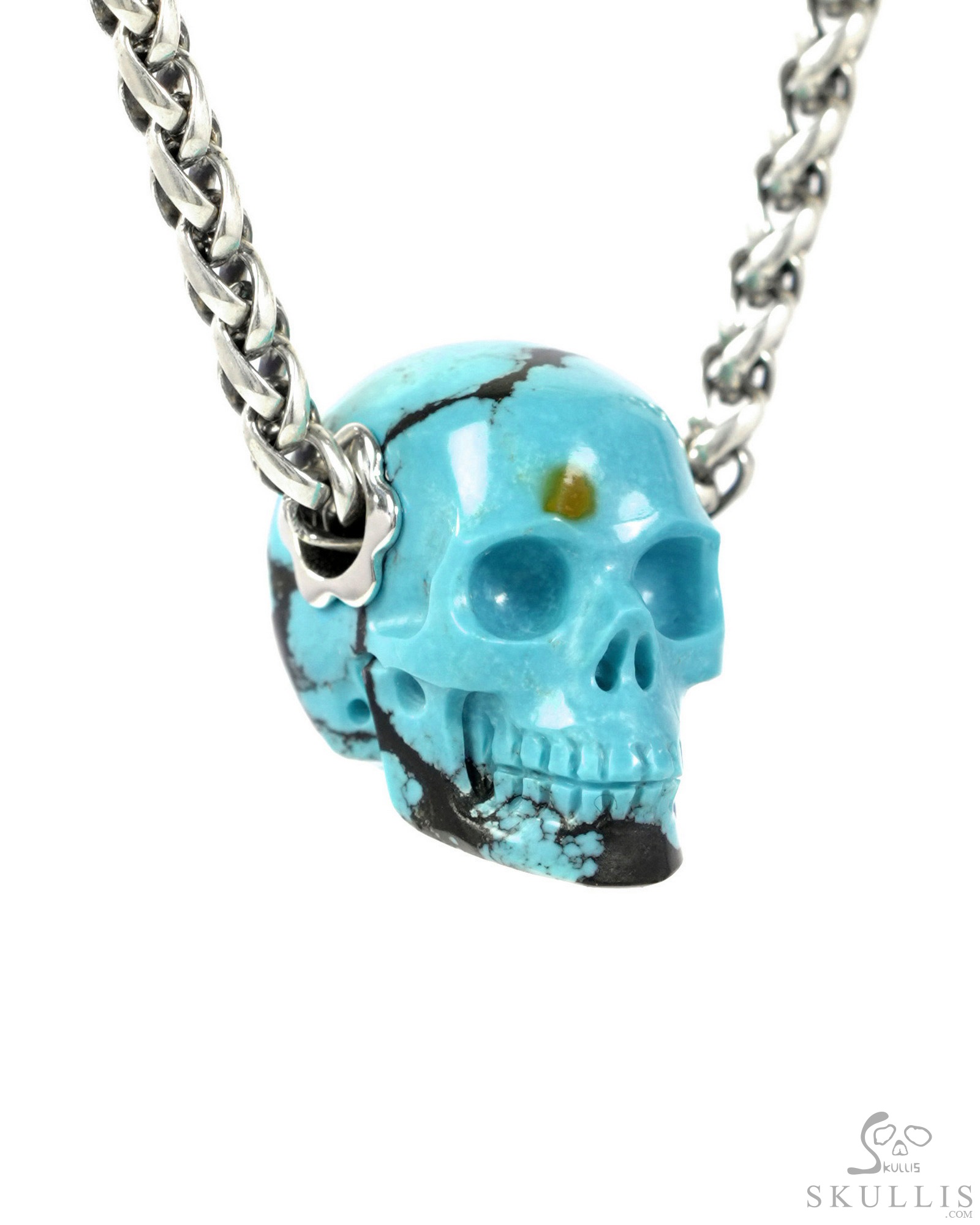 Gemstone Necklace of 1.1" Turquoise Hand Carved Crystal Skull Pendant, Skull Jewelry