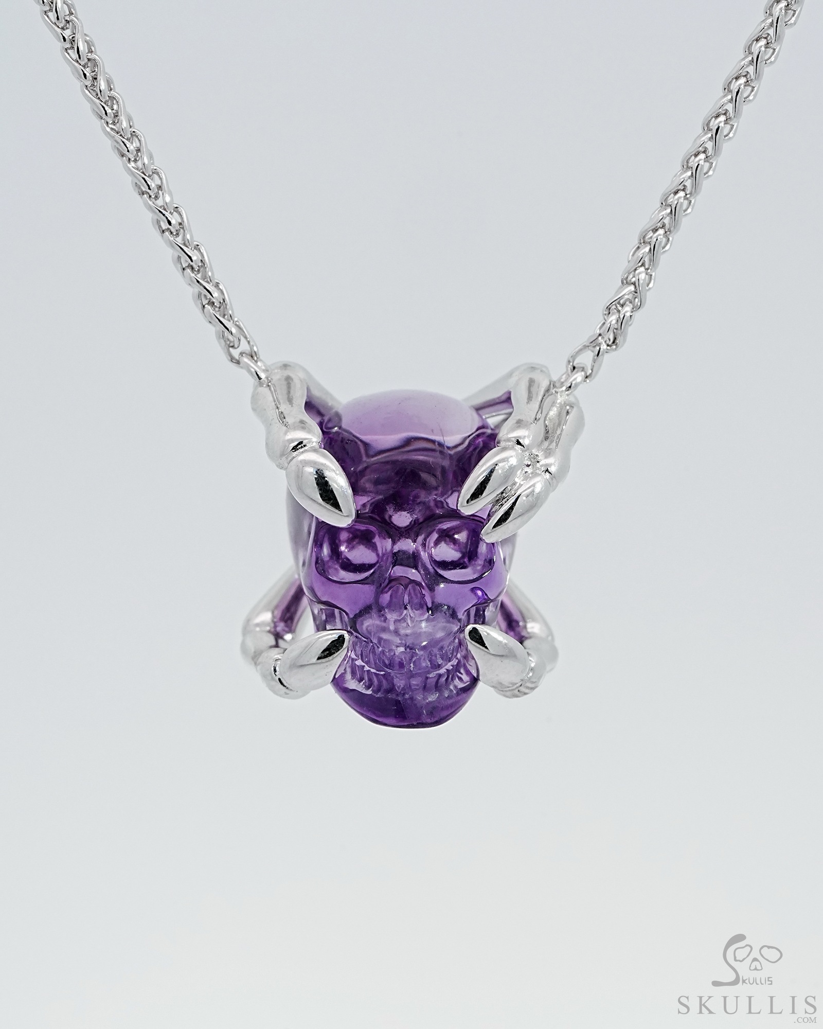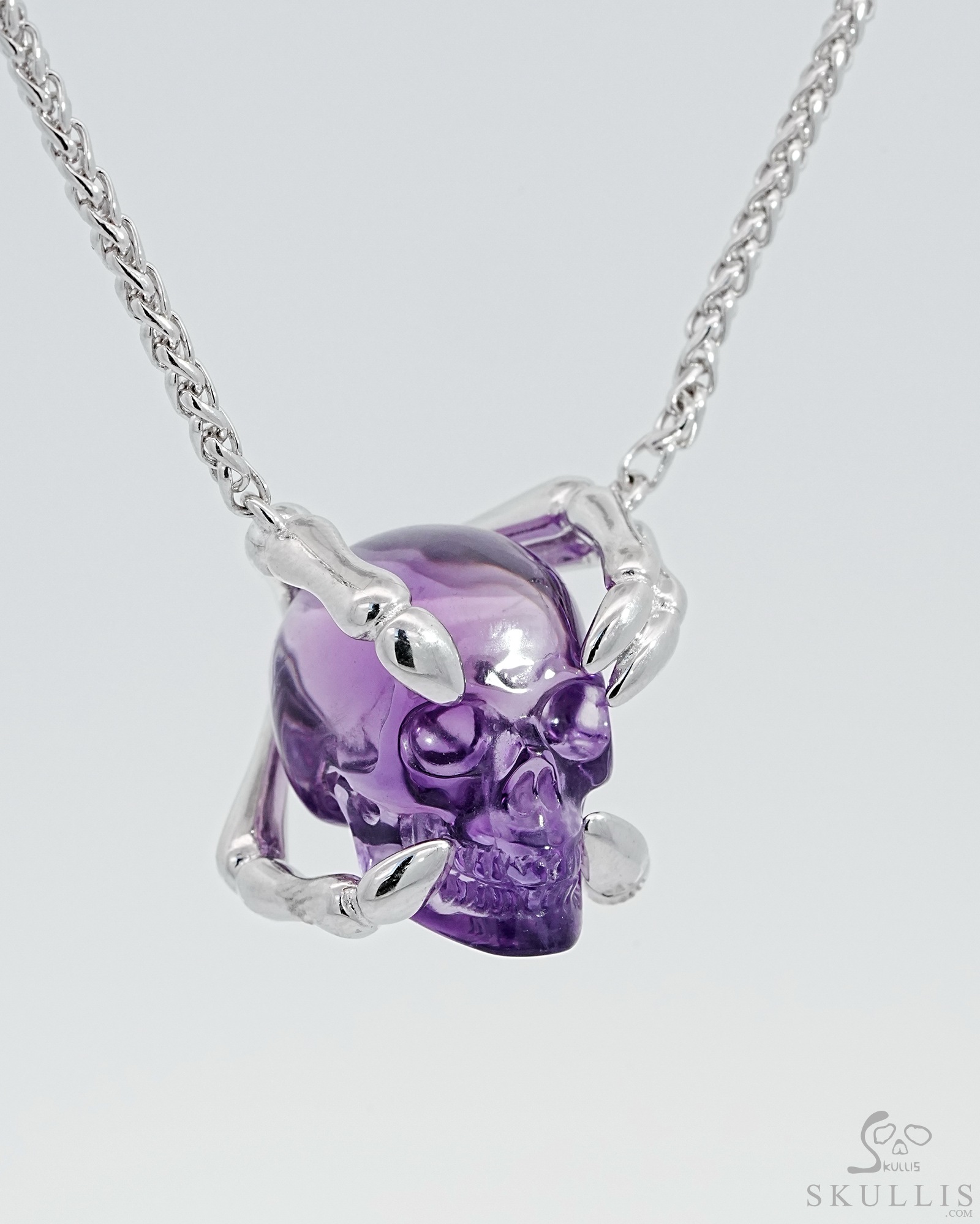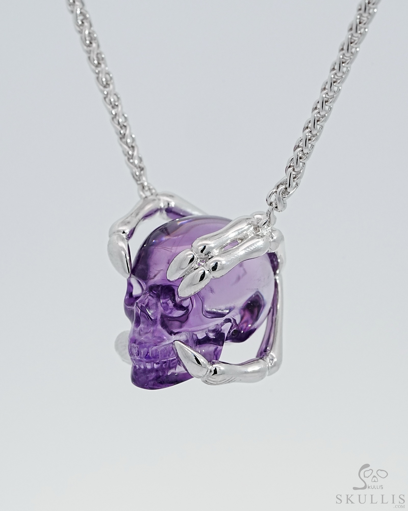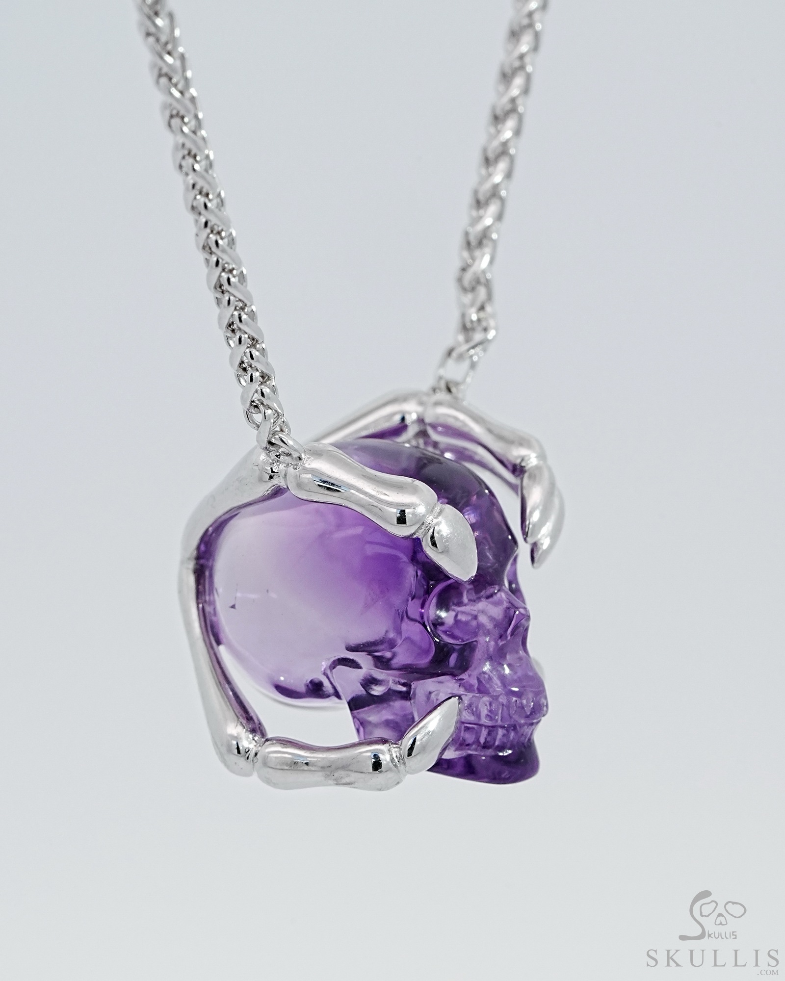 Gemstone Necklace of 1.0" Amethyst Hand Carved Crystal Skull Pendant, Skull Jewelry