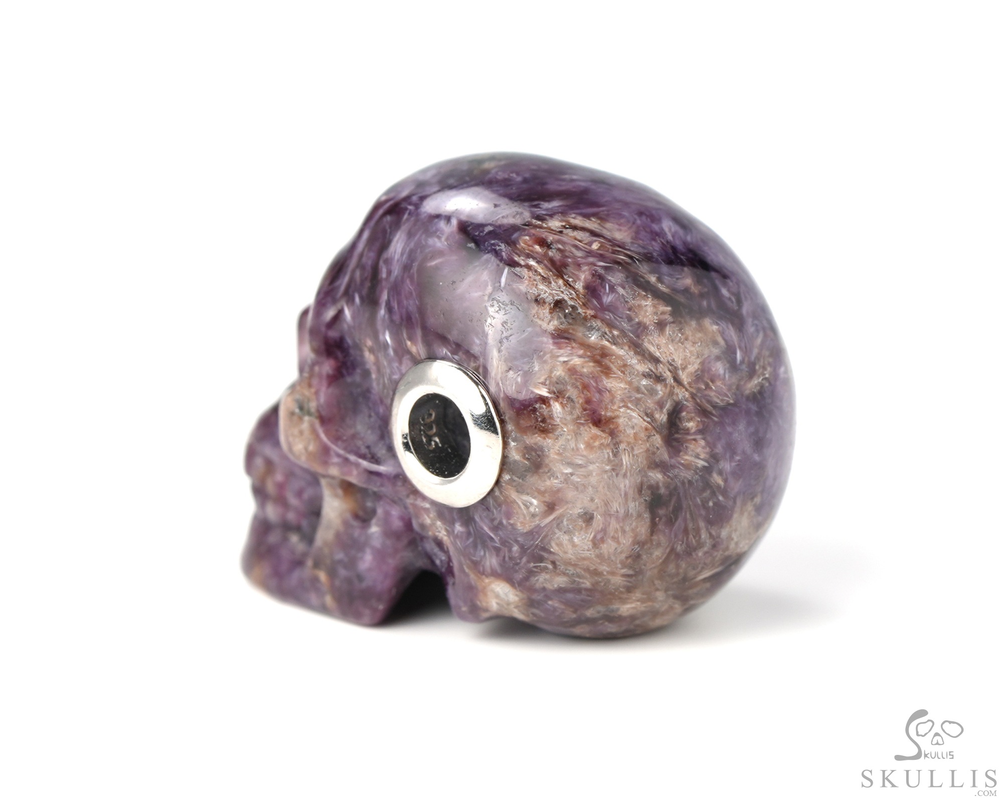 You are looking at a Russian Charoite skull. The skull is 1.1 inches from front to back.