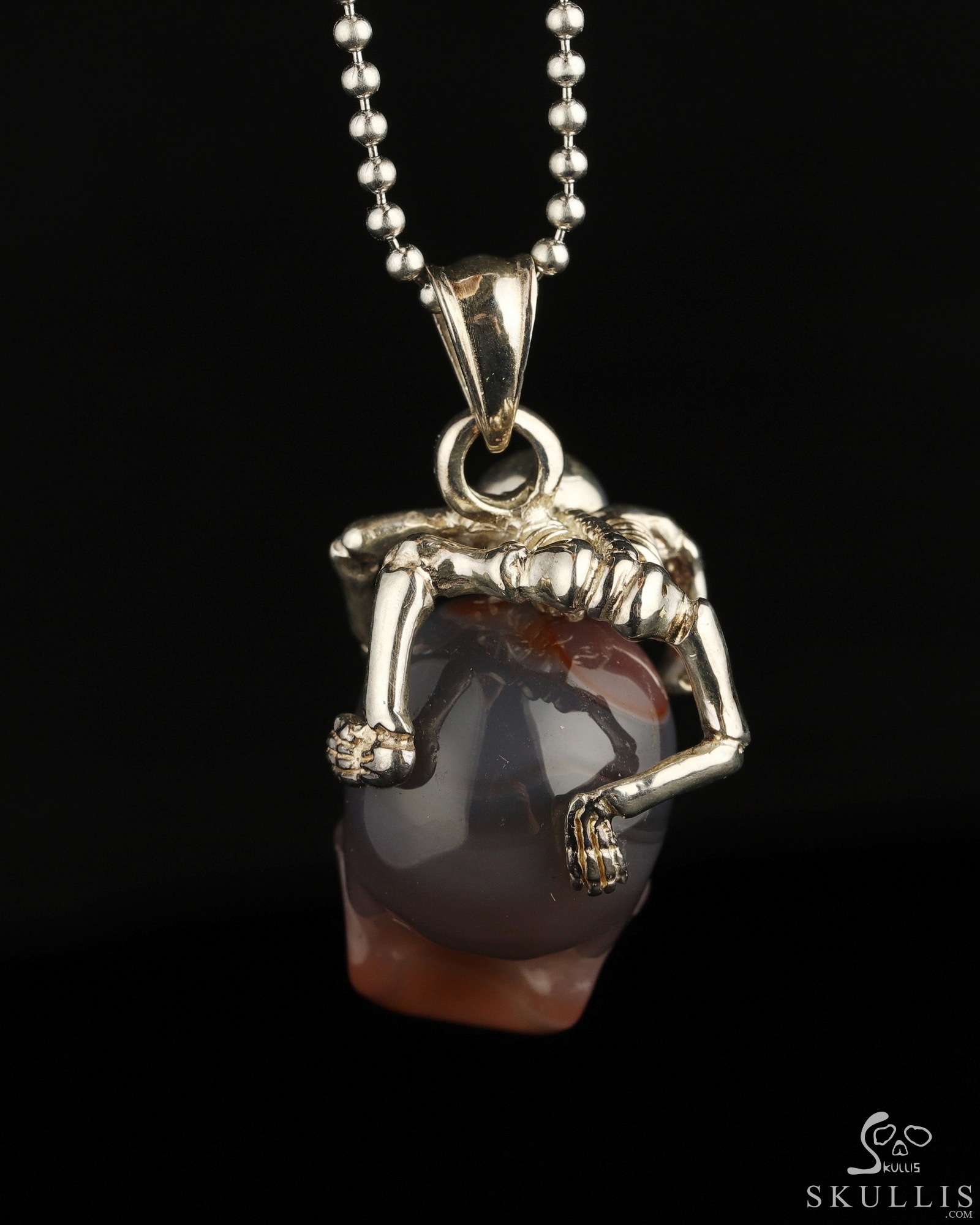 1.1" Mozambique Agate Carved Crystal Skull Pendant With 925 Sterling Silver Chain, Crystal Healing