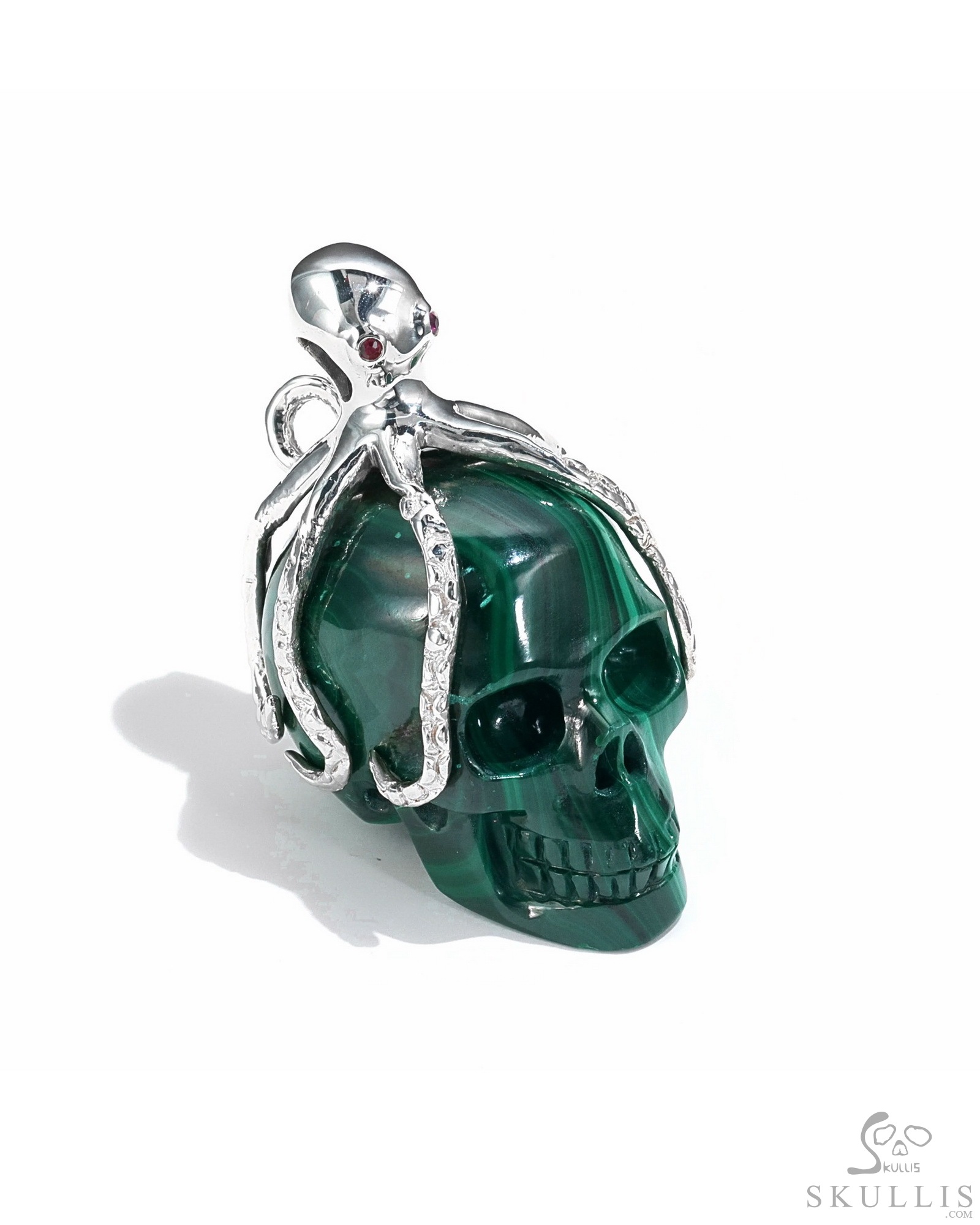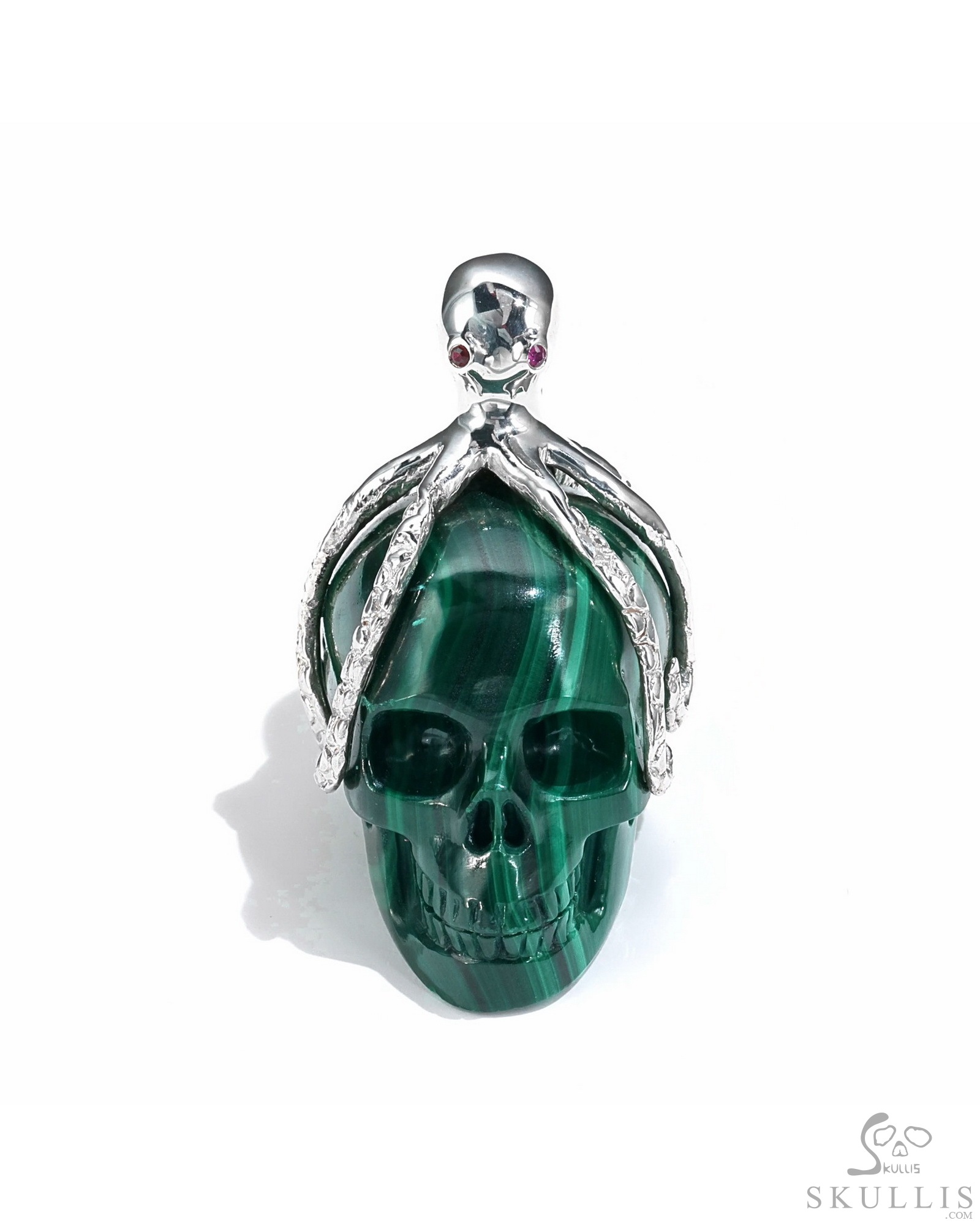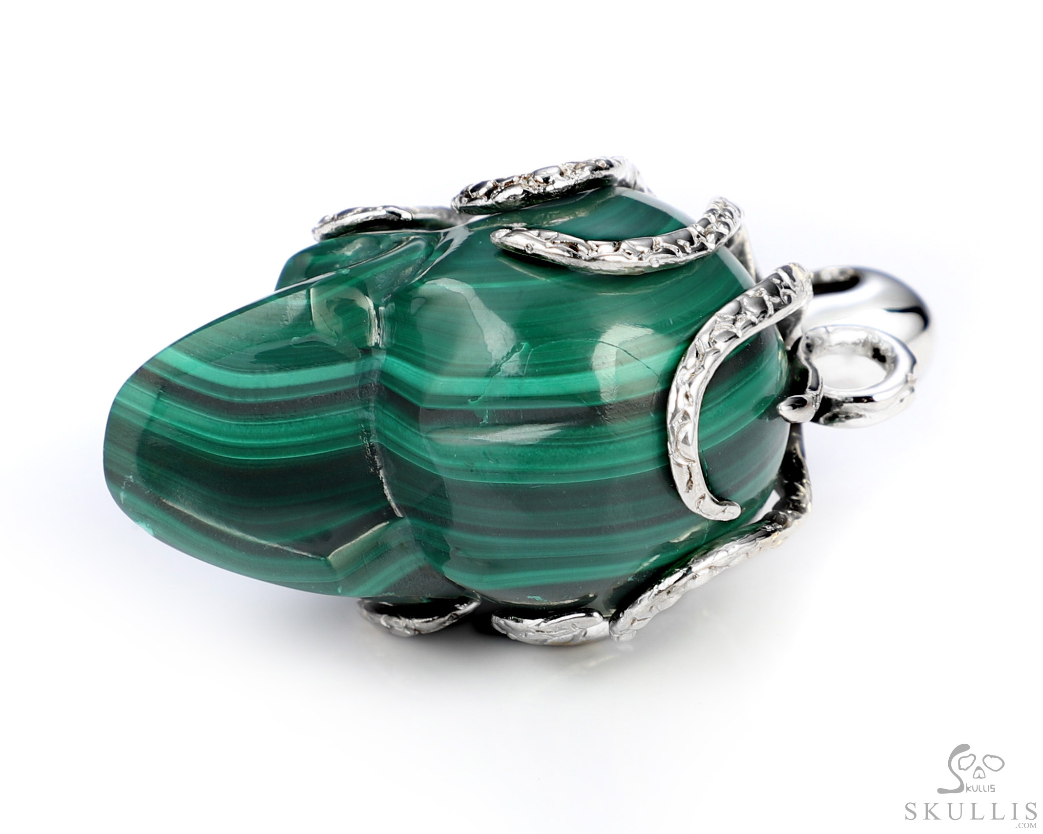 Gemstone Necklace of 1.5" Malachite Hand Carved Crystal Skull Pendant, Skull Jewelry