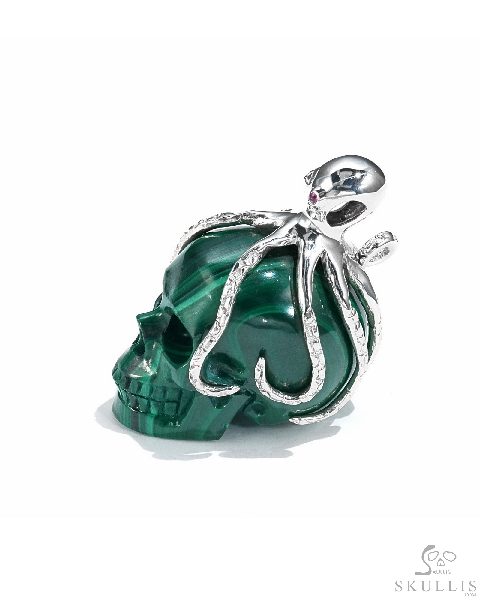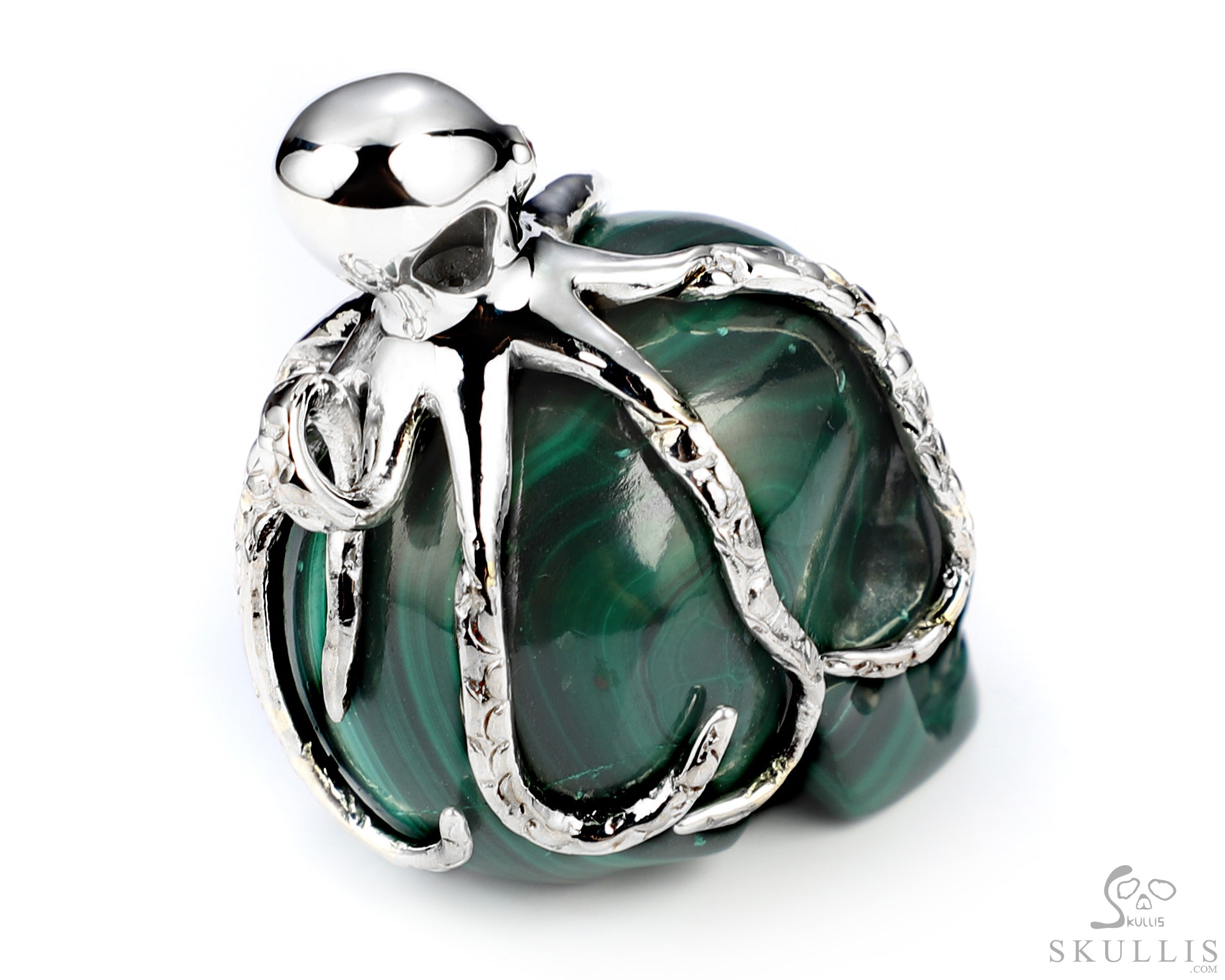 GEODE Lifesized 7.2" Malachite Carved Crystal Skull,Super Realistic, Crystal Healing