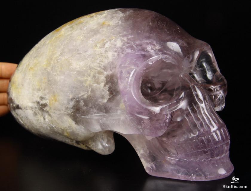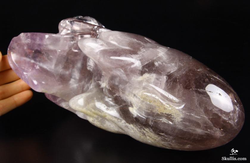 You are looking at a Amethyst skull. The skull is 9.6 inches long from front to back.