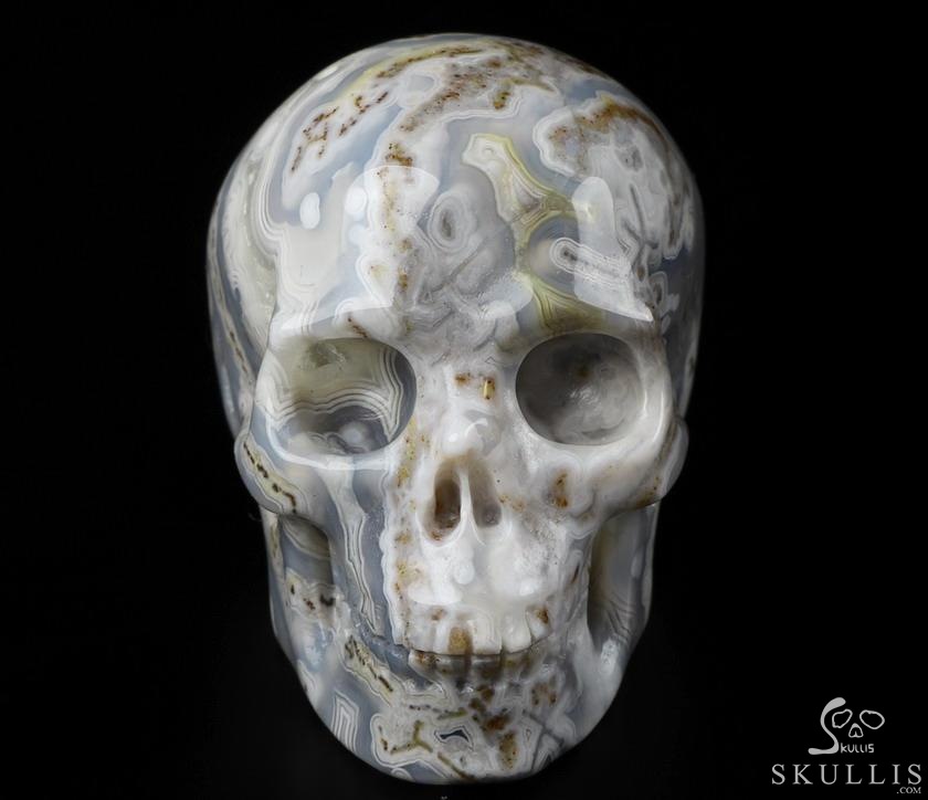 Huge 5.2" Crazy lace Agate Carved Crystal Skull,Super Realistic