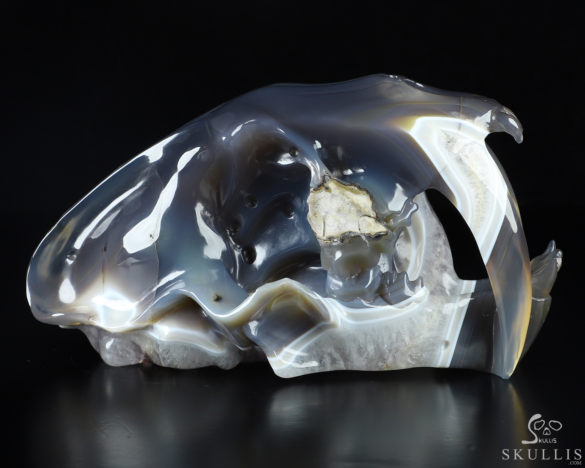 6.3" Amethyst & Agate Hand Carved Crystal Skull Fine Art Sculpture, Crystal Healing